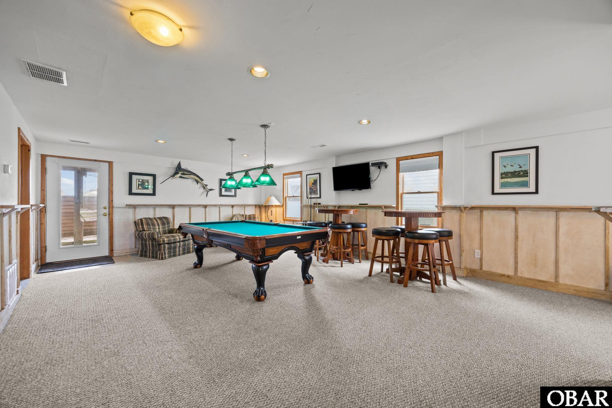 Inside, there’s no shortage of spaces to gather. The media room offers a true theater experience with a large plasma TV and reclining seats, while the rec room comes complete with a pool table, wet bar, and easy access to everything you need for a fun evening in. The well-equipped kitchen includes an oversized refrigerator and two dishwashers, making it easy to cook and entertain for a crowd. Another stand out feature is the two washers, two dryers, and two 80 gallon water heaters. The outdoor amenities are just as impressive, with a grill area, an outdoor shower, and direct access to the beach just steps away.