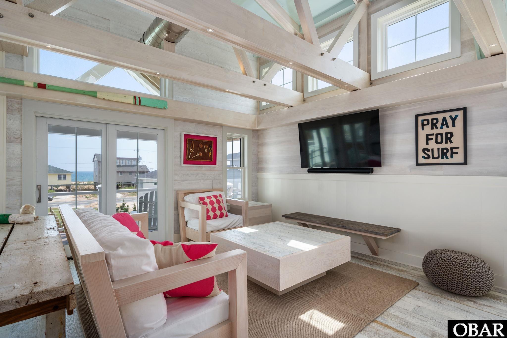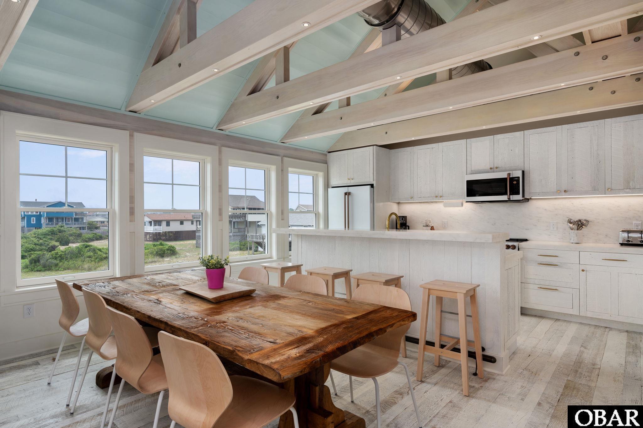 A Signature Heritage Series home, SugarPops blends artisan craftsmanship with playful coastal luxury—a design-forward showpiece redefining what it means to live well by the sea. More than a beach house, SugarPops is a living coastal experience designed to delight, inspire, and endure. This remarkable five-bedroom, 4.5-bath retreat spans two bold structures anchored around a sparkling concrete pool and travertine sun decks. The 1,774 sq ft main house features four bedrooms of refined style and industrial-beach flair, while the two-level, 727 sq ft guest retreat adds a private en-suite sanctuary connected by a storybook covered bridge. Inside, the main residence impresses with exposed ash rafters, stainless steel ductwork, and an open-concept layout that embodies the industrial beach aesthetic. Hand-distressed wood floors, poplar ceilings, custom oak railings, and vintage bronze fixtures complement hand-built cabinetry and 3-inch marble countertops, creating a refined yet relaxed atmosphere. Built to stand tall against coastal conditions, SugarPops is a fortress of form and function with vinyl-coated stainless wire railings, PVC Interlocking High-Impact Core Siding, a .040-grade metal roof, and Zuri synthetic decking. The interlocking balloon framing system, adhesive bonding, and stainless-steel fasteners reinforce every inch for unmatched strength. This home was not built with normal standards because they loved and cared for it like their youngest child with no expense spared. This home was meticulously designed and constructed at over $700 per square foot—a reflection of unwavering dedication to quality. Built with sheer walls for structural superiority and infused with imported materials of the finest caliber, every inch was crafted to endure. SugarPops was created to stand strong for the next three generations—a legacy home of rare distinction and timeless design. The pool house defines coastal living with a surf-inspired lounge, half bath, outdoor shower, and upstairs primary en-suite with a private balcony. Steps from the Atlantic and walkable to Kitty Hawk Pier, Rundown Café, Hilton, Villa Thai, and Byrd Street beach access, SugarPops embodies Outer Banks cool—where retro charm meets modern resilience and everyday living feels like an endless summer. A true private second home allows you to close immediately with no rentals to worry about. There’s quality… and then there’s the defined difference: 5118 N. Virginia Dare Trail—SugarPops—a Serhant Signature Listing.