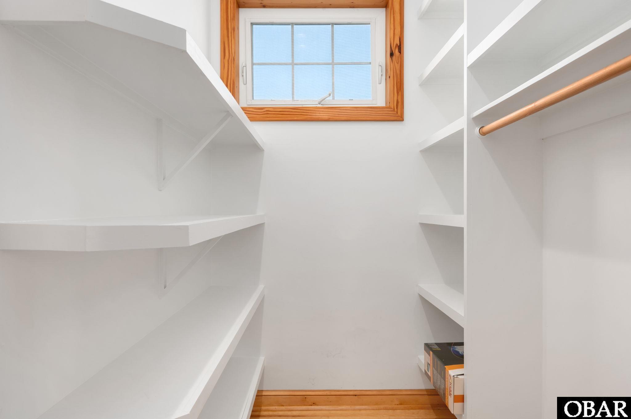 The 5-bedroom, 4.5-bath residence offers panoramic water and marsh views from nearly every room. Wood paneling throughout reflects the natural coastal setting. Both the main and top levels capture expansive views of the Albemarle Sound and protected marshland. The living area opens to multiple covered and screened porches, ideal for outdoor living, entertaining, or enjoying sunrise and sunset. The kitchen features quartz countertops, a propane range, stainless steel appliances, and a walk-in butler’s pantry.