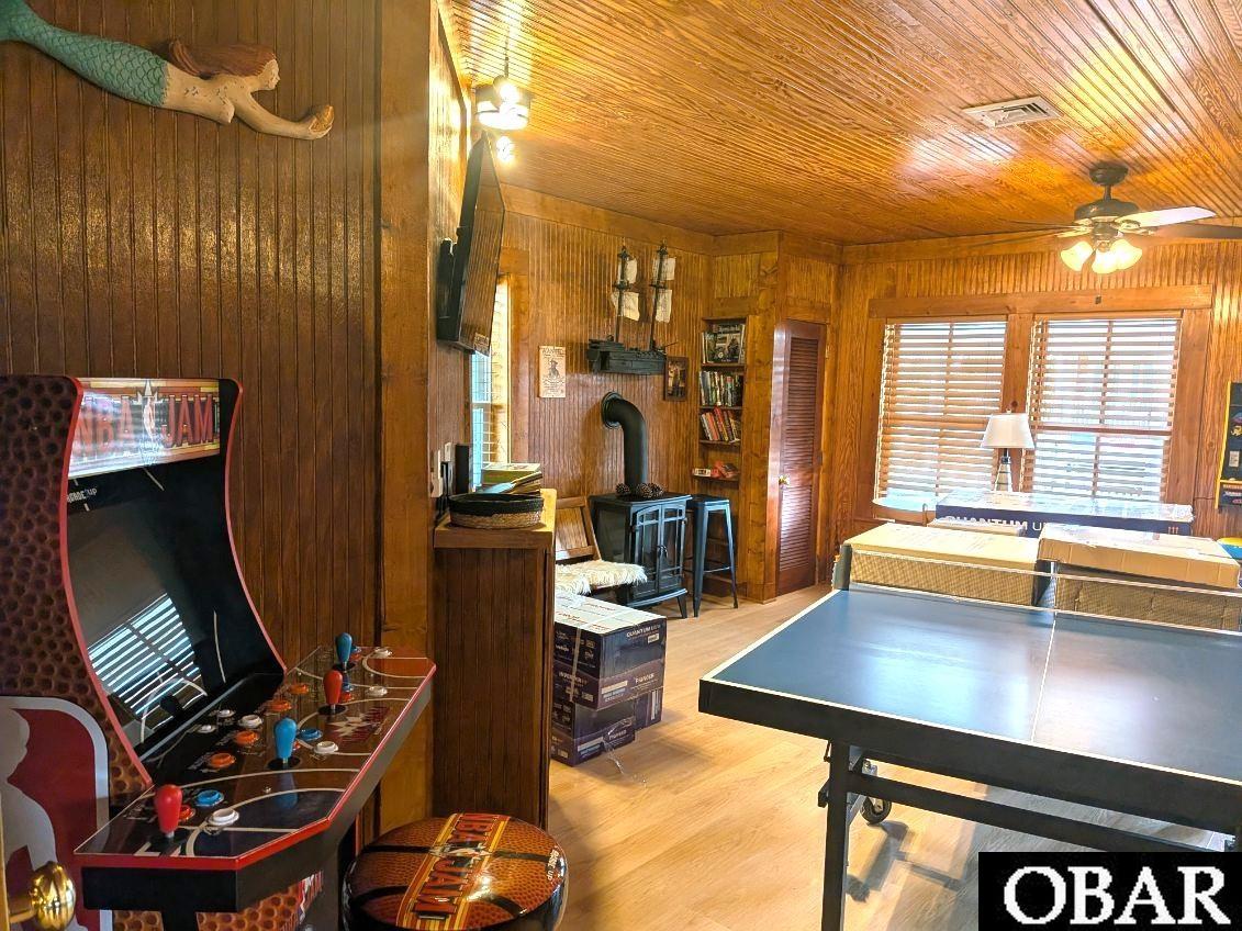 Own a piece of Ocracoke history! The original Albert Styron's Store is a historic property in the "Down Point" area of the village, just steps from the Ocracoke Lighthouse! Within walking distance to Springer's Point Nature Preserve and Silver Lake Harbor. Built in 1922, this iconic property has been home to a variety of businesses over the years. The original storefront facade with a charming front porch has been preserved but inside you'll find updated finishes that are both stylish and comfortable. Sit on the front porch and experience old Ocracoke. A great spot to people watch! Refurbished in 2023 and turned into a single family residence! Filled with artwork from local artists and great antiquing finds, Albert's has a large open living/dining/kitchen area with vinyl plank flooring, ceiling fans, an owners pantry, large TV and coffee bar. The sliding double doors from the living area open up into the game room complete with a ping pong table, futon, stand alone video games, double closets and bead board walls and ceilings. One bedroom with an attached bath, ceiling fan and large TV is located off the game room. 2 other bedrooms are located on the back side of the home, one with an attached bath with tiled shower and linen closet. Albert's is heated and cooled by 5 min-split units (3 just installed, 2 are 2 years old) for individual room controlled comfort. Exterior amenities include: vinyl shake siding, outdoor shower, roof top deck w/view of the lighthouse, rock driveway, fish cleaning bench and a EV charger. Currently a successful vacation rental but could easily transition to a primary or second home. Proven rental history!