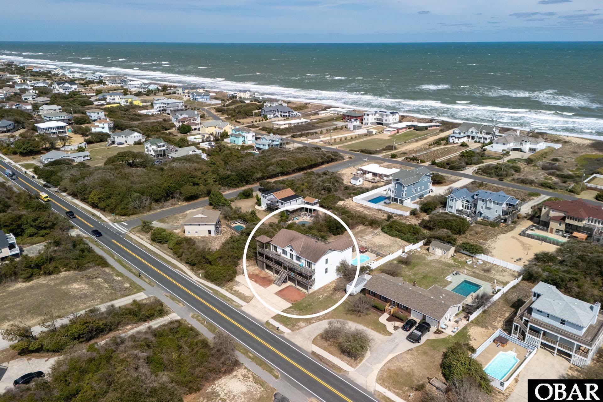 Situated just two lots off the ocean in Southern Shores, this expansive 7-bedroom retreat offers beautiful ocean views, an easy walk to the beach, and over 6,300 square feet of thoughtfully designed living space—perfect for large gatherings or high-performing rental potential.