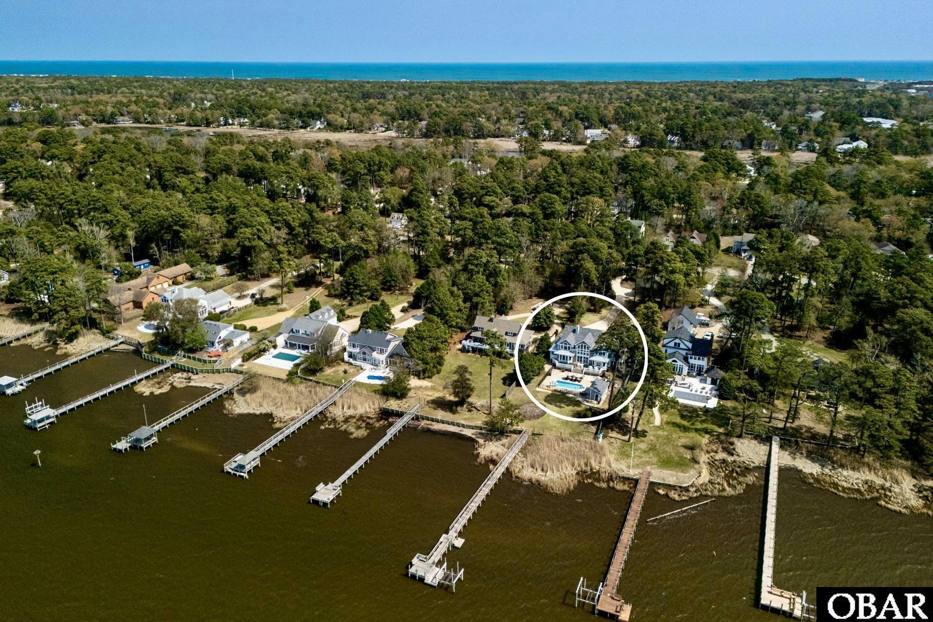 WATERFRONT ESTATE in the highly sought-after gated community of Martin's Point. This exceptional soundfront property offers over 6,500 of heated square ft featuring a 6 bedroom, 5 full, 2 half bath main residence with a 3-car garage, thoughtfully designed to capture sweeping views of the Currituck Sound and unforgettable sunsets. From the moment you enter, soaring ceilings, abundant natural light, and beautiful ornate wood flooring create a warm yet refined coastal atmosphere. The open-concept layout seamlessly connects the great room, dining areas, and kitchen—ideal for both everyday living and entertaining. The Great Room is anchored by a striking stone fireplace with custom built-ins and showcases expansive water views. The kitchen is well-equipped for both casual meals and hosting, featuring granite countertops, custom cherry cabinetry, high-end appliances including a Viking professional 6-burner range and double oven, Bosch dishwasher, and, full-size refrigerator and freezer, multiple prep areas, and generous storage. A nearby flex space offers versatility as a home office, den, or creative studio. The main-level primary suite is a true retreat, offering water views, and a spacious ensuite bath with dual custom vanities, circular soaking tub, and walk-in shower. Upstairs, you’ll find 4 generously sized bedrooms, thoughtfully designed for comfort and privacy, including 2 additional ensuite bedrooms and 2 bedrooms that share a full bath—complete with walk-in closets, multiple linen closets, and a convenient laundry chute. The 6th bedroom, located above the garage, offers exceptional flexibility with its private ensuite bath featuring a glass door shower and separation from the main living areas for added privacy. Currently configured to accommodate multiple beds and a workspace, this area also presents an opportunity to expand by opening the adjoining wall to connect additional heated and cooled space accessible from a rear garage staircase to create an ideal in-law suite, private guest apartment, or expansive game room. A standout feature of the property is the detached BOAT HOUSE, complete with a 34' x 18' heated boat garage, second garage bay, EXERCISE ROOM OR FLEX SPACE, outdoor shower and a 2nd floor APARTMENT WITH BATH AND KITCHEN—perfect for guests, extended stays, or additional income potential. Outdoor living is equally impressive, with a PRIVATE POOL and expansive decking, along with a POOL HUT WITH GRANITE COUNTERTOPS, TV, a Full POOL BATH, AND STONE FIREPLACE, creating an ideal setting for entertaining and relaxing. The exterior also includes a dedicated fenced pet area, adding convenience and flexibility for everyday living. For boating and fishing enthusiasts, the property features a PRIVATE DOCK, BOAT LIFT, BULKHEAD, AND APPROX. 125-FOOT PIER with fish-cleaning station, providing direct access to the Currituck Sound. Enjoy cruising by boat to Duck or Manteo for dining and entertainment, or take advantage of nearby Oregon Inlet for offshore and deep-sea fishing. Extensive recent improvements—including a FORTIFIED ROOF, 4 NEW Heat Pumps, SPRAY FOAM INSULATION & underpinning, AND NUMEROUS INTERIOR AND EXTERIOR UPDATES including paint, lighting, alarm system, landscaping, ceiling fans and more- all which add value and peace of mind. The home is being offered partially furnished, allowing for a seamless transition into coastal living. Martins Point is a PRIVATE, GATED peninsula COMMUNITY known for its natural beauty, winding roads, and access to a MARINA, boat ramp, and common areas—all just minutes from beaches, shopping, and dining. Whether you’re seeking a full-time residence or a private COASTAL RETREAT, this home delivers the best of Outer Banks living—blending WATERFRONT SERENITY, thoughtful design, and EXCEPTIONAL AMENITIES. Virtual tour available. Accepting private tour requests for qualified Buyers, by appointment only.