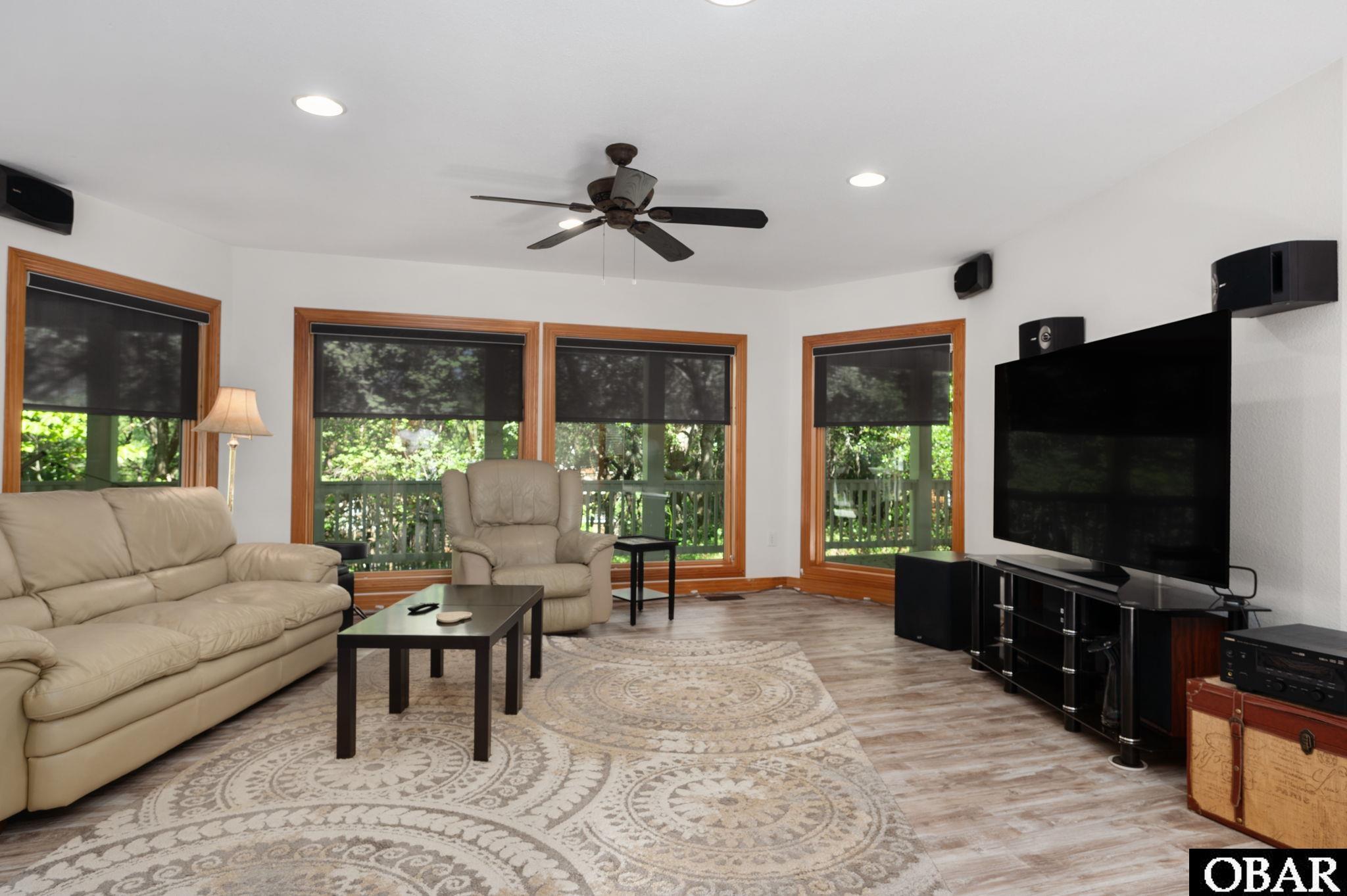 Located in the desirable Southern Shores community, this home offers access to ocean and soundside amenities, including parks and marinas, along with dedicated parking at Town beach accesses. Set on a wooded homesite and designed across three levels with elevator access, it offers scale, quality construction, and a well-executed layout. Presented as a turnkey home with a refined coastal feel, it has been primarily owner-occupied and only recently introduced into an Airbnb program.