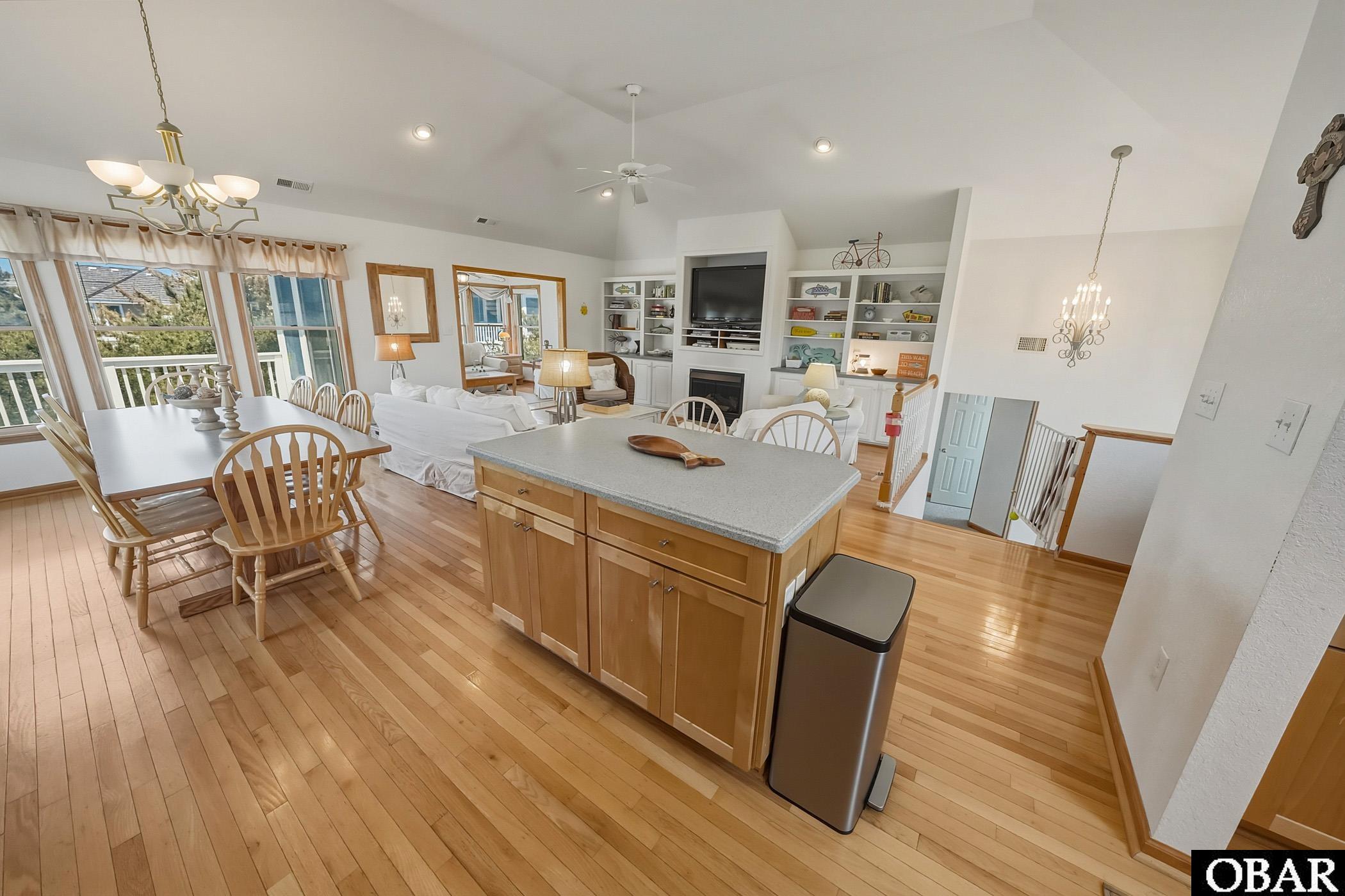 With 6 bedrooms and 4 full baths plus a half bath, there is room to spread out without feeling on top of each other. The top floor is open and bright with vaulted ceilings and hardwood floors, and it all flows together in a way that makes gathering easy. The kitchen has plenty of space for cooking and hanging out, and it opens right into the dining and living areas so no one misses a thing.
