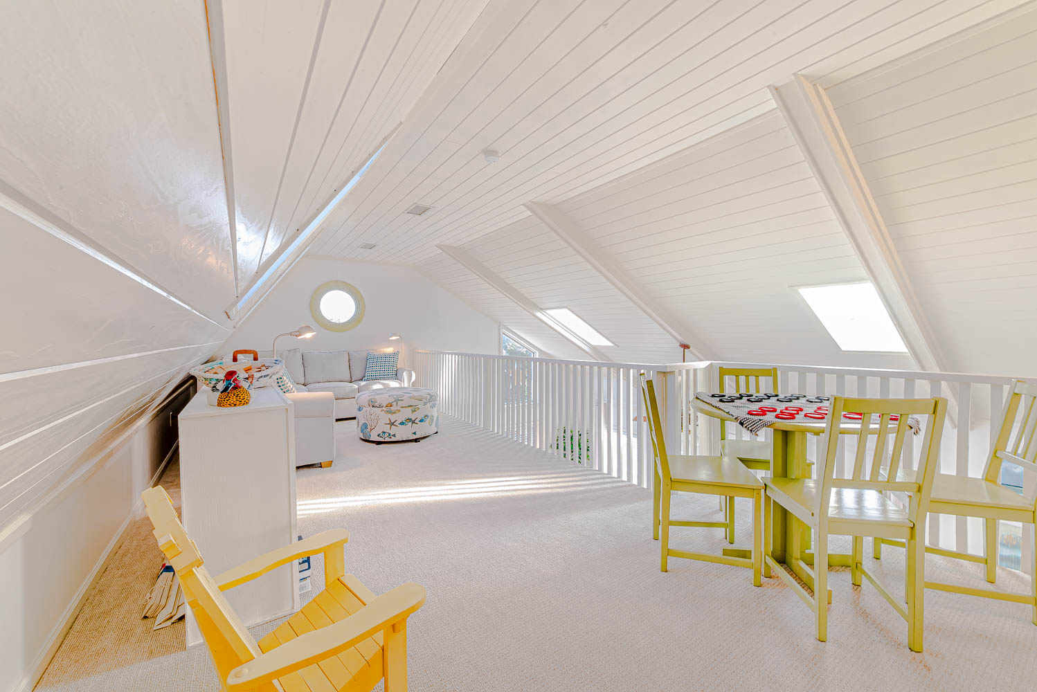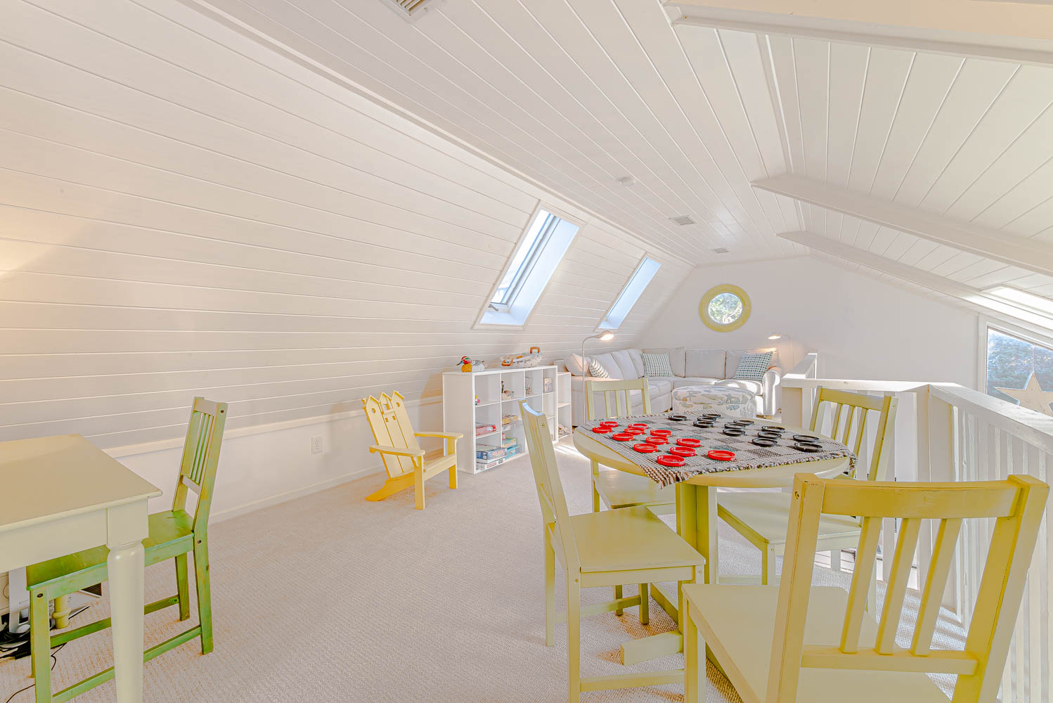 Mid Level: Living Area, Large TV, Access to Sun Deck w/Hot Tub, Deck Furniture, and Picnic Table; Updated Kitchen Area, Stainless Steel Appliances, Breakfast Island Bar w/Seating for Four (4); Dining Area w/Seating for Eight (8); 2 Bedrooms (1 w/Queen, 1 w/2 Bunk Sets), Full Bath w/Tub, Laundry Area, and Steps to Loft.