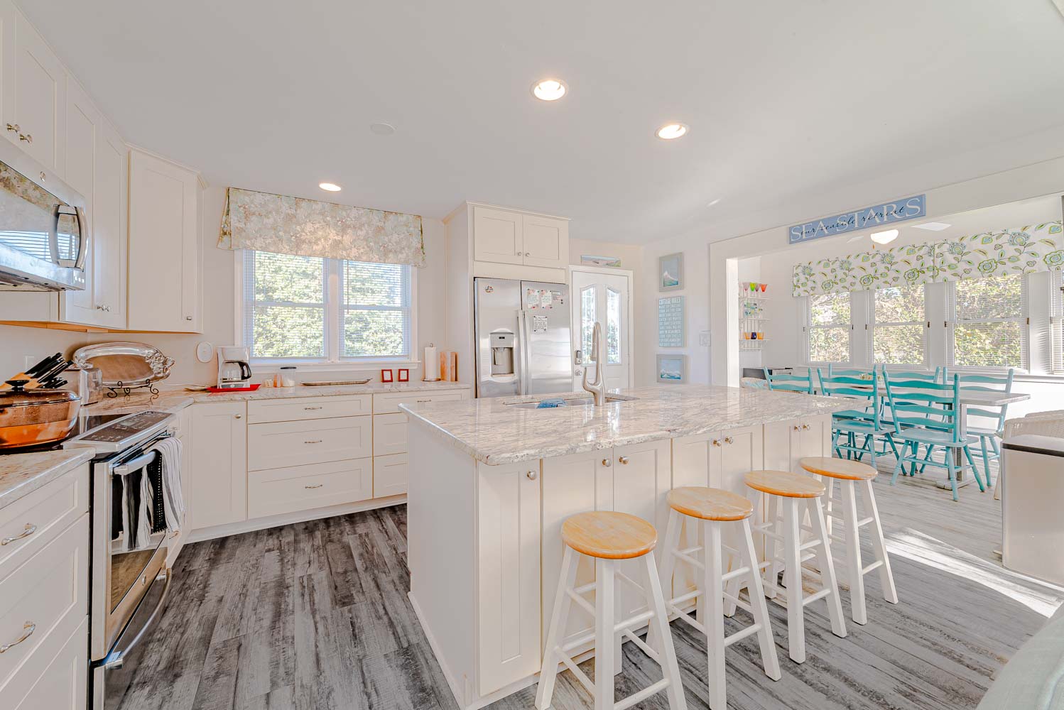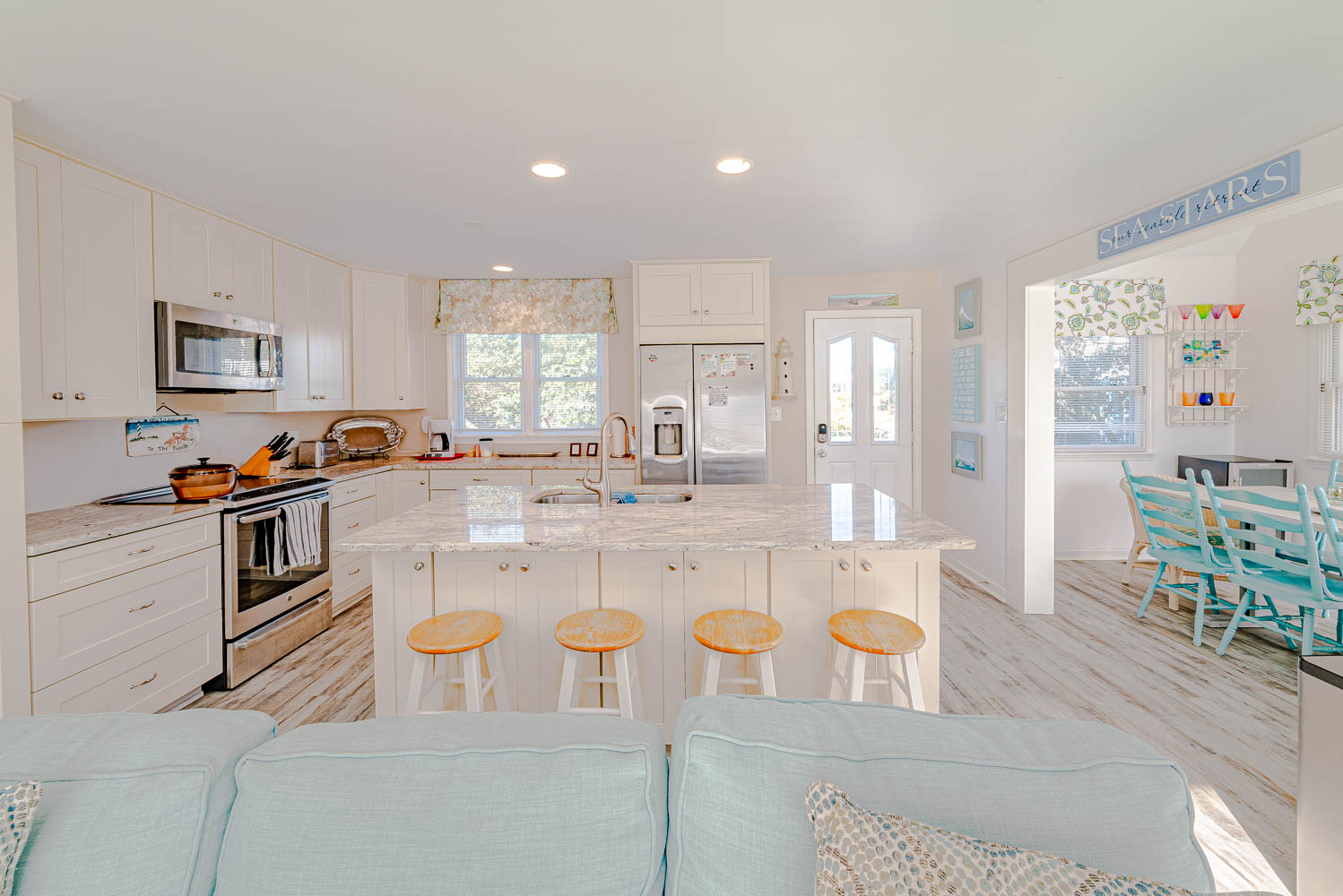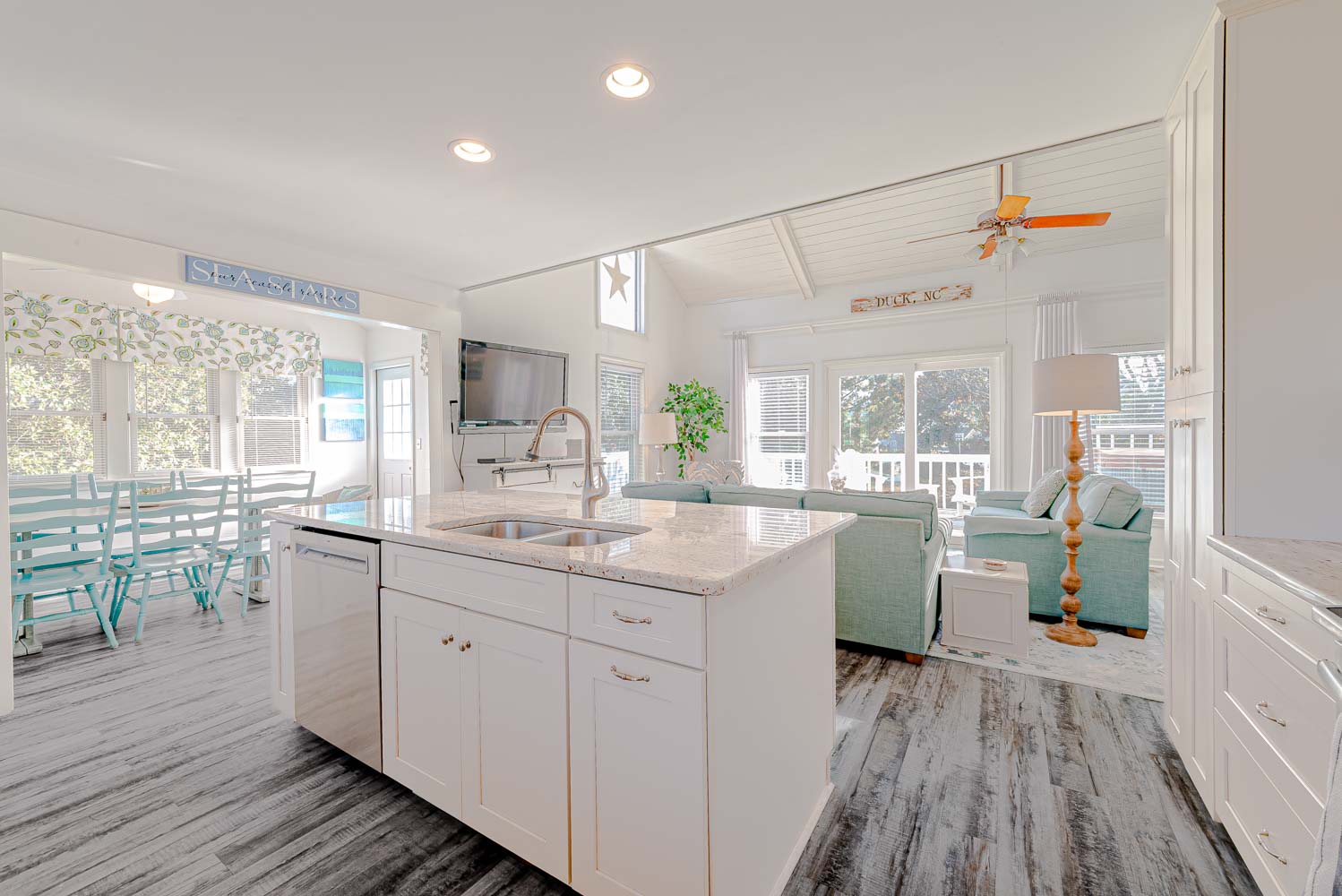 Sea Stars is a terrific vacation home located in the Carolina Dunes oceanside community in popular Duck, NC. Providing convenient access to the Beach and views of the Currituck Sound, this recently updated vacation home is bright and cheerful with an open floor plan that provides ample space your family is sure to appreciate. Recent updates include a gourmet kitchen with granite counters, island bar w/seating, premium vinyl plank flooring, updated baths, and beautiful shiplap ceilings. This home offers ample decking, Hot Tub, and for 2026, a Private Swimming Pool! Nicely furnished and well-decorated, attention to detail will be evident from the moment you enter this lovely beach home.