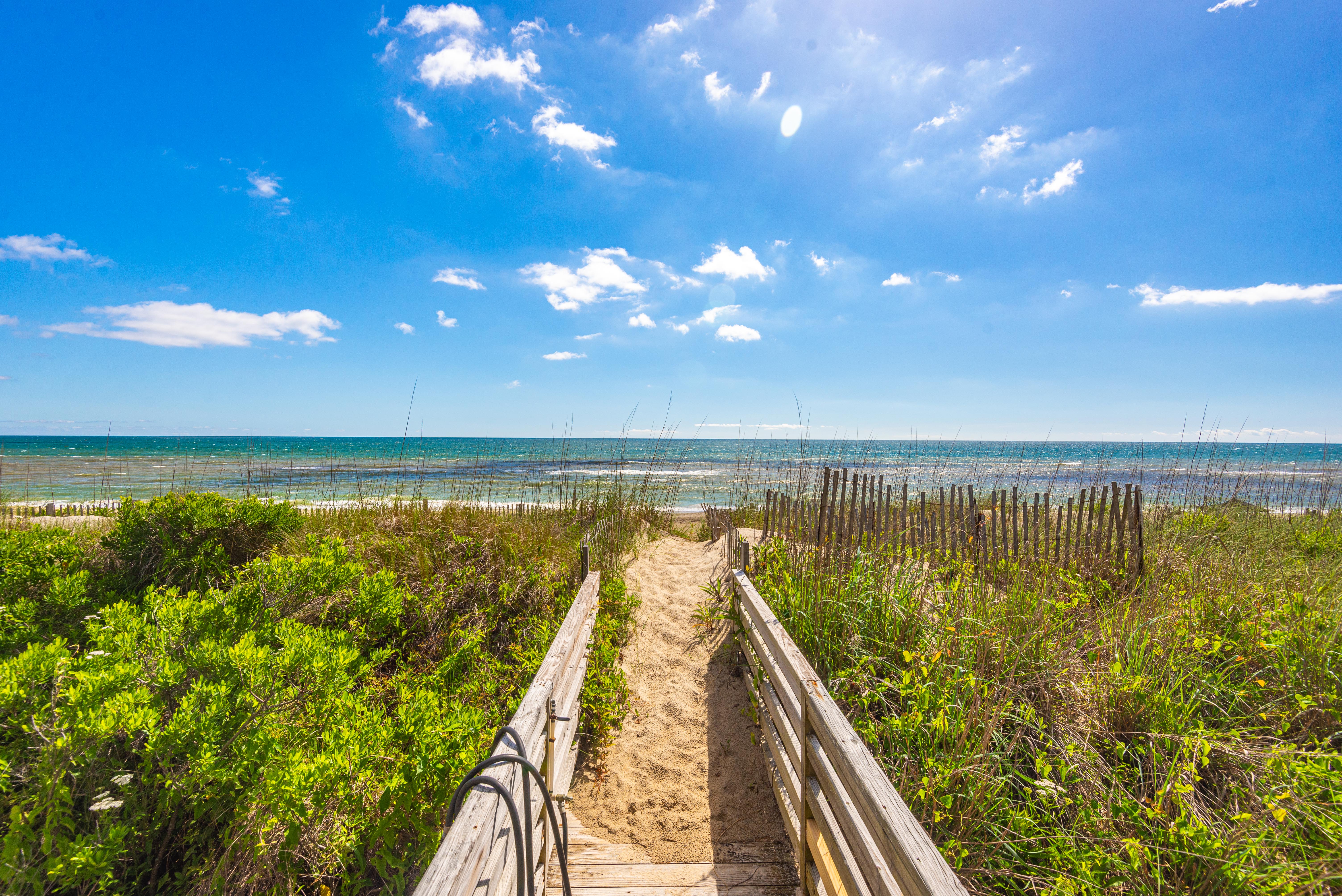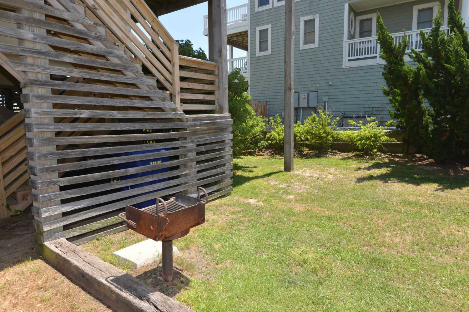 Ground Level: Parking for 4 Cars, Steps to Mid Level Entry, Fish Cleaning Station, 2 Enclosed Outside Showers, New Stainless Steel Charcoal Park Grill, and Private Walkway to Dune and Sand Path to Beach.