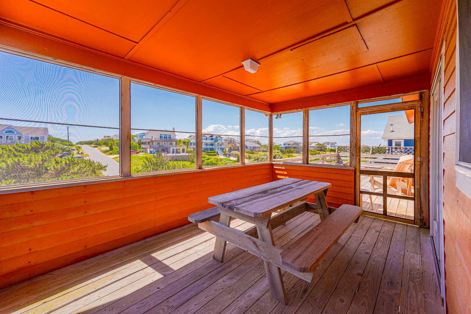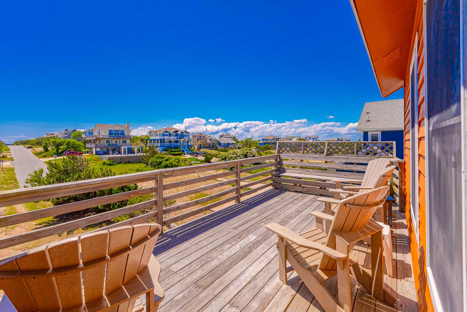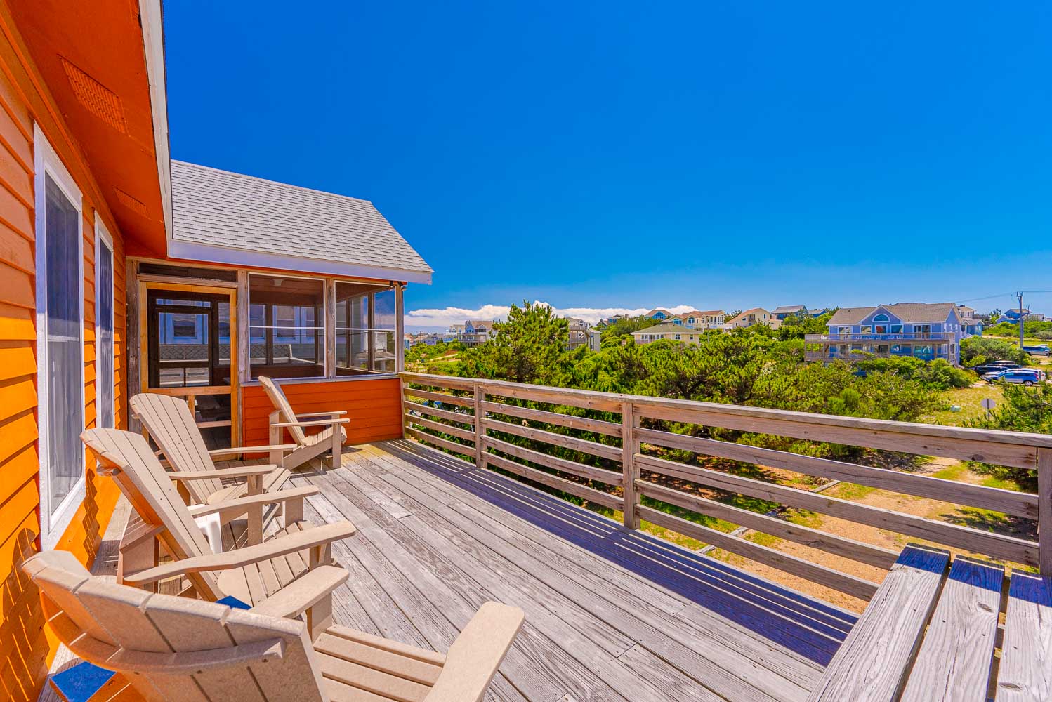 Mid Level: 4 Bedrooms (2 w/Queens, 1 w/2 Singles, and 1 w/2 Bunk Sets), 2 Shared Baths w/Tub and Shower, Screen Porch w/Furniture, and Ocean Facing Covered Deck w/Furniture.