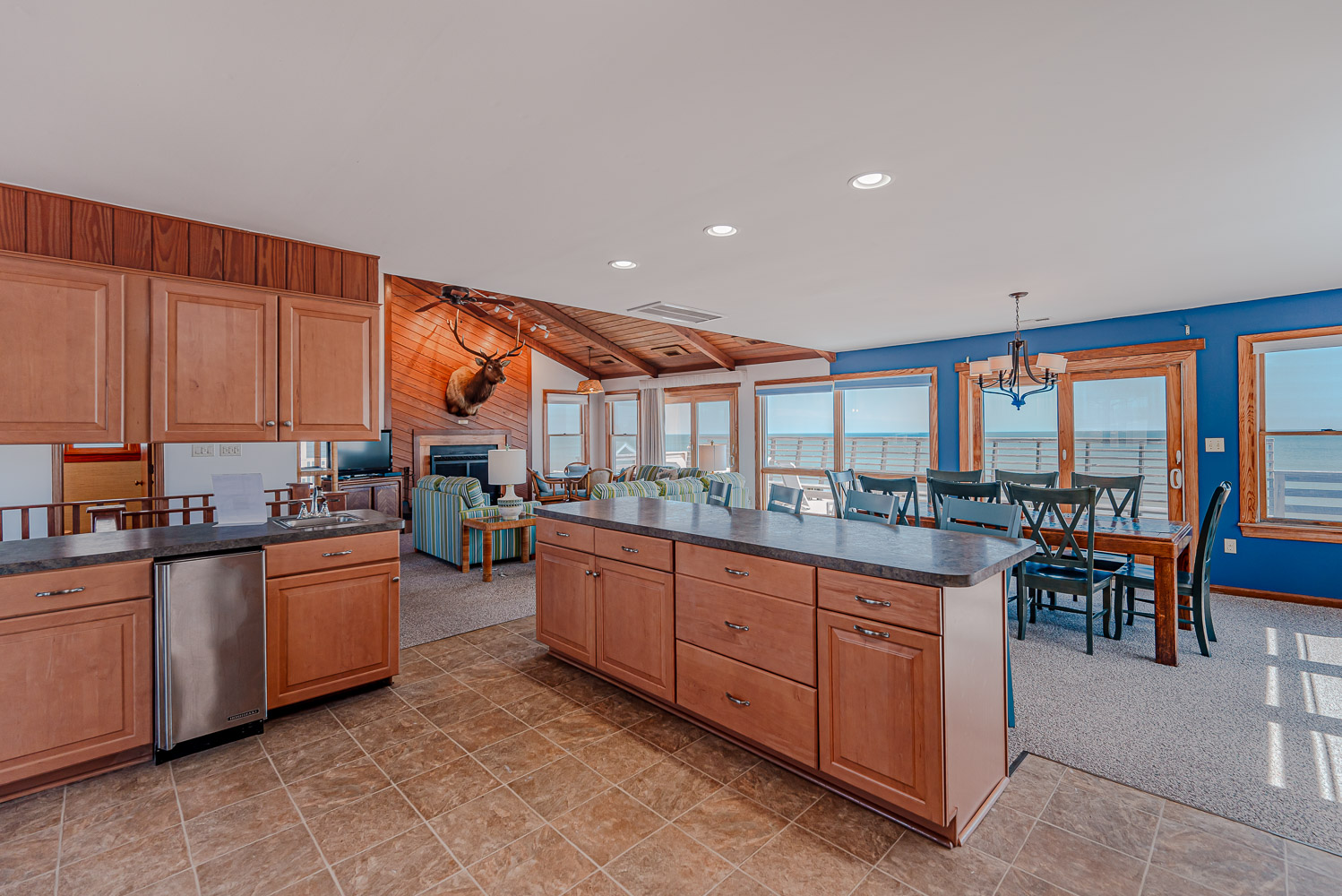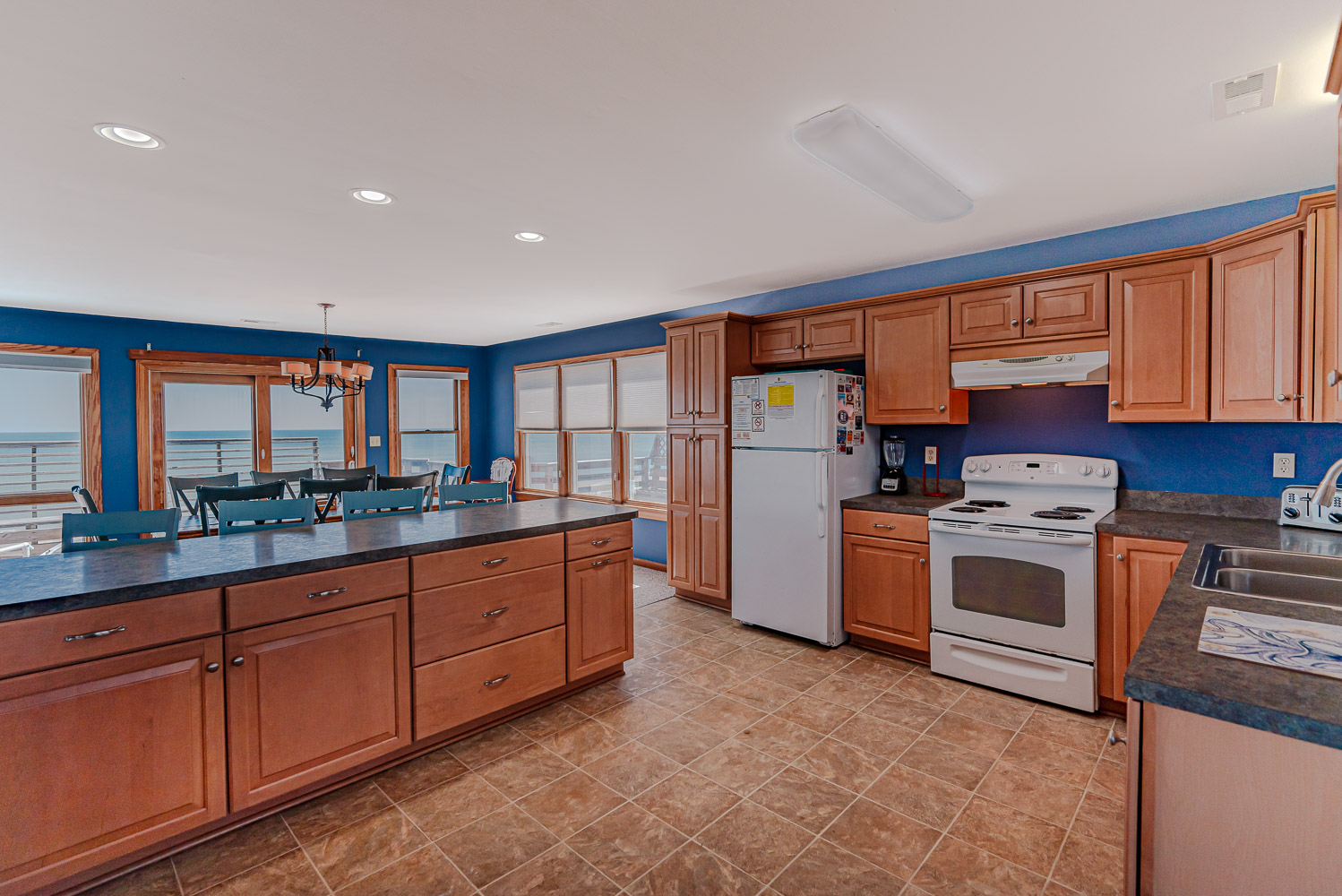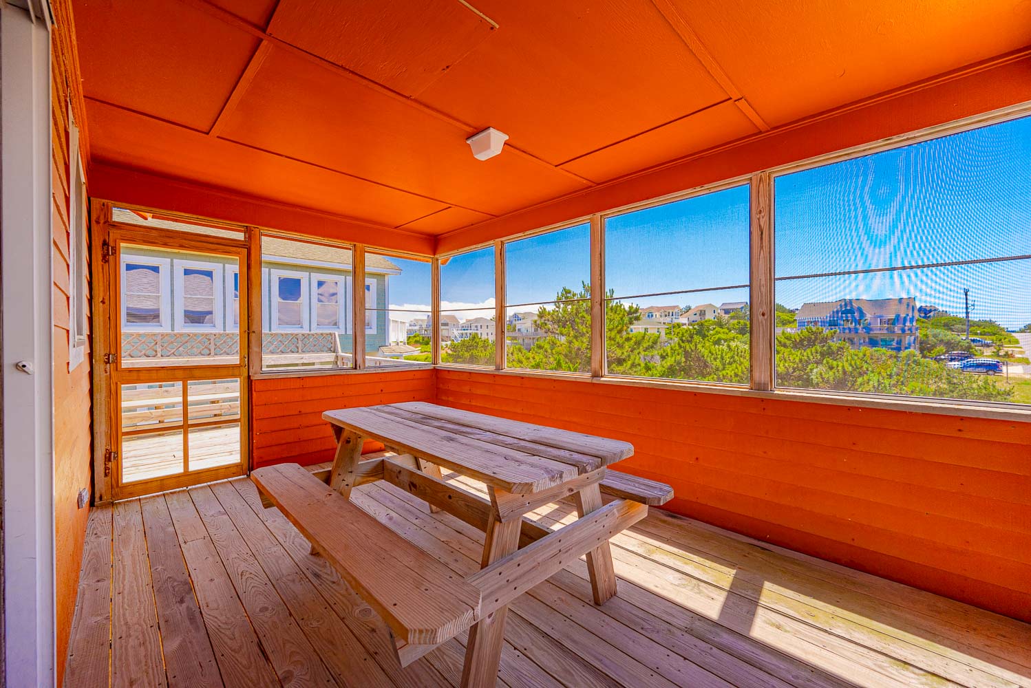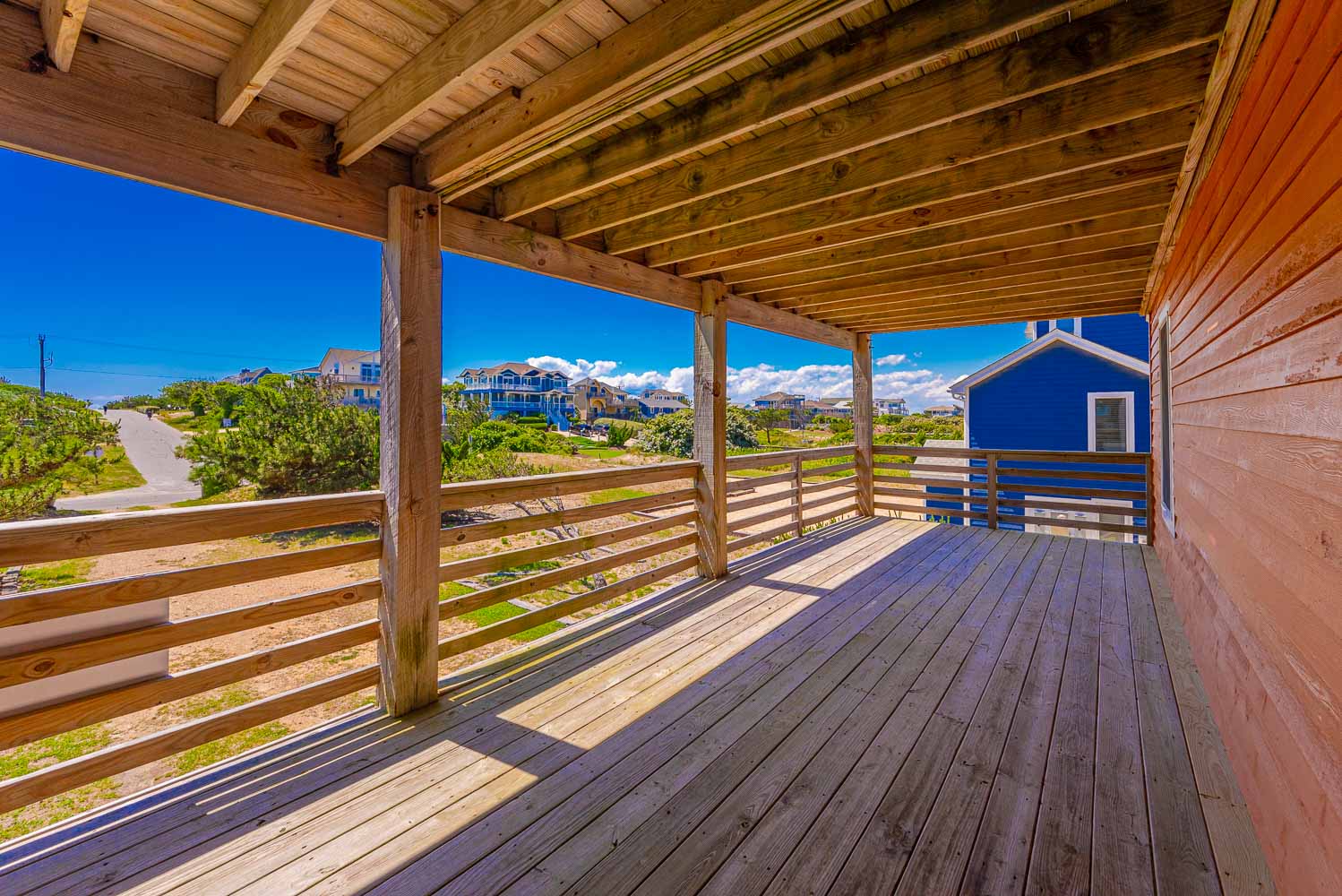 Mid Level: 4 Bedrooms (2 w/Queens, 1 w/2 Singles, and 1 w/2 Bunk Sets), 2 Shared Baths w/Tub and Shower, Screen Porch w/Furniture, and Ocean Facing Covered Deck w/Furniture.