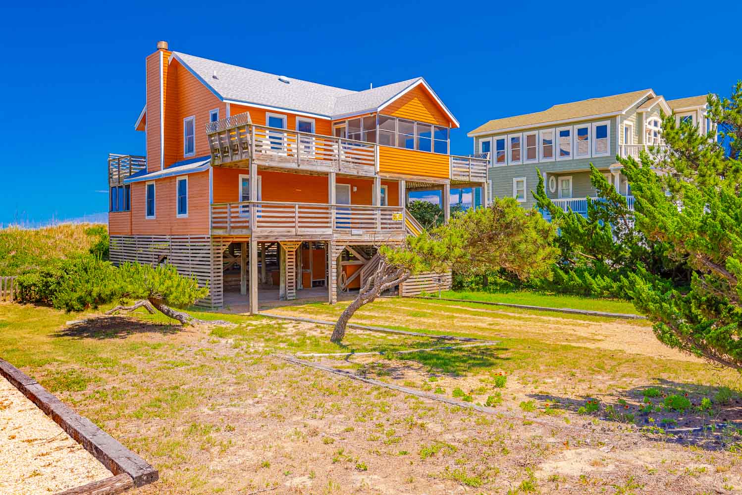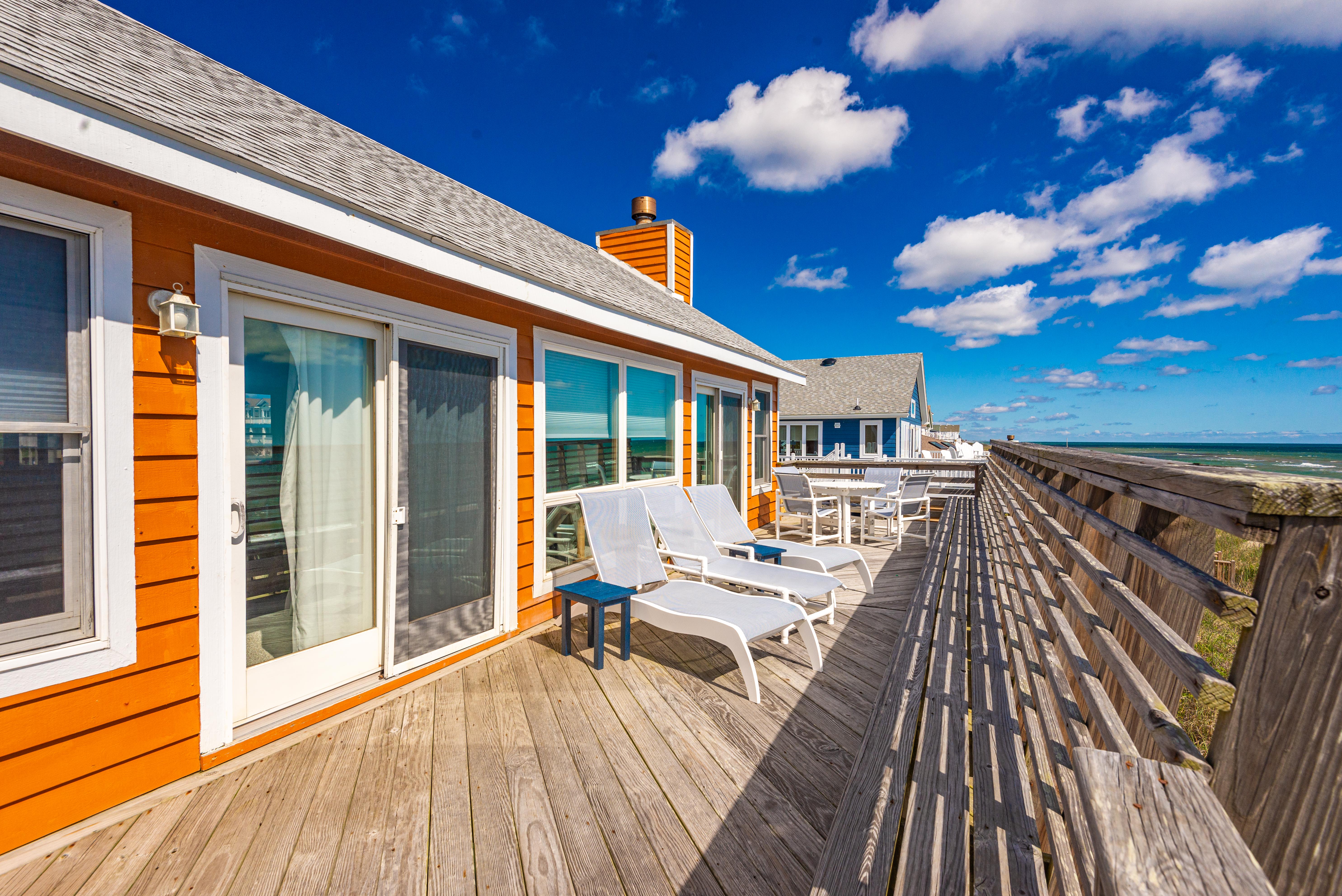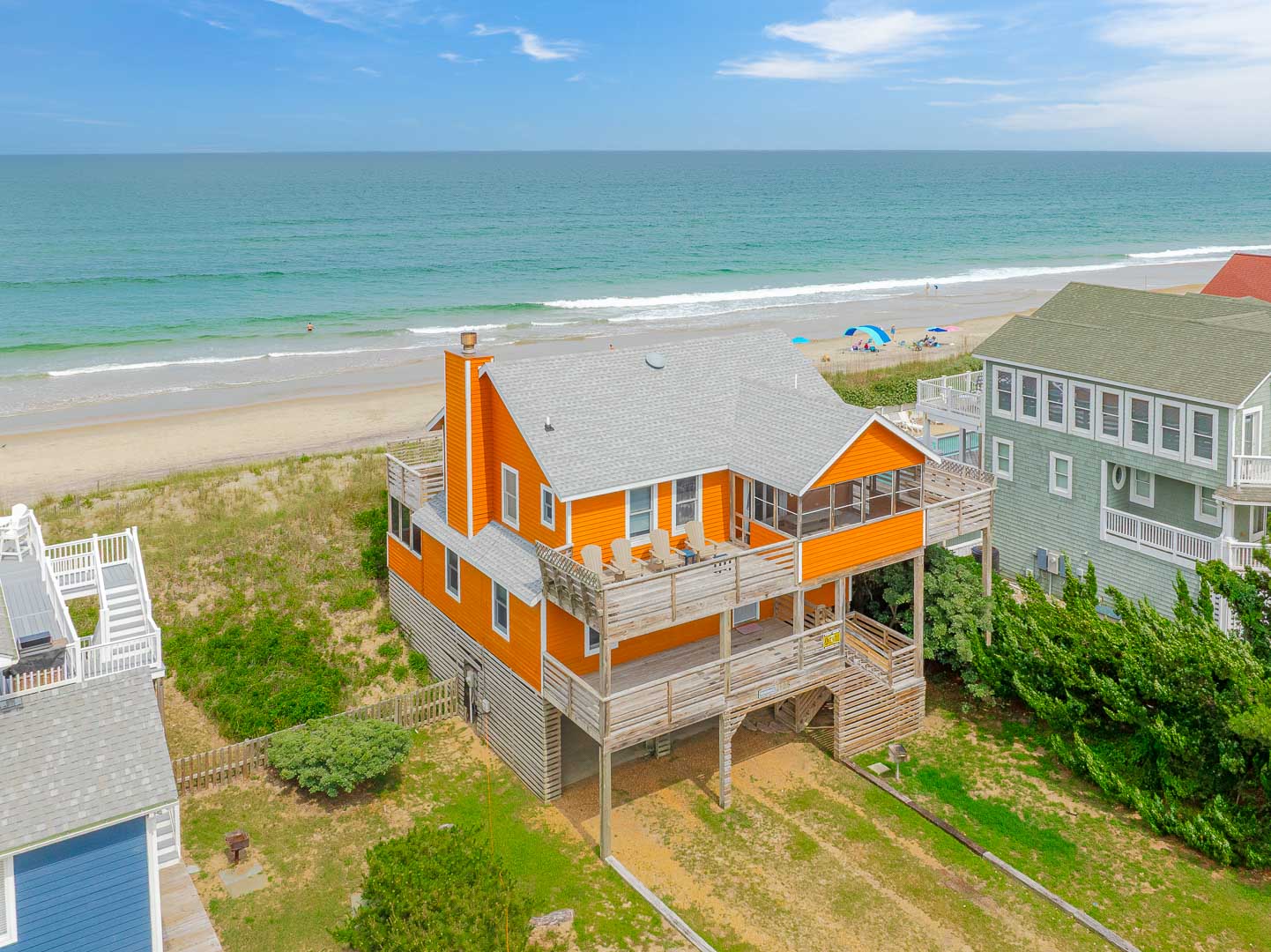 This great family Beach House offers Excellent Ocean and Beach Views, lots of decking with built in benches to catch the breeze and screened porches for your vacation enjoyment. The beach is right out your door!