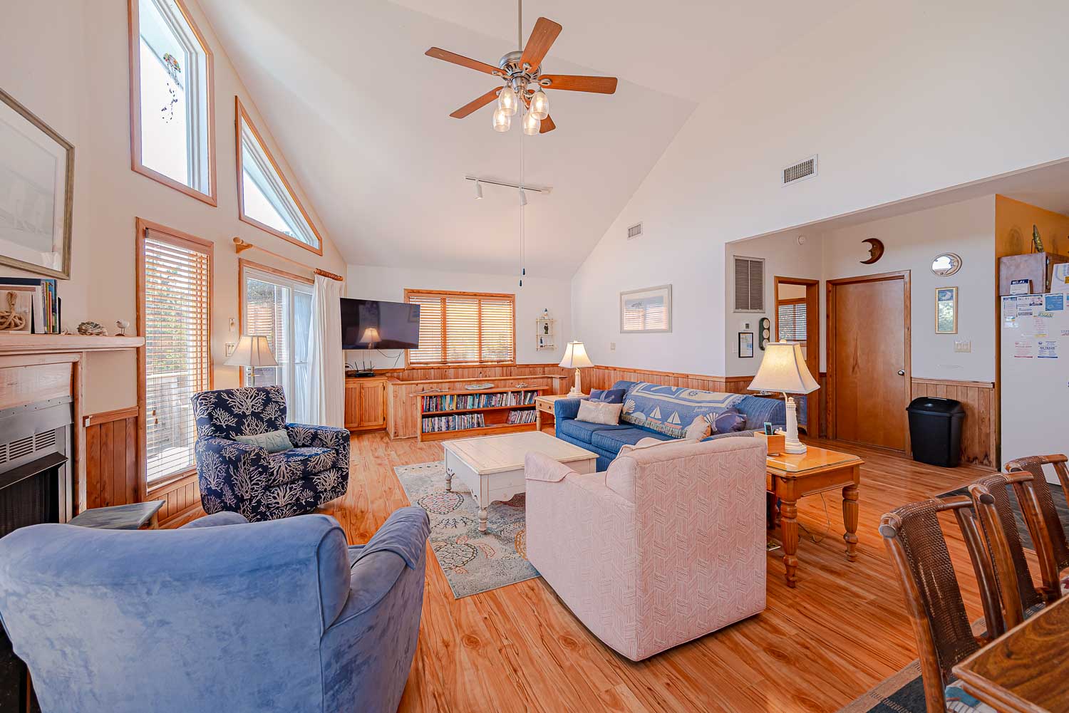 Top Level: Open and Spacious Living/Dining/Kitchen Area, Smart TV (Netflix Capable), DVD, Cathedral Ceilings, Bedroom w/Queen, Smart TV, and DVD, Full Bath, Sun Deck, and Screened Porch w/Furniture and Ceiling Fan.