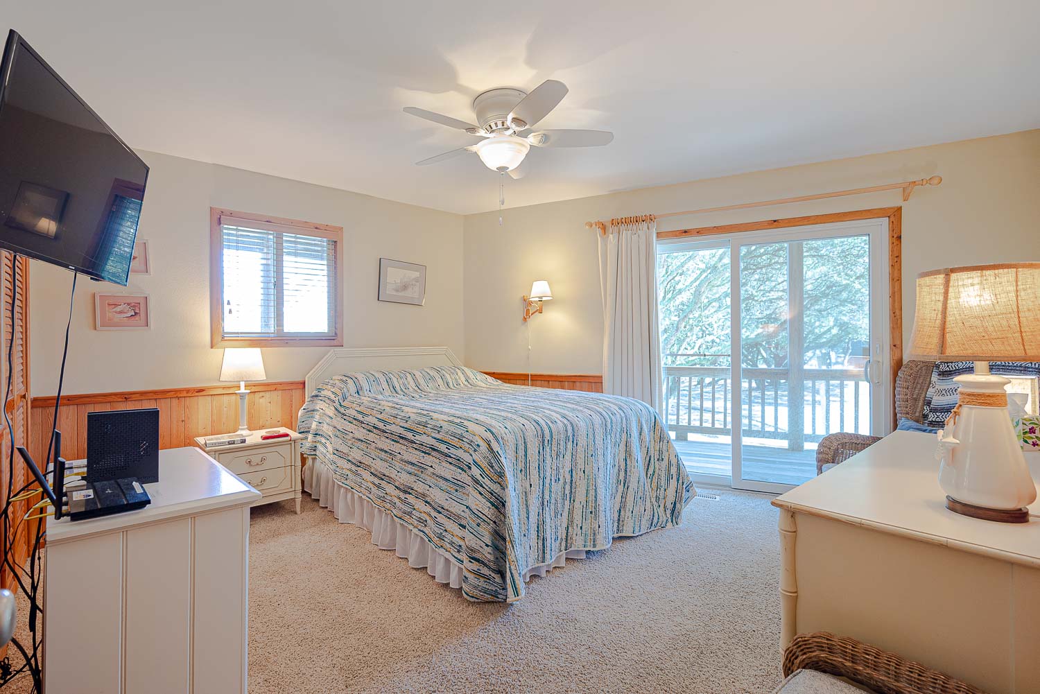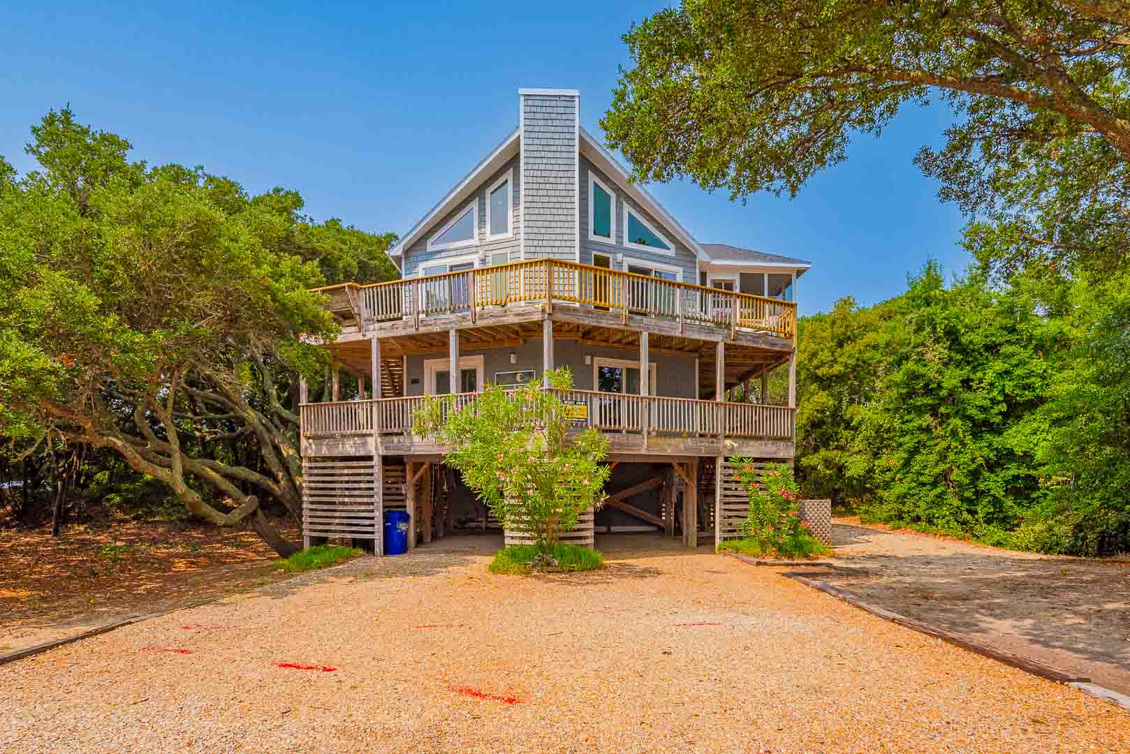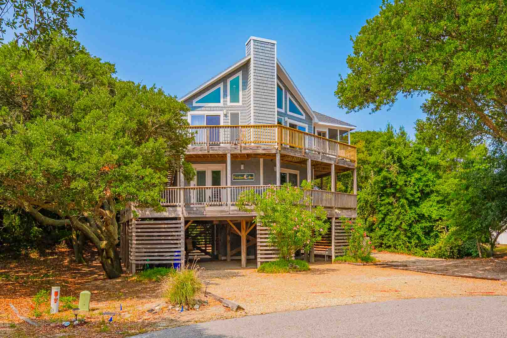 "Carolina Moon" is a nicely decorated home that is very comfortable and peacefully situated amongst a stand of Live Oak trees in the Tuckahoe oceanside community in Duck. Very well equipped and ideal for the family beach vacation, the oceanside location provides a relaxing atmosphere and easy access to the Beach (300 Yds to Beach Access w/No Streets to Cross). The Community Swimming Pool & Tennis/Pickleball courts.are features all will enjoy. Lots of extras and attention to detail ensure a comfortable stay for everyone. Convenient to shopping, dining, and all the activities the Village of Duck provides. Duck has a paved path that is great for walking, running, and biking. Be sure to take a stroll to the sound front dock across the street to catch a sunset or some blue crabs!