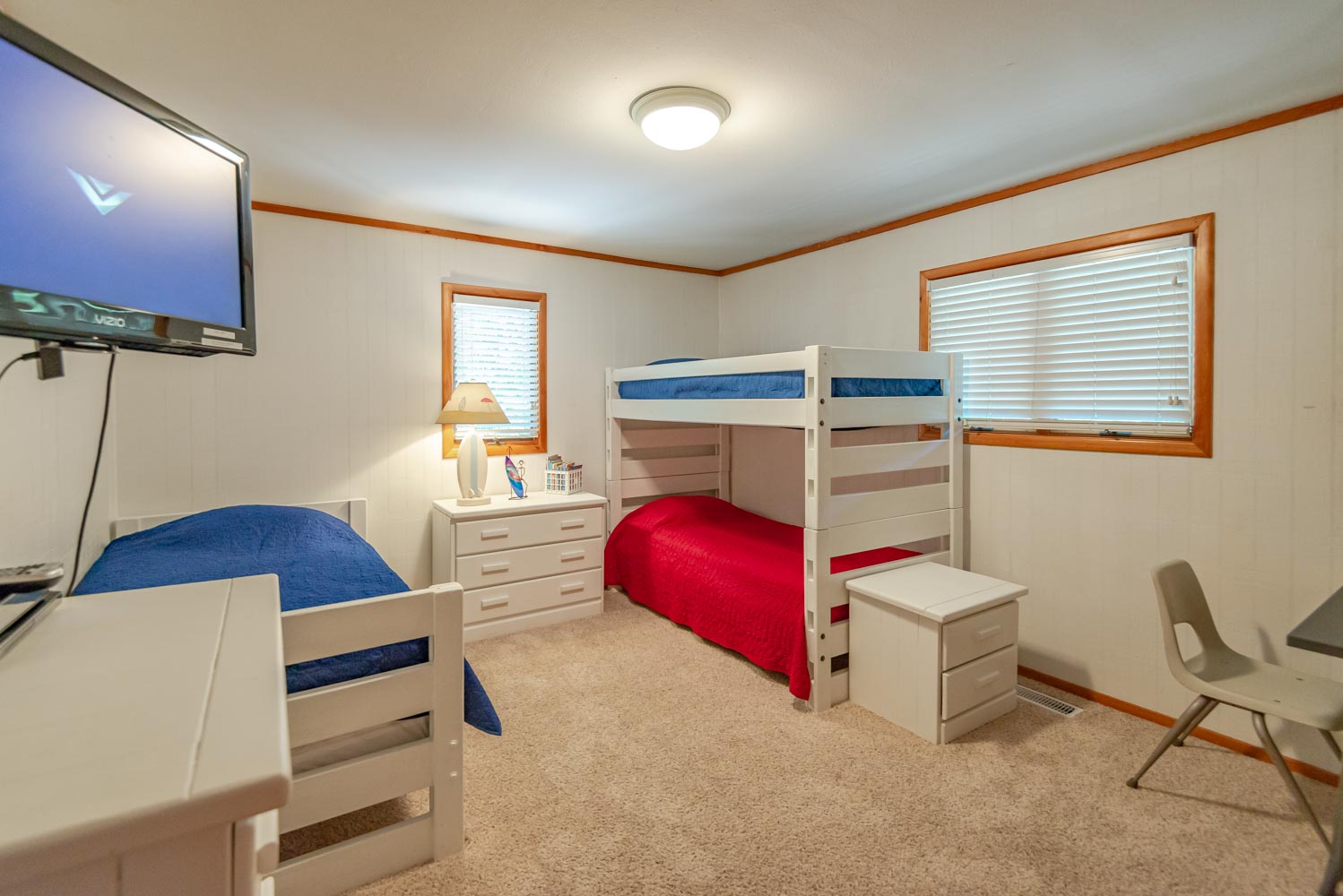 Mid Level: 3 Bedrooms (2 w/Queen, Smart TV, and DVD, 1 w/ Bunk Set & Single, Smart TV), Full Bath, Laundry Area, and Large Wrap Around Covered Deck.