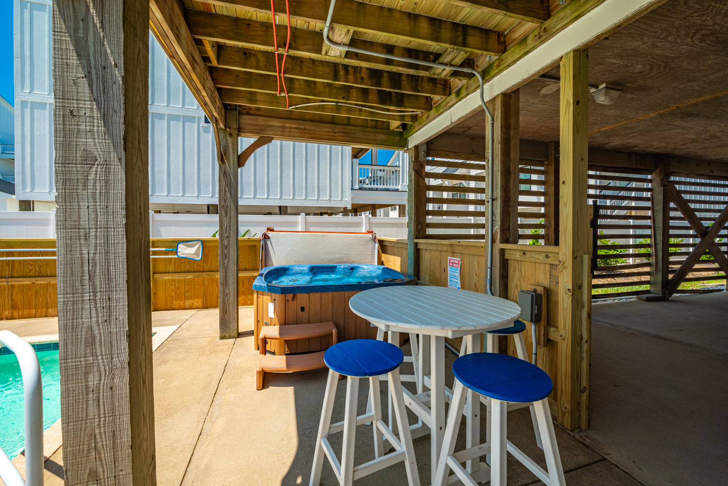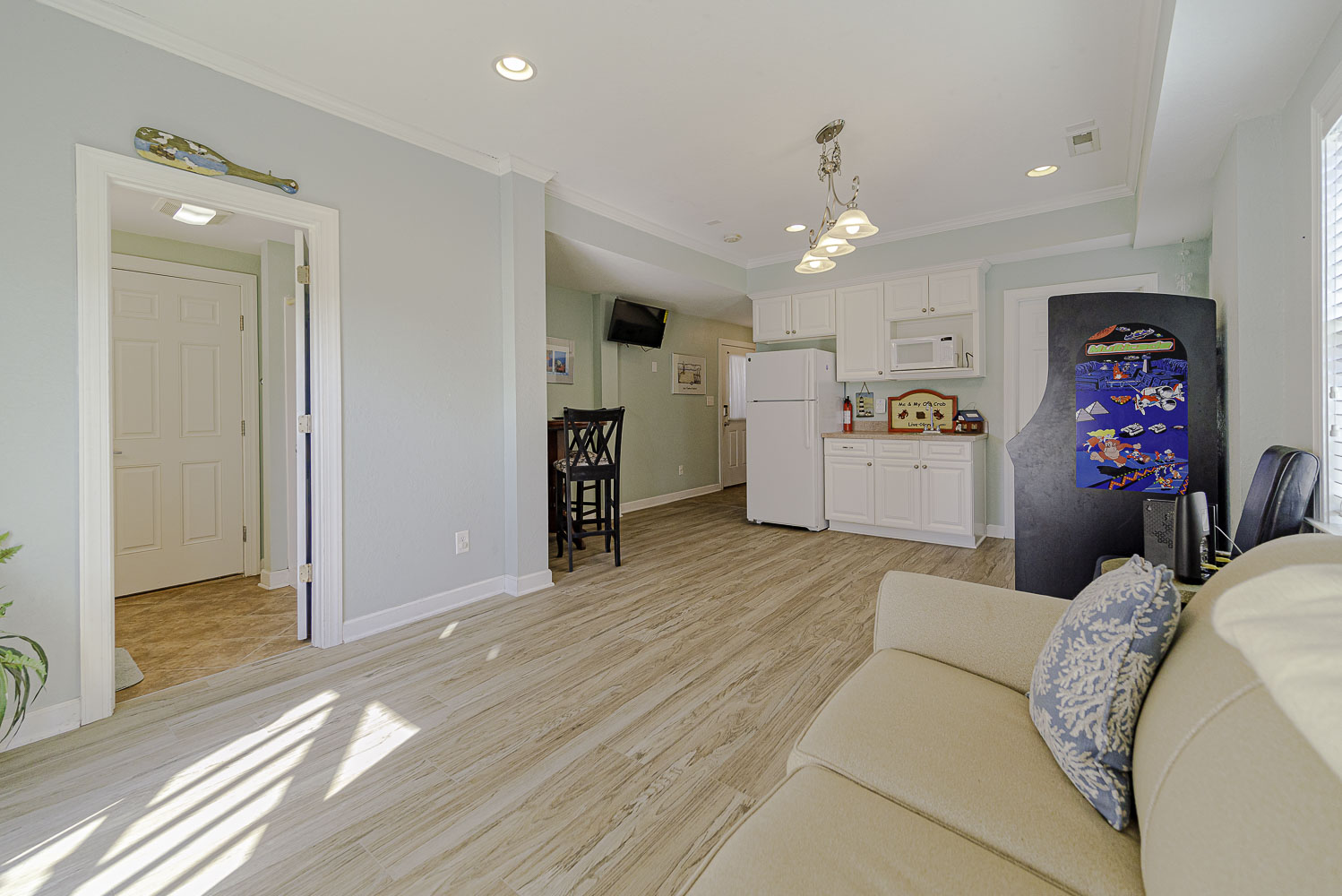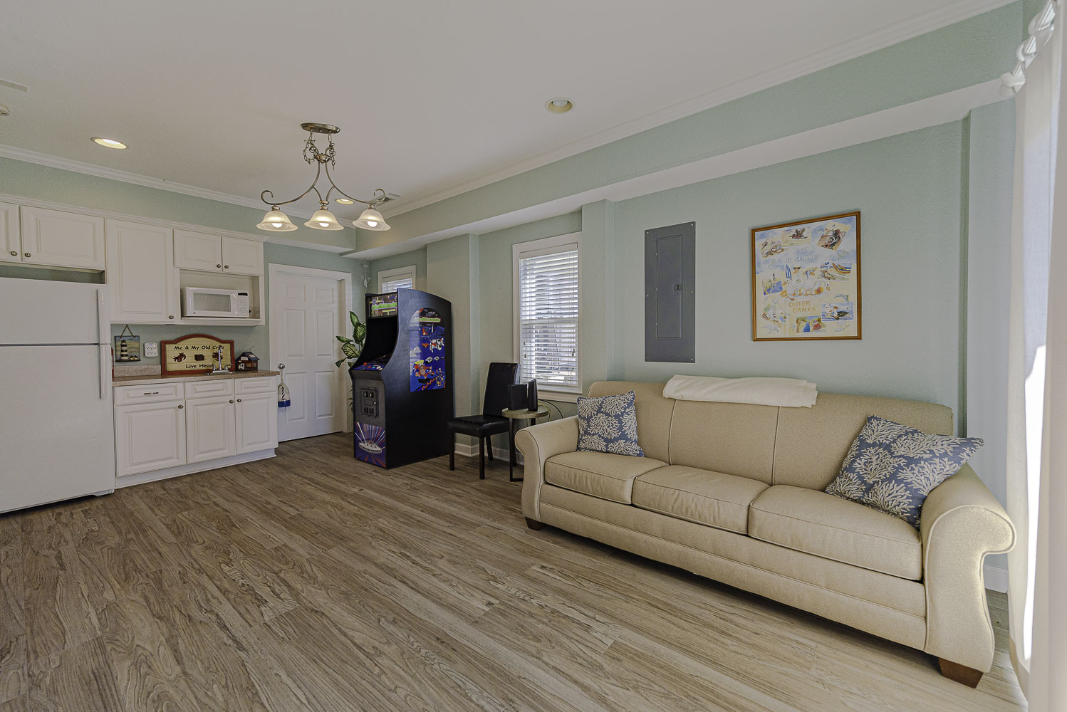 Ground Level: Parking for 4 Cars, Covered Entry, Elevator Rec. Room, Arcade Classic Features 60 Classic Arcade Games (Pac Man, Donkey Kong, Bomb Jack, Frogger, Pinball, Tank Battalion, Time Pilot, Super Cobra, Space Invaders), TV, Mini-Kitchen w/Refrigerator, Sink; Full Bath w/Shower, Access to Private Swimming Pool (Open Seasonally), Hot Tub, and Outside Shower.