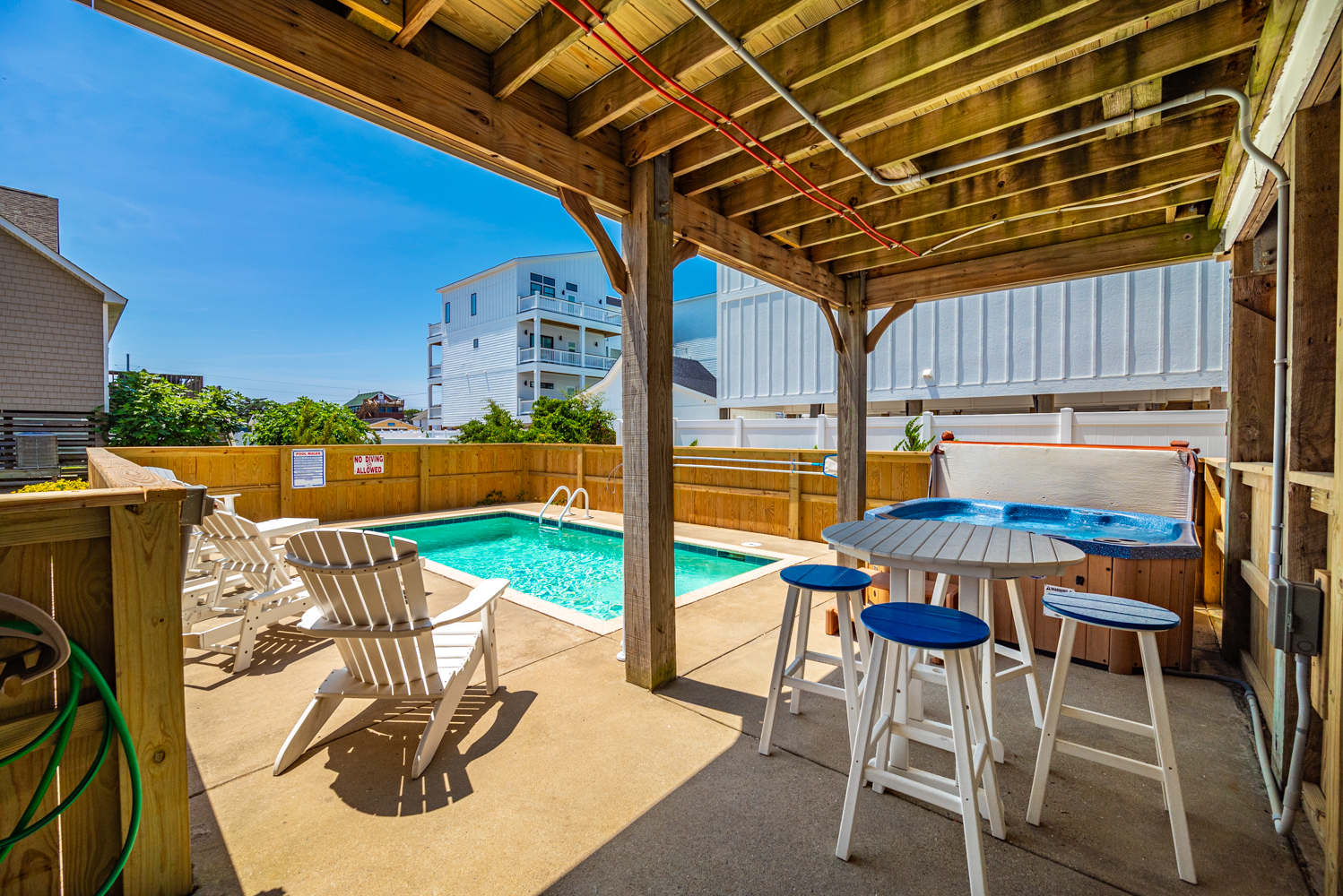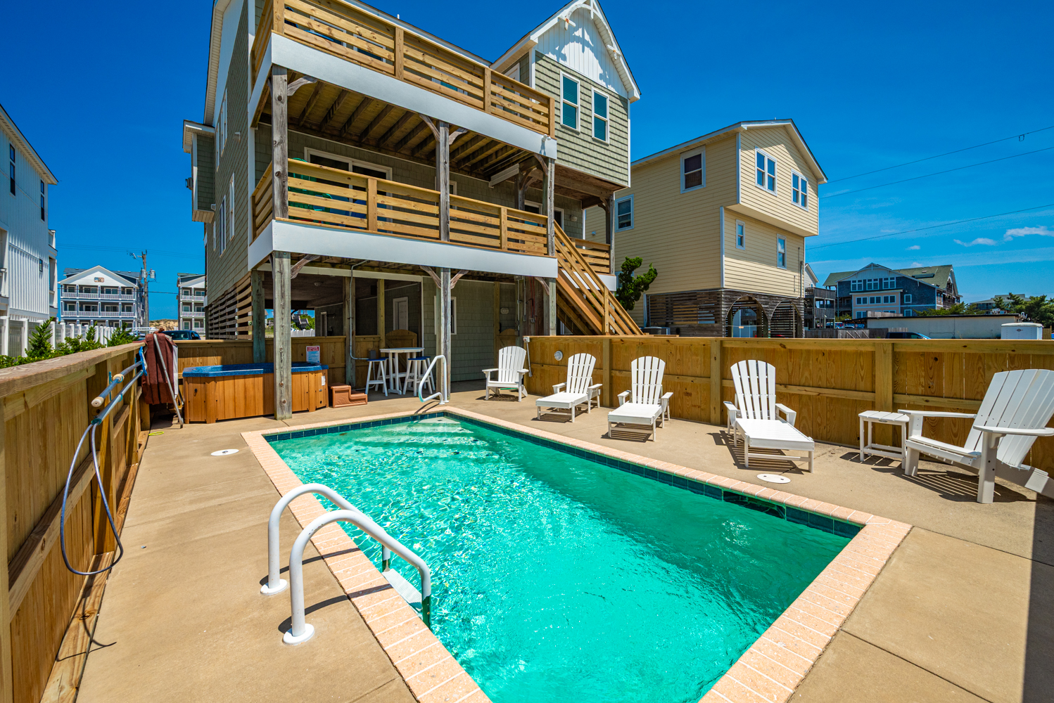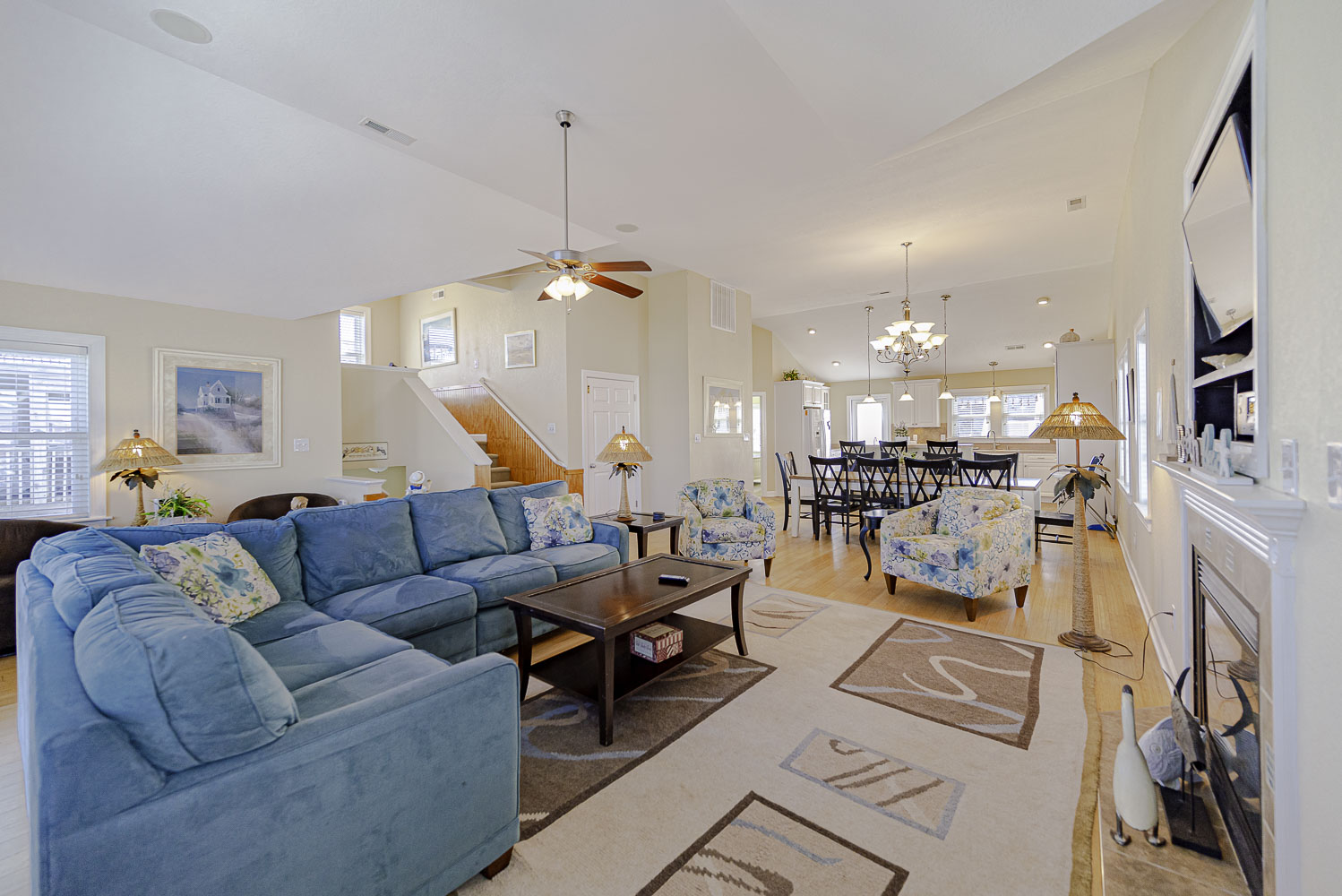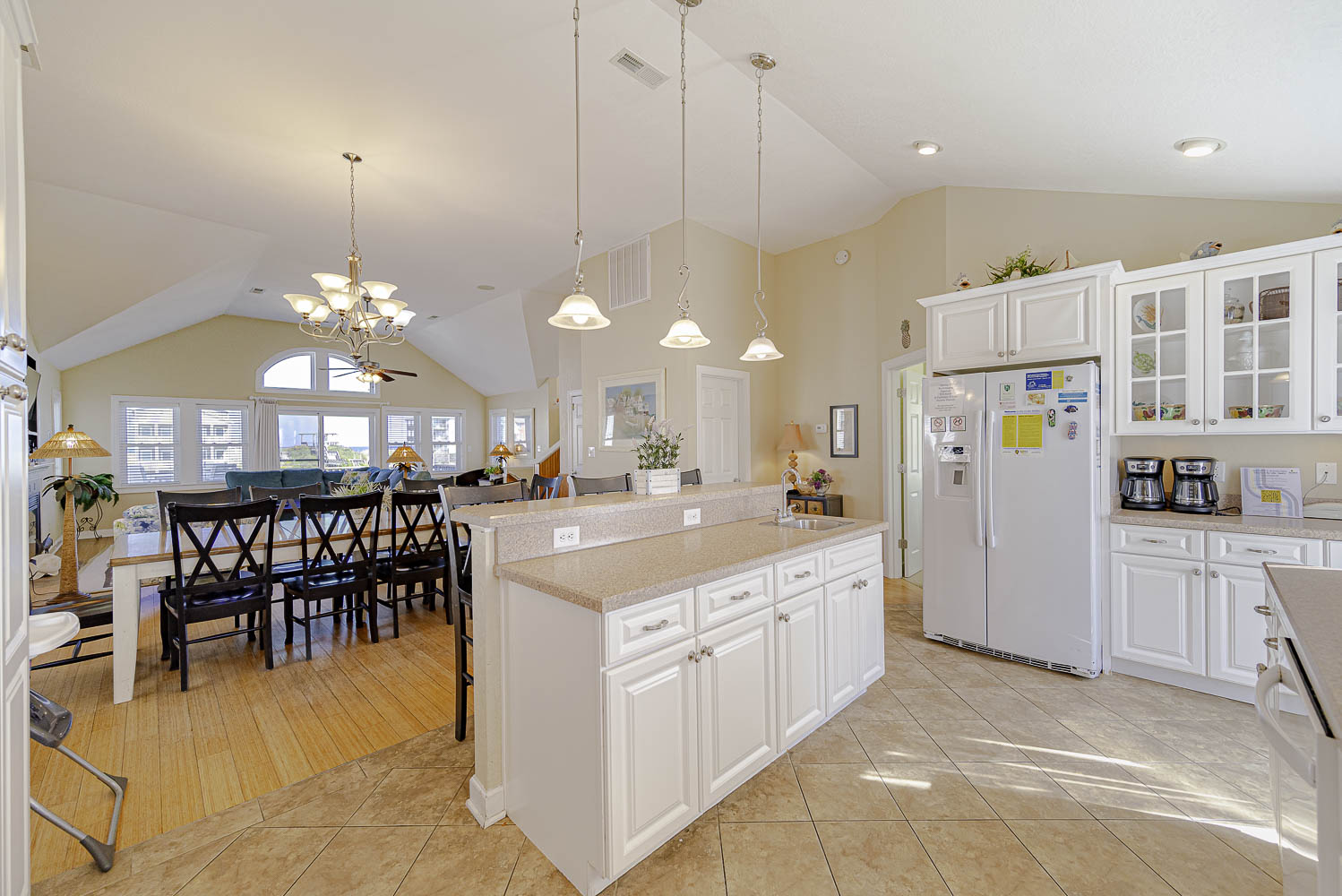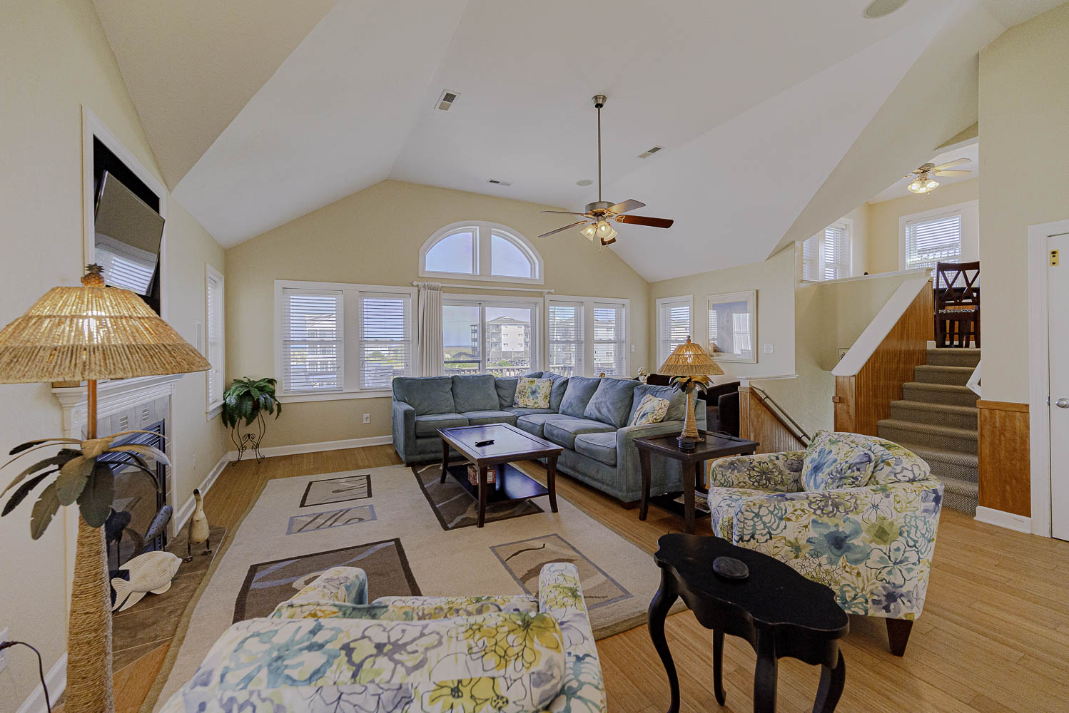 Top Level: Living Area, TV/DVD, Ocean Views; Kitchen w/Bar Seating for Three (3); Dining Area w/Seating for Ten (10); Steps to Ships Watch w/Seating for Four (4); Half Bath, Private Suite w/King, TV, Full Bath w/Walk-In Tiled Shower; Front Sun Deck w/Ocean Views, and Back Sun Deck w/Deck Furniture Overlooking Pool.