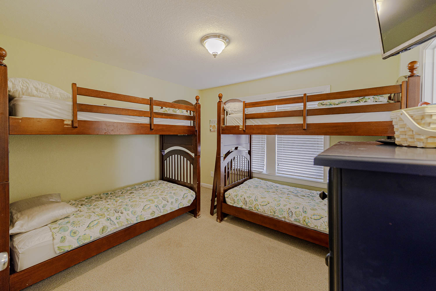Mid Level: 4 Bedrooms (Private Suite w/Queen, TV, Full Bath w/Shower; Private Suite w/King, TV, Full Bath w/Tub/Shower; 1 w/2 Singles, TV, 1 w/2 Bunk Sets, TV), Shared Full Hall Bath w/Tub/Shower, Laundry Area, Front Covered Deck, and Back Covered Deck w/Deck Furniture Overlooking Pool Area.