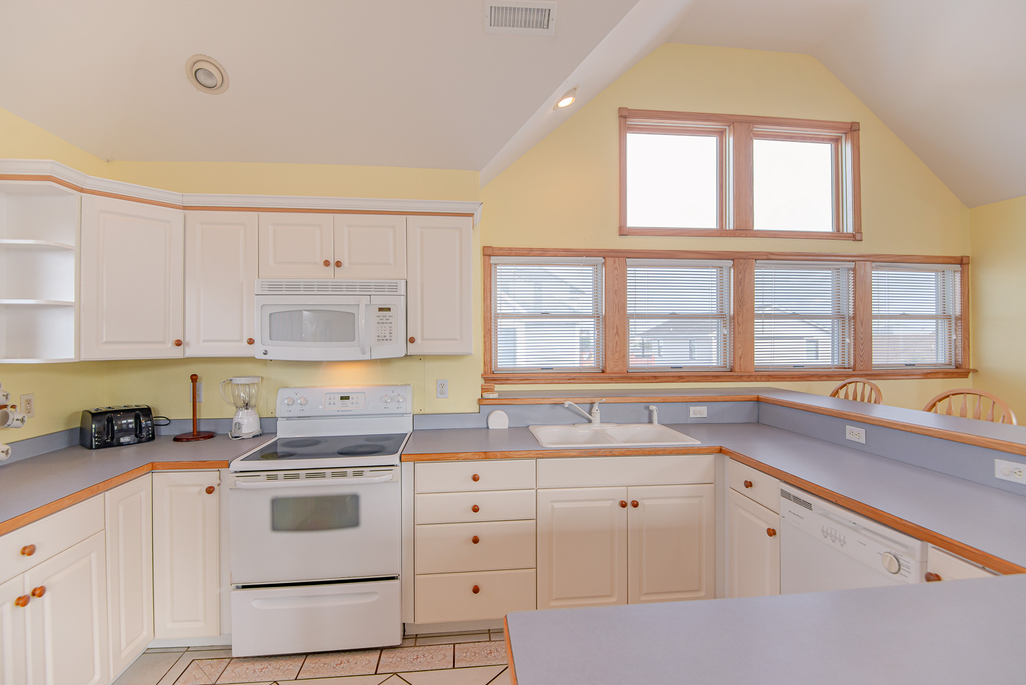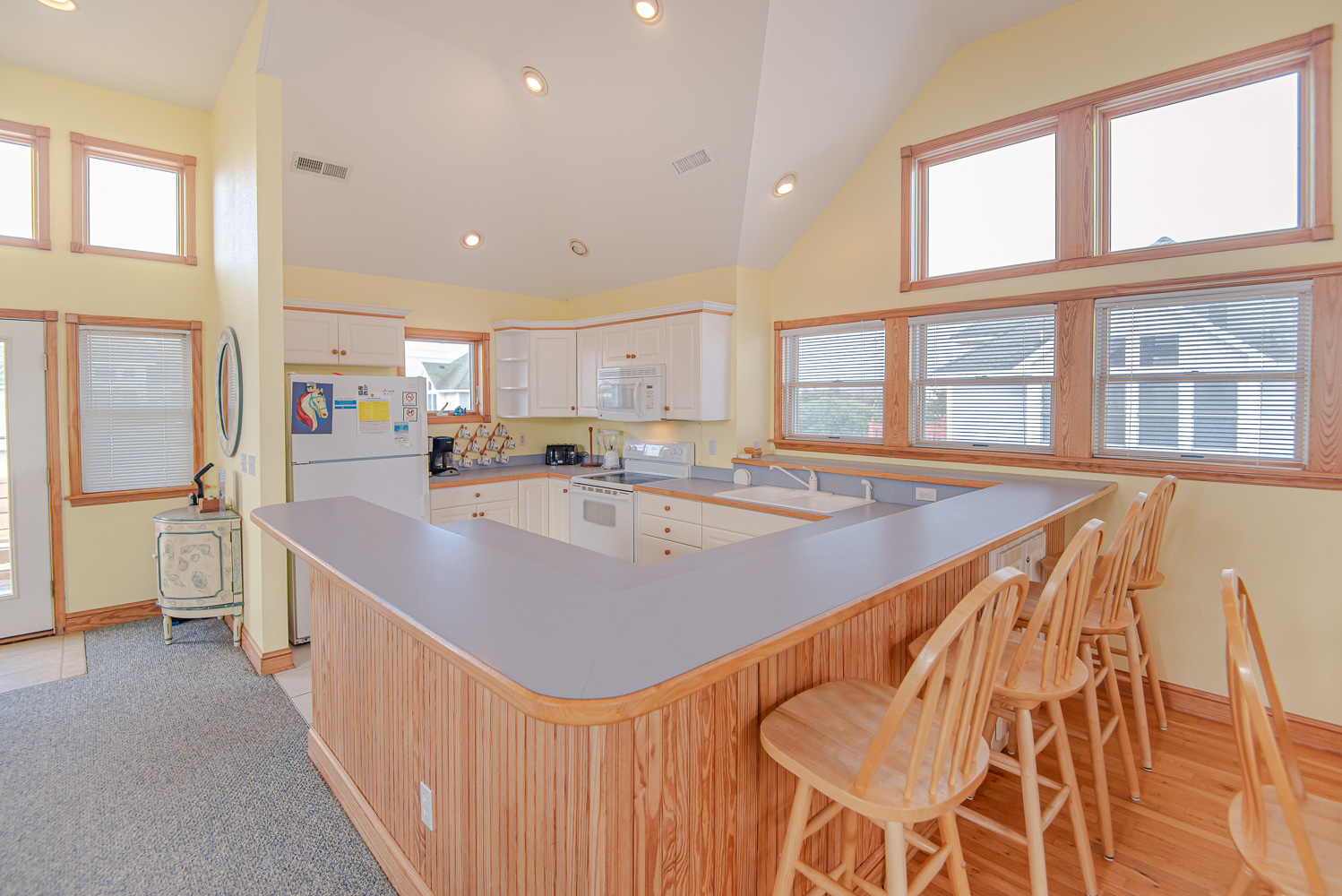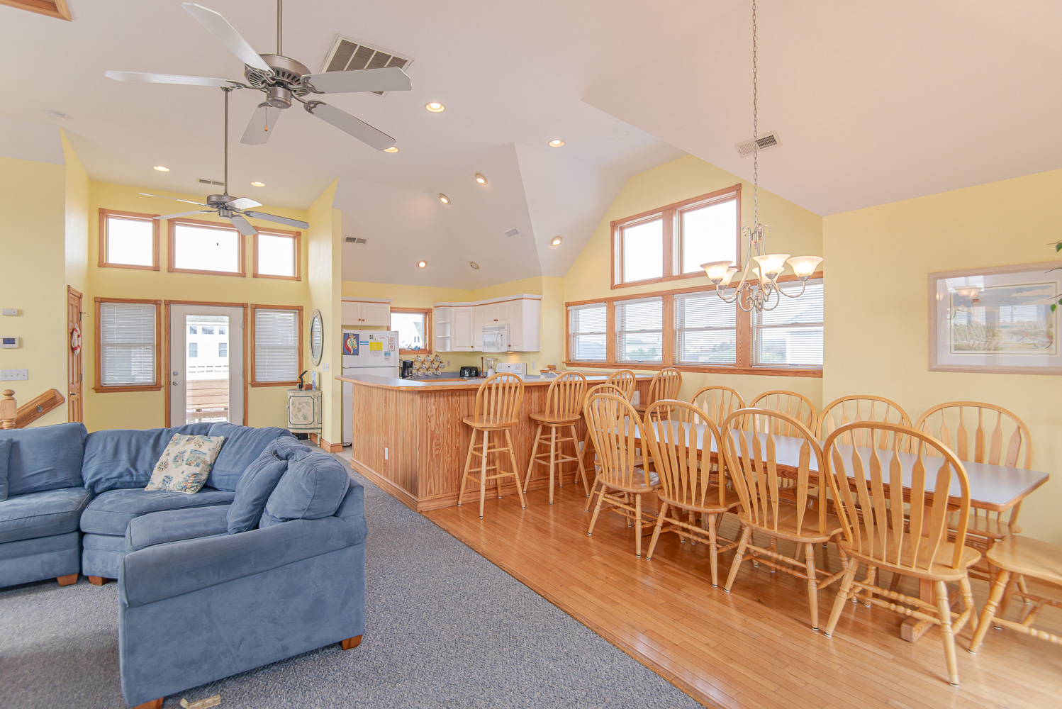 Top Level: Spacious Living Area, 42 Inch Flat Screen TV, Cathedral Ceilings, Ceiling Fan, Access to Back Sun Deck Overlooking Pool Area w/Deck Furniture, Dining Area w/Seating for Ten (10), Well Equipped Kitchen w/Bar Seating for Four (4), and Access to Front Sun Deck w/Deck Furniture.