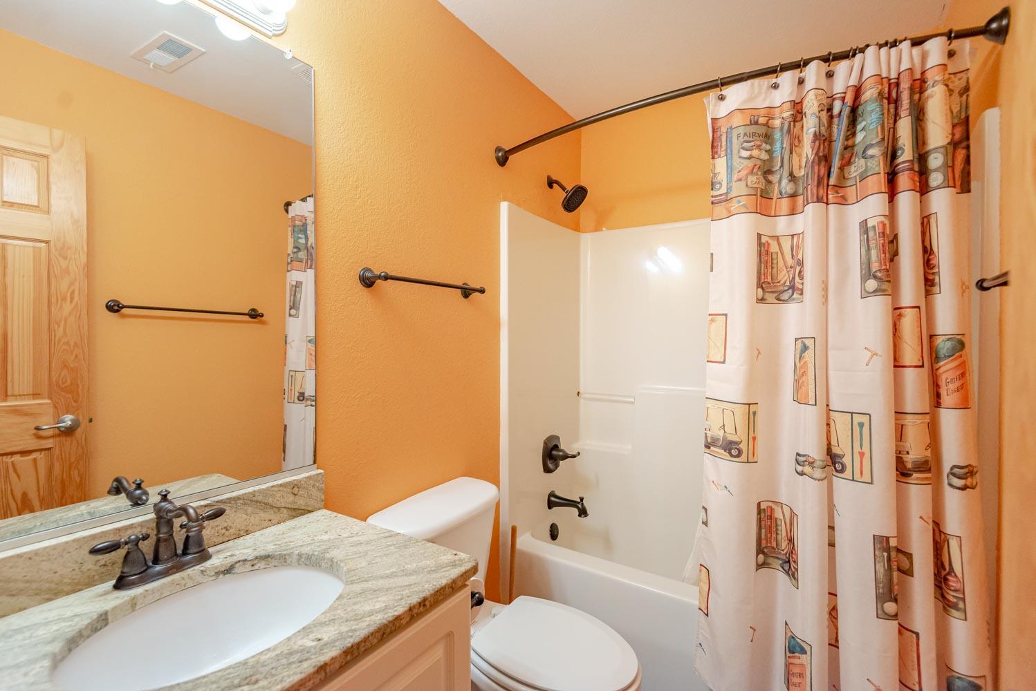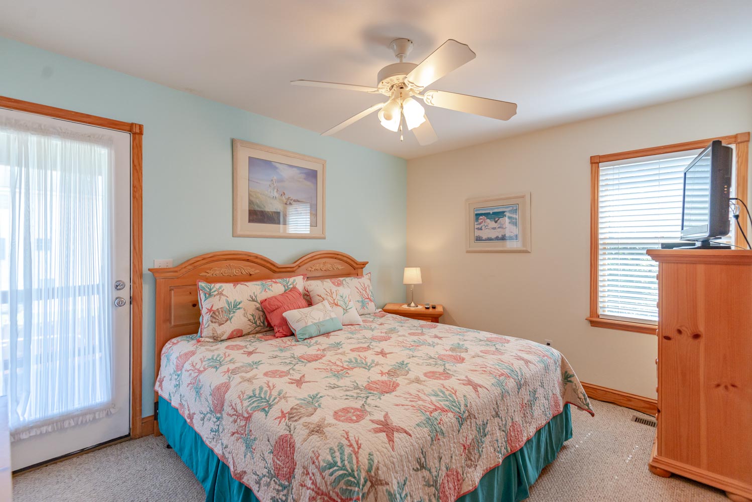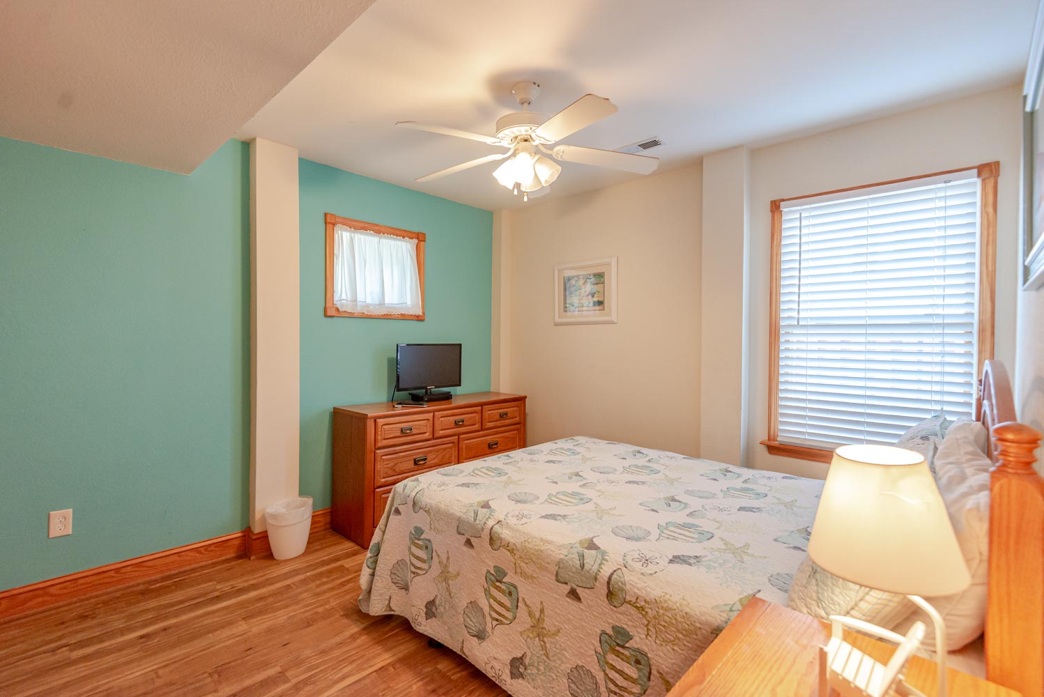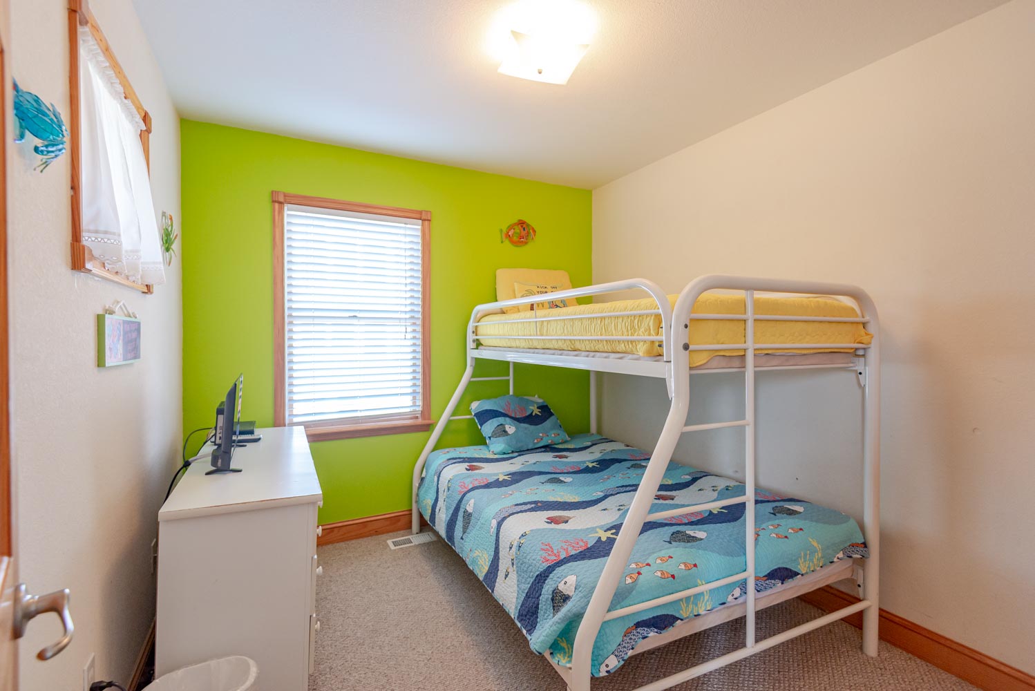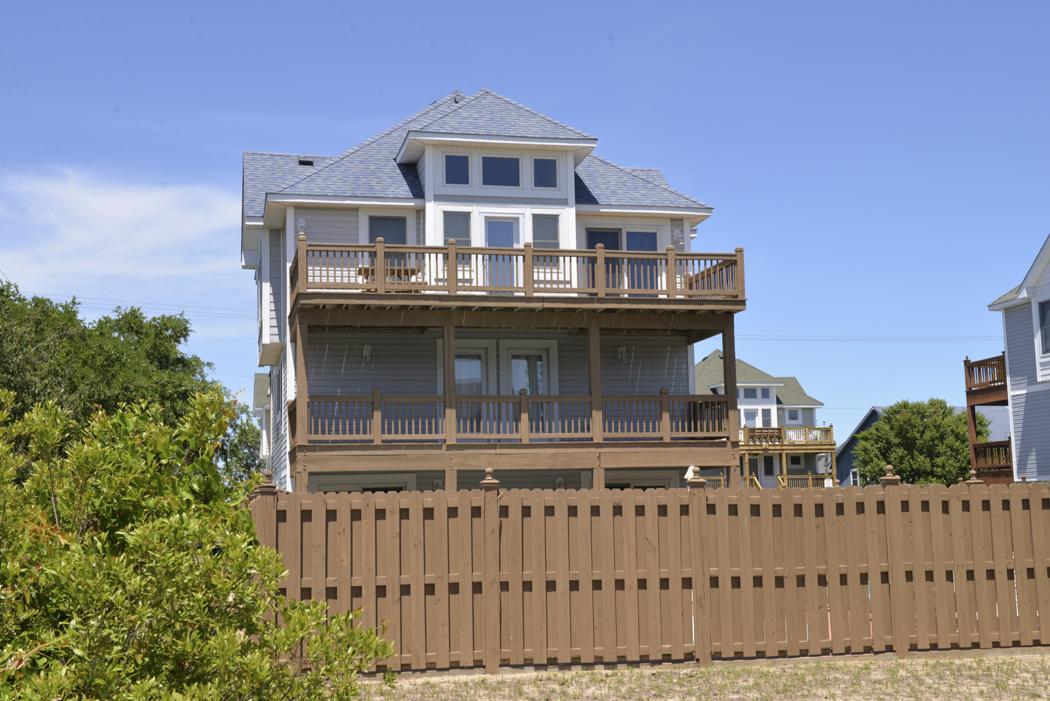 Mid Level: 3 Bedrooms (Private Suite w/King, TV, Full Bath; 1 w/King, TV; 1 w/Duo Bunk, TV), Full Bath, Front Covered Deck, and Back Covered Deck Overlooking Pool Area.