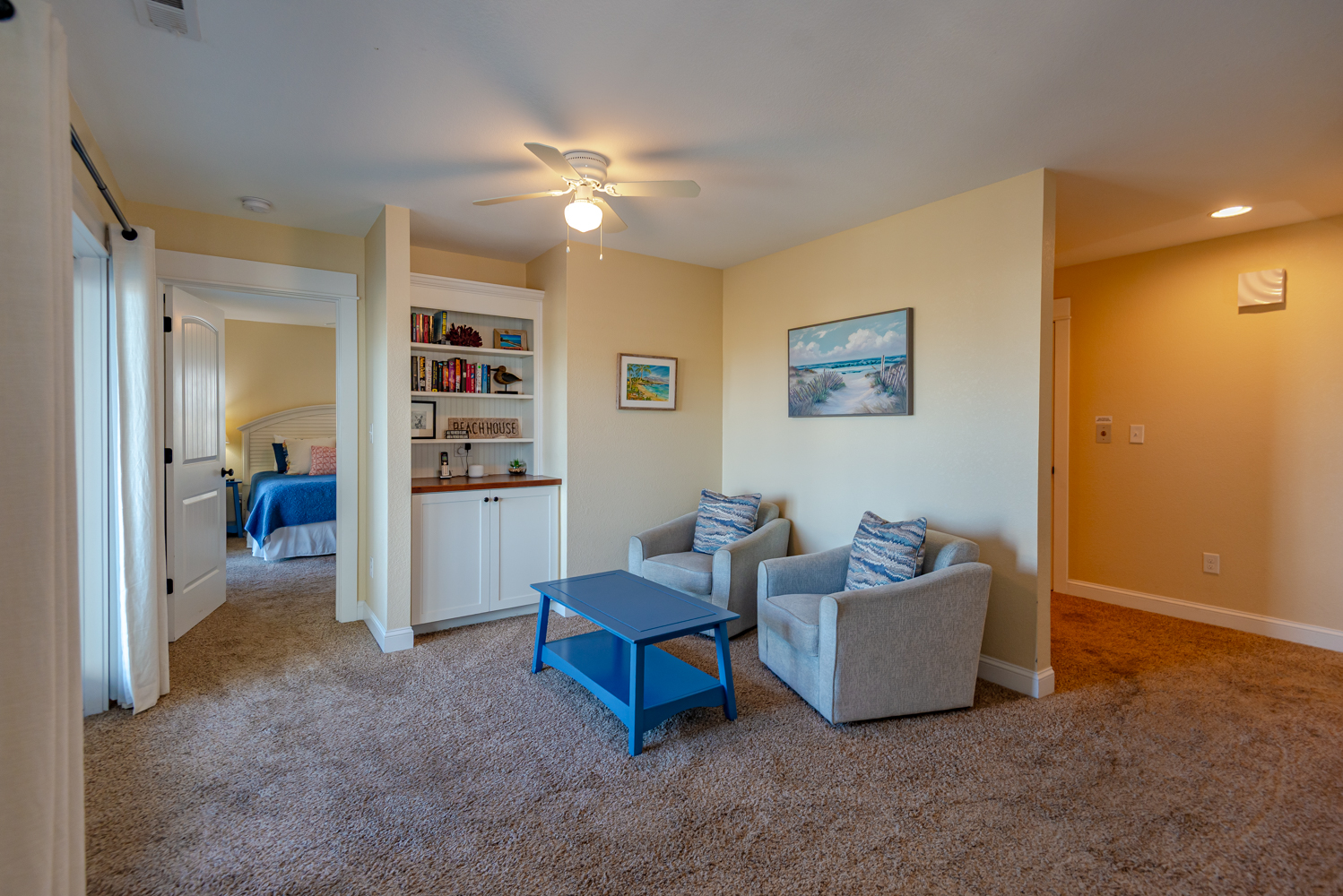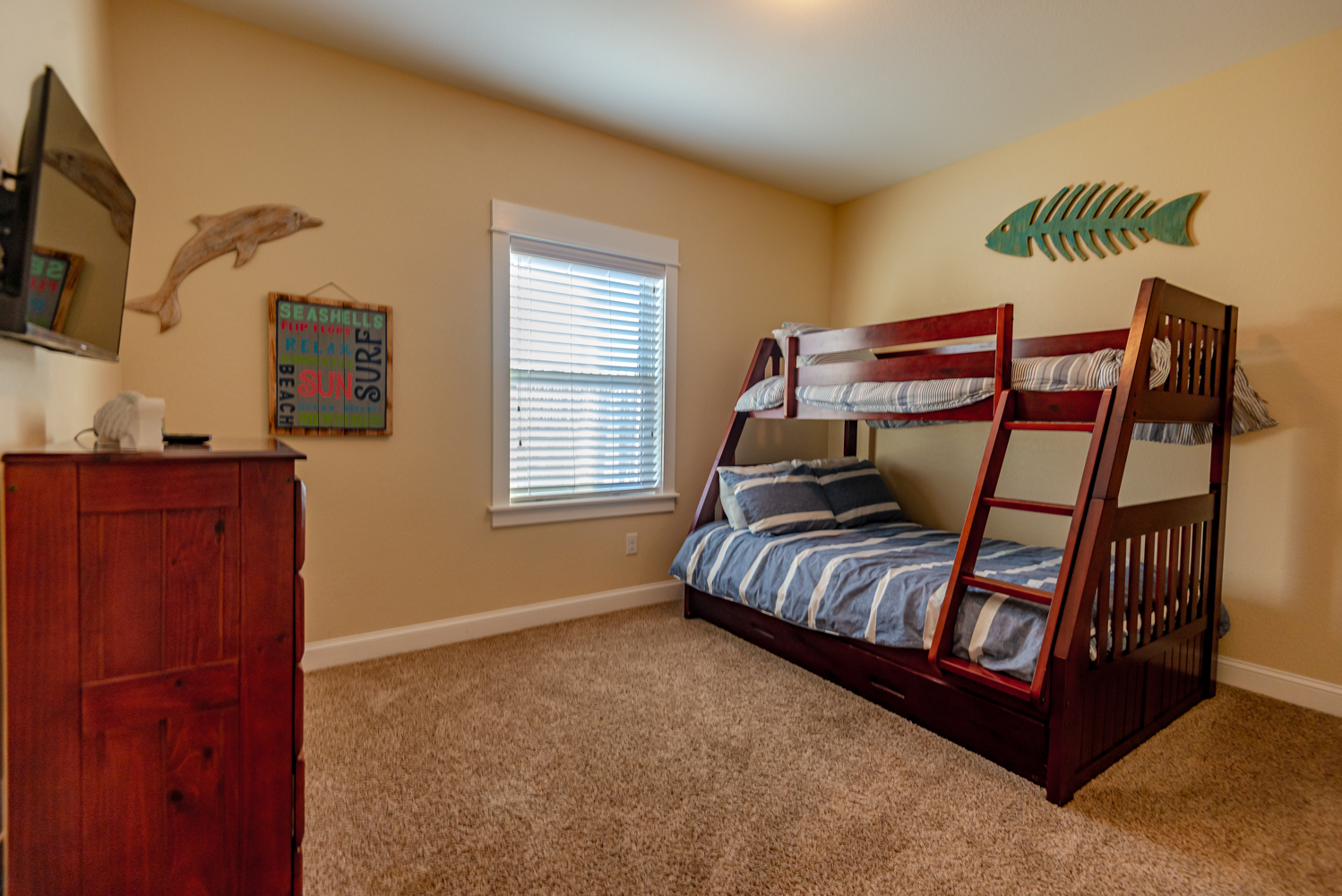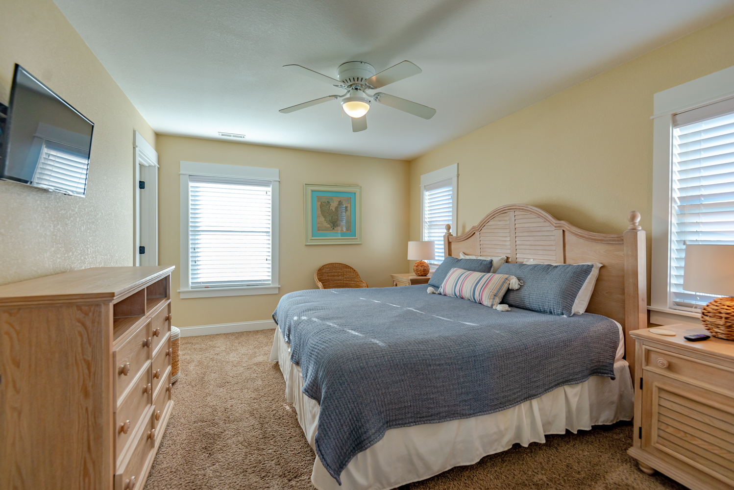 Mid Level: Sitting Area w/Games, Puzzles, & Books; 3 Bedrooms (2 Private Suites w/Kings, 36 Inch Flat Screen TVs, Full Baths w/Walk-In Showers; Private Suite w/Queen, 36 Inch Flat Screen TV, Full Bath w/Walk-In Shower), & Covered Deck w/Deck Furniture.