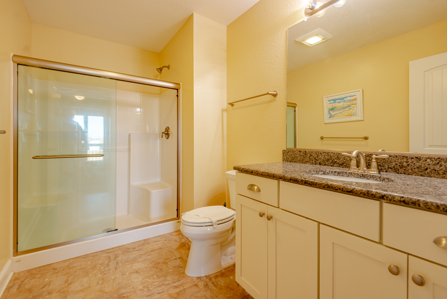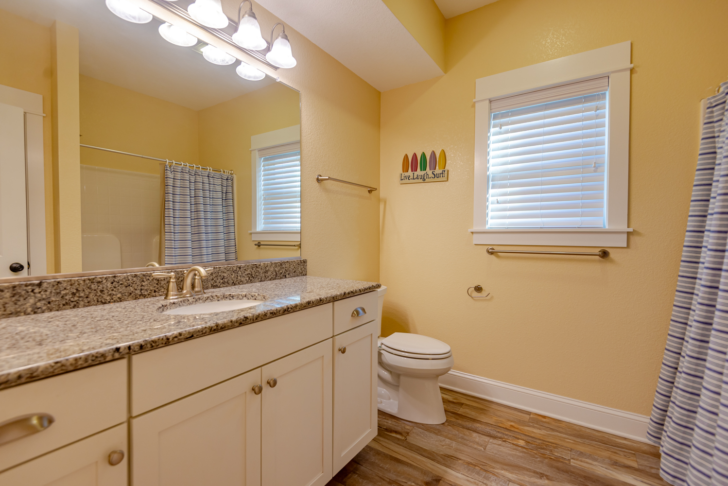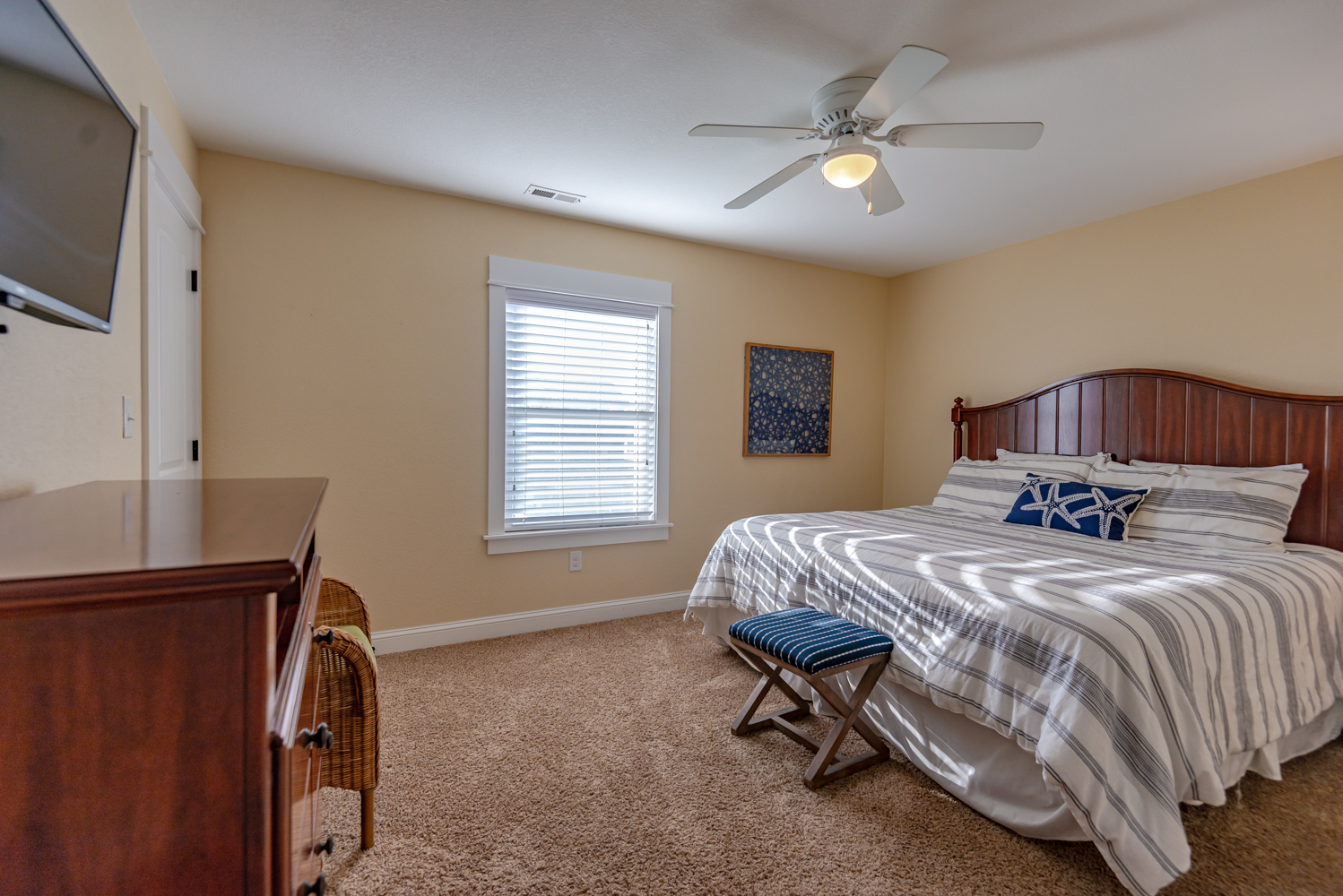 Mid Level: Sitting Area w/Games, Puzzles, & Books; 3 Bedrooms (2 Private Suites w/Kings, 36 Inch Flat Screen TVs, Full Baths w/Walk-In Showers; Private Suite w/Queen, 36 Inch Flat Screen TV, Full Bath w/Walk-In Shower), & Covered Deck w/Deck Furniture.