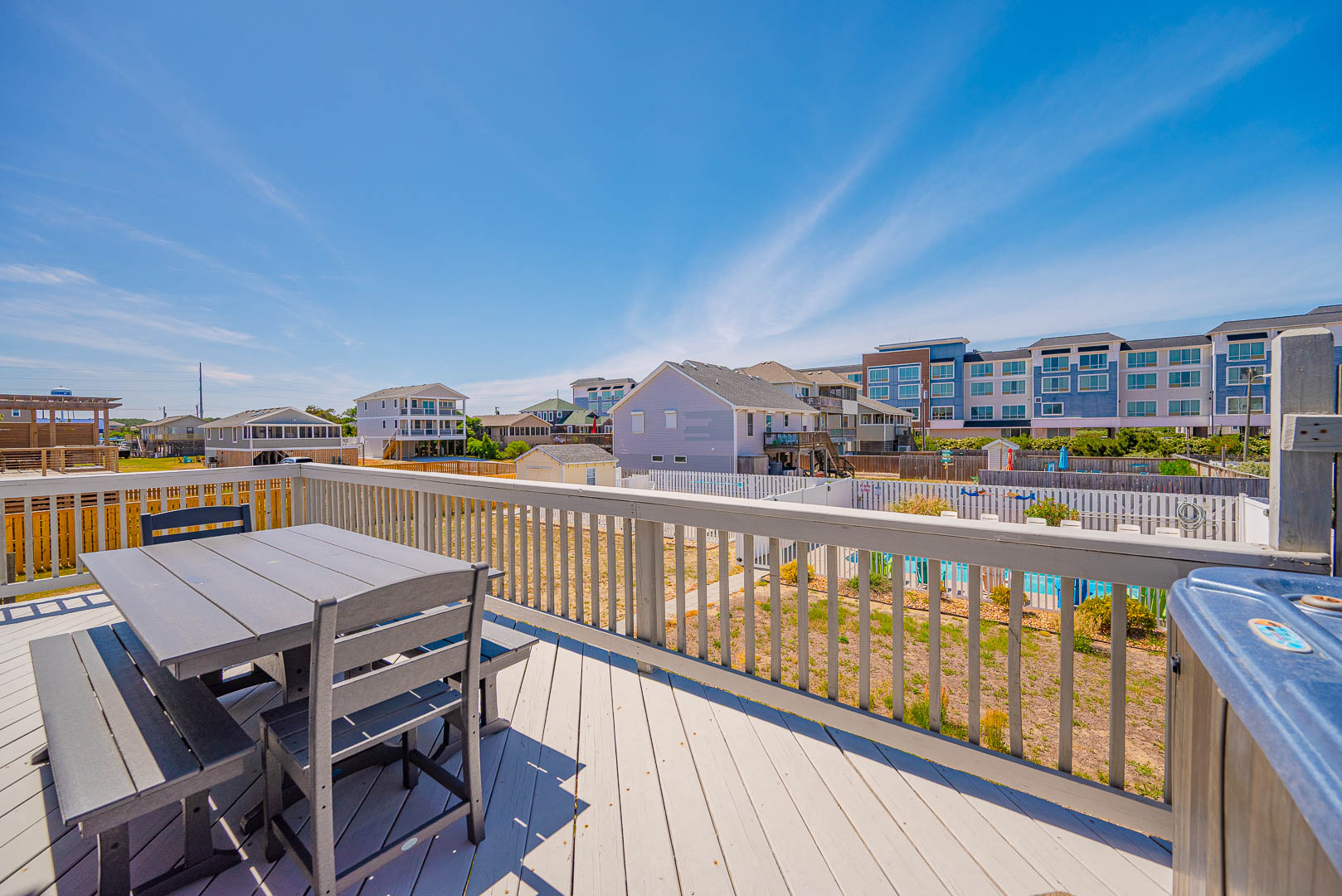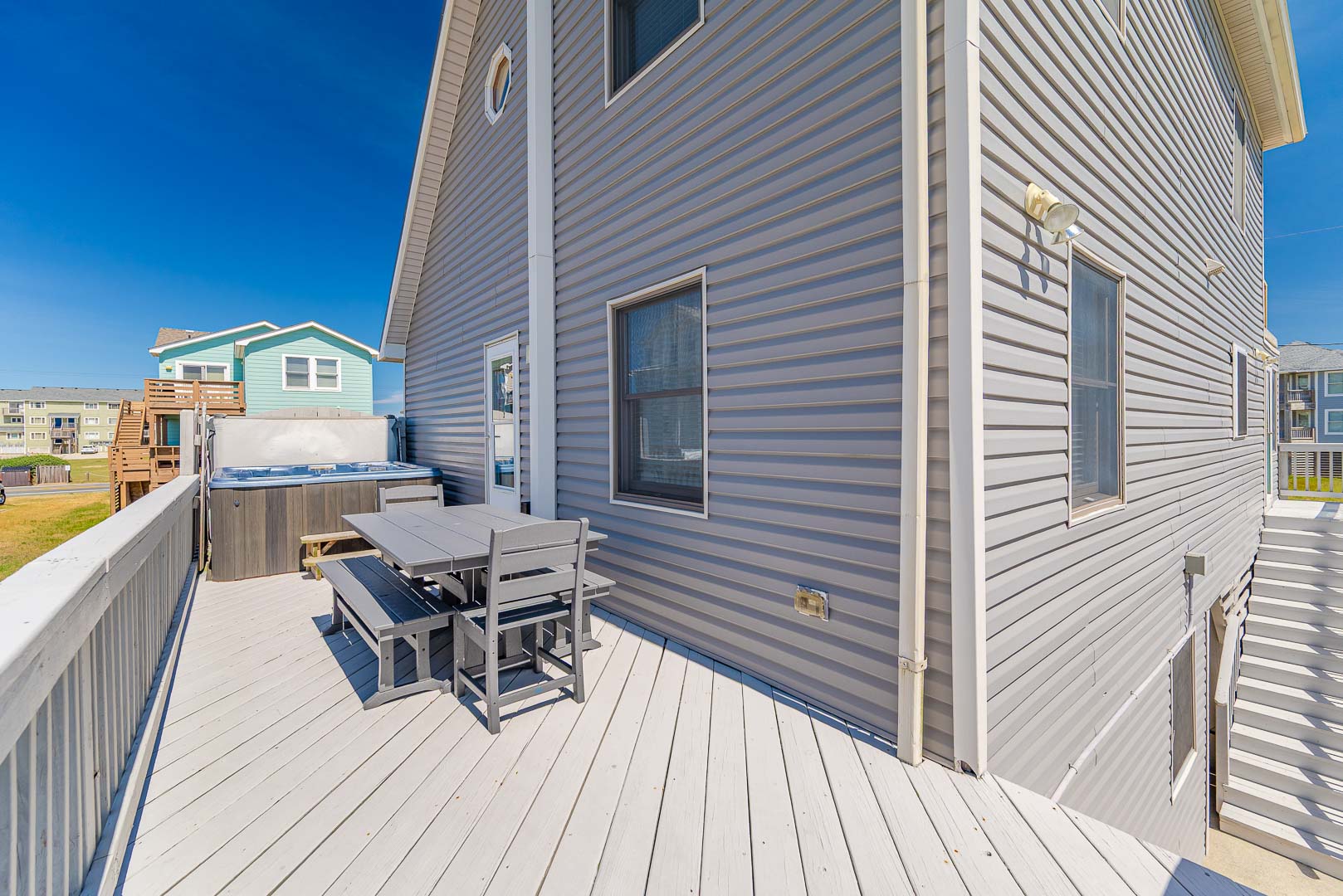 Mid Level: Well -Appointed Living Area, TV, Full Kitchen, Bar Seating, Dining Area, Bedroom w/ Queen, Full Shared Bath, Front Sun Deck with Loungers Overlooking 8th Street Beach Access, Sun Deck w/Hot Tub Overlooking Back Yard.