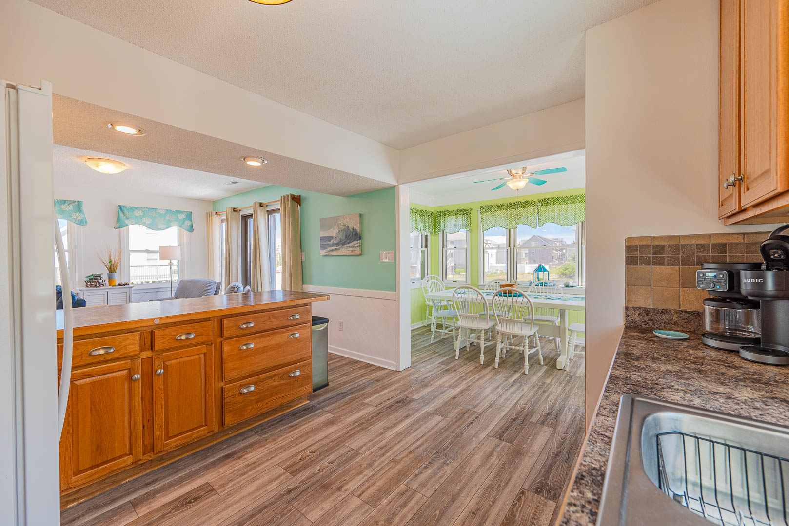 Bright, open, and inviting, Lucy's Shore Escape offers many upgrades including premium LVP flooring, kitchen w/breakfast bar seating, a loft with TV and multiple decks for enjoying the Outer Banks outdoors. There is ample space for all and Two Mature Dogs are allowed, w/pet fees.