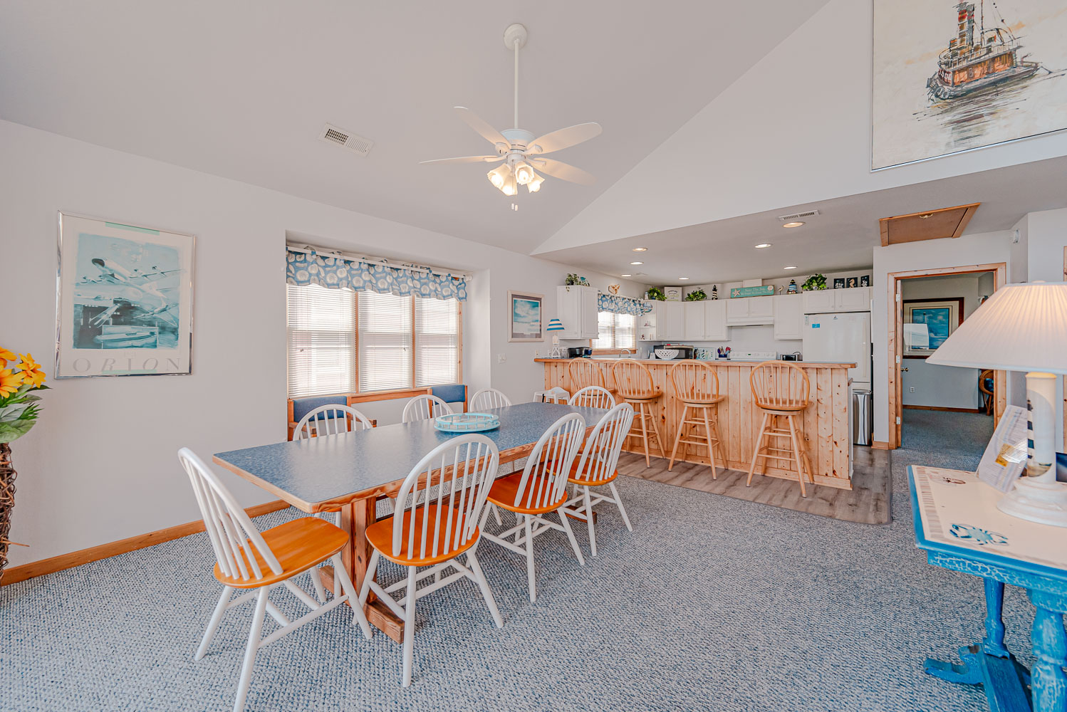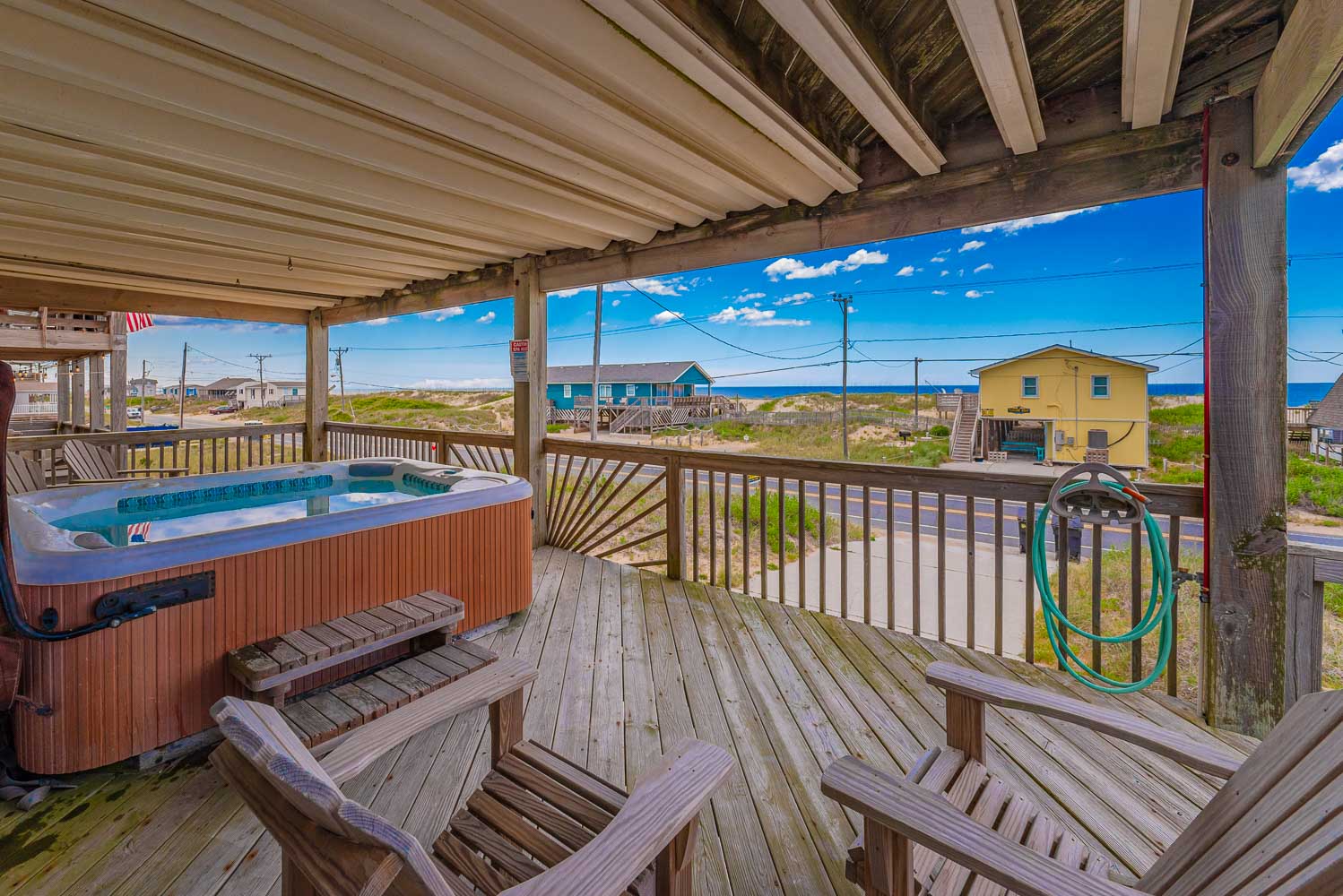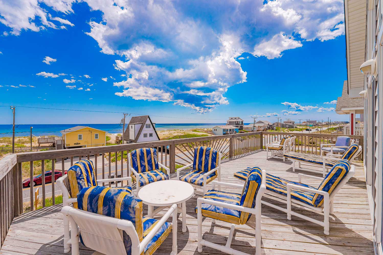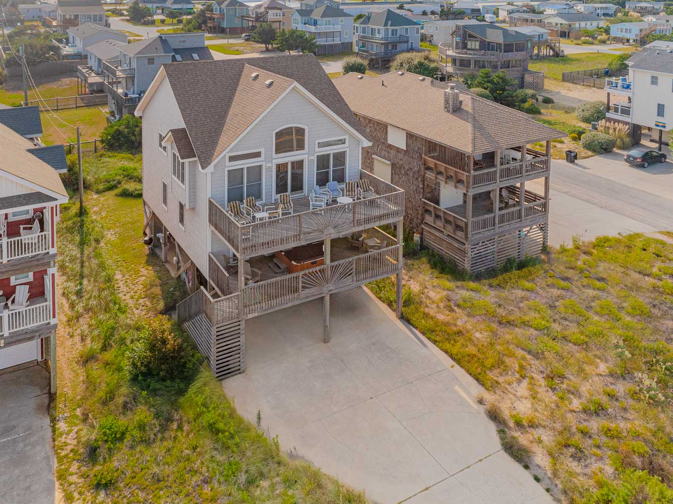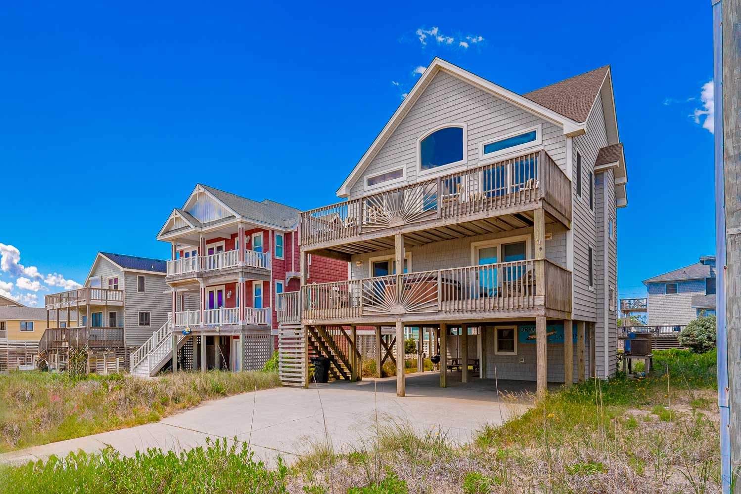 Outstanding Ocean Views and a location just steps away from the Beach make Orion’s Landing a can’t go wrong choice for your family’s Outer Banks vacation. 2026 brings a new Private Swimming Pool and Hot Tub, plus gas grill and all new mattresses throughout! (The new saltwater pool has a heating option available for an additional fee). In addition, all new decks and an outdoor luggage/grocery lift are just some of the new upgrades you’ll find. By late summer owners hope to change out the queen/twin bedroom to a queen only, and change out the double twin bedroom to a double bunkroom. This well-equipped, spacious and tastefully decorated home has breathtaking panoramic views from the interior and front decks; these areas overlooking the Atlantic will be a focal point and gathering place for your group, especially the extra-large kitchen which will certainly be appreciated for those big family meals! This home is a perfect vacation choice and Beach Lovers’ Dream. Ocean access is one lot down at Wilkinson Street, or one block up at East Chowan Street. Located on the beach road at the 5.5 milepost in Kill Devil Hills, this home is incredibly convenient to great shopping and dining!