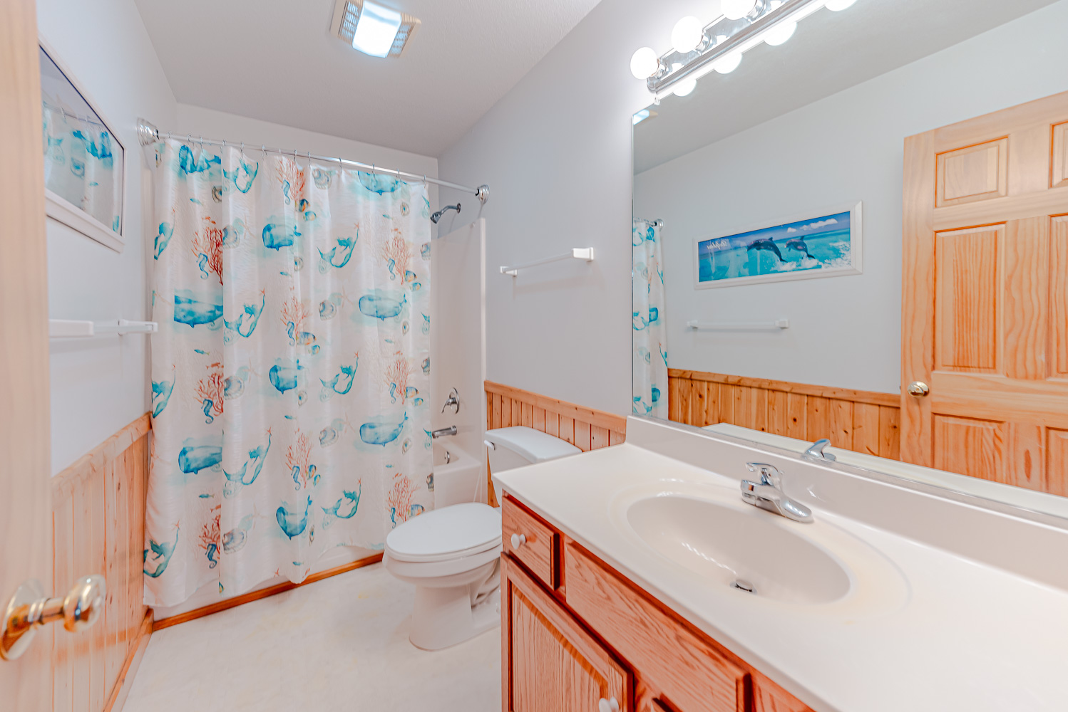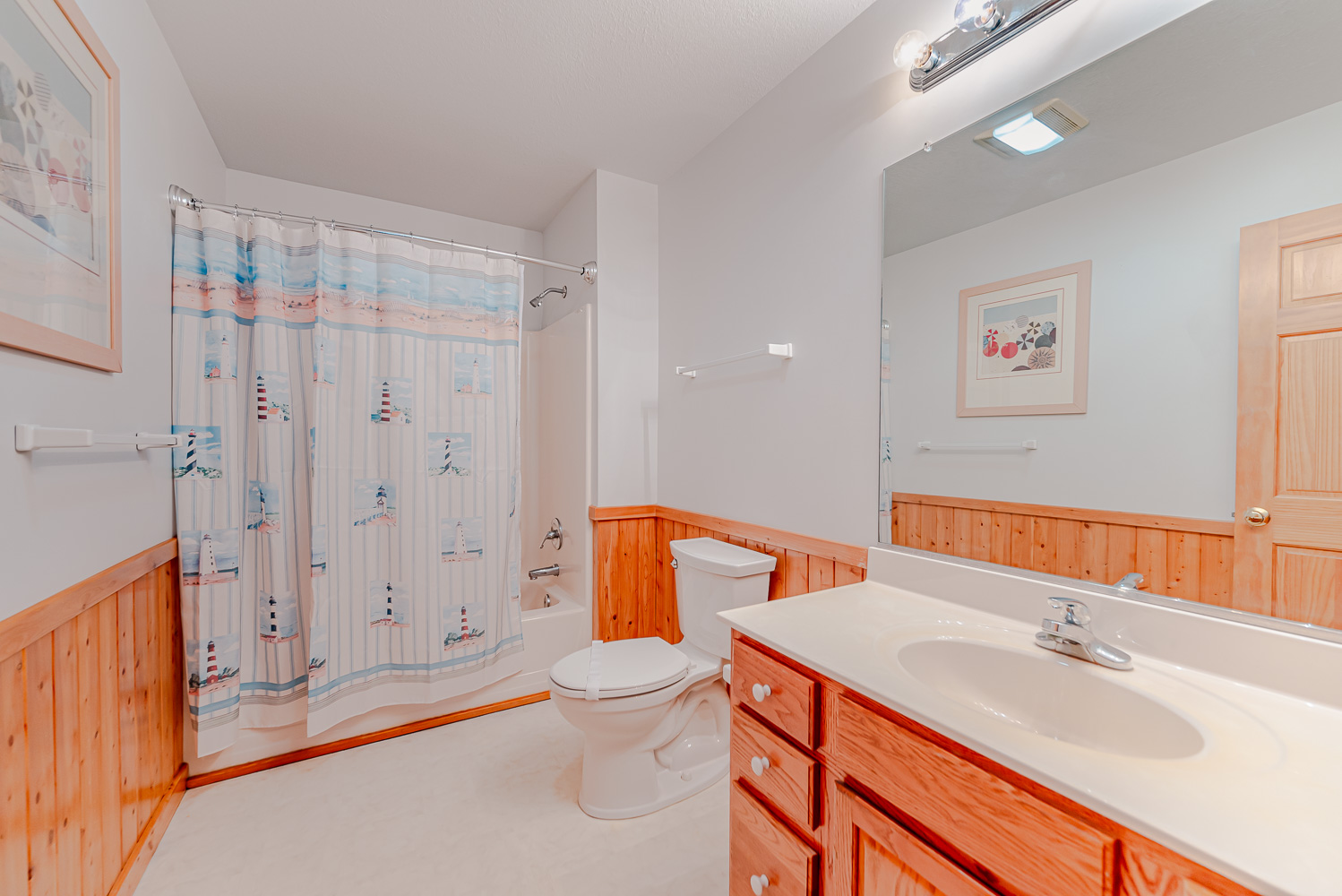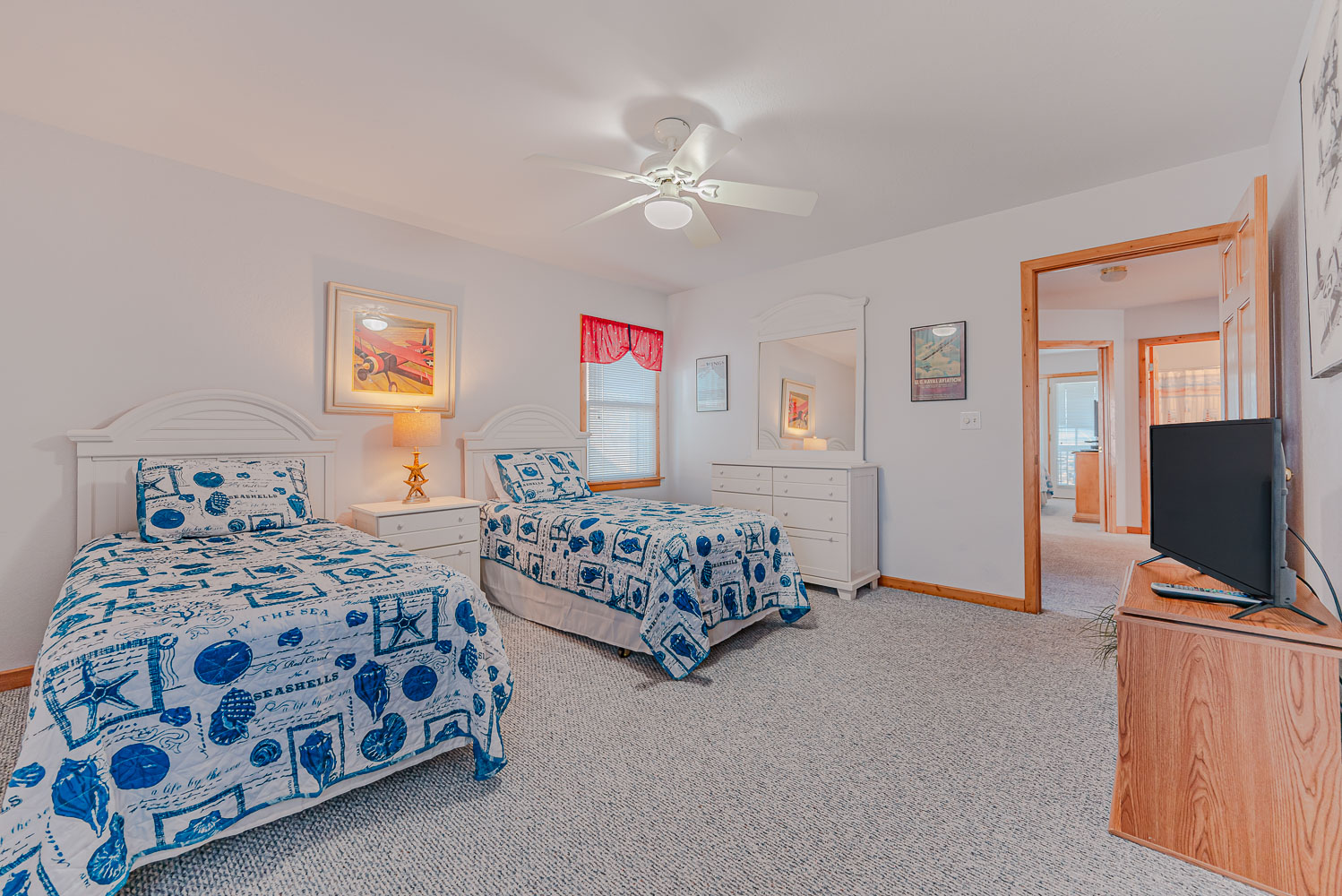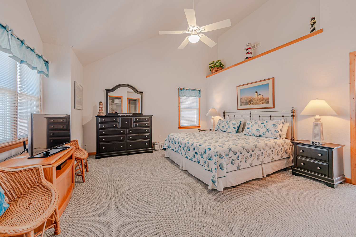 Mid Level: 4 Bedrooms (1 w/2 Singles, TV; 1 w/King, TV; 1 w/Queen, TV; 1 w/Queen, Single, TV, Ocean Views), 2 Full Hall Baths, Covered Deck w/Deck Furniture, and Beautiful Ocean Views.