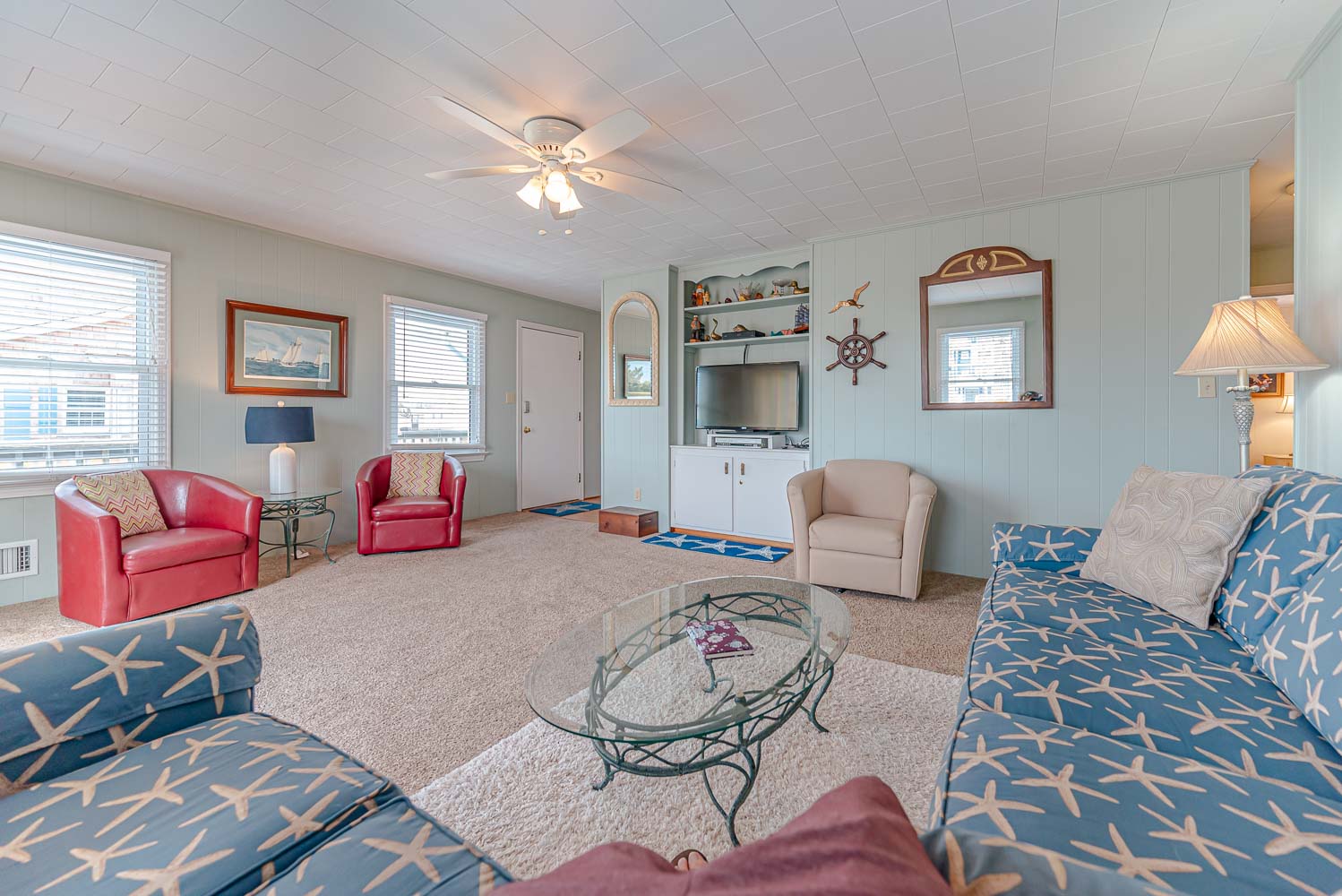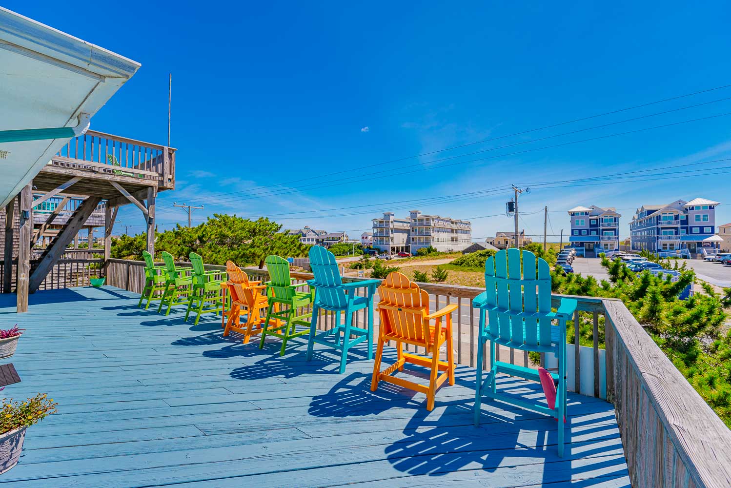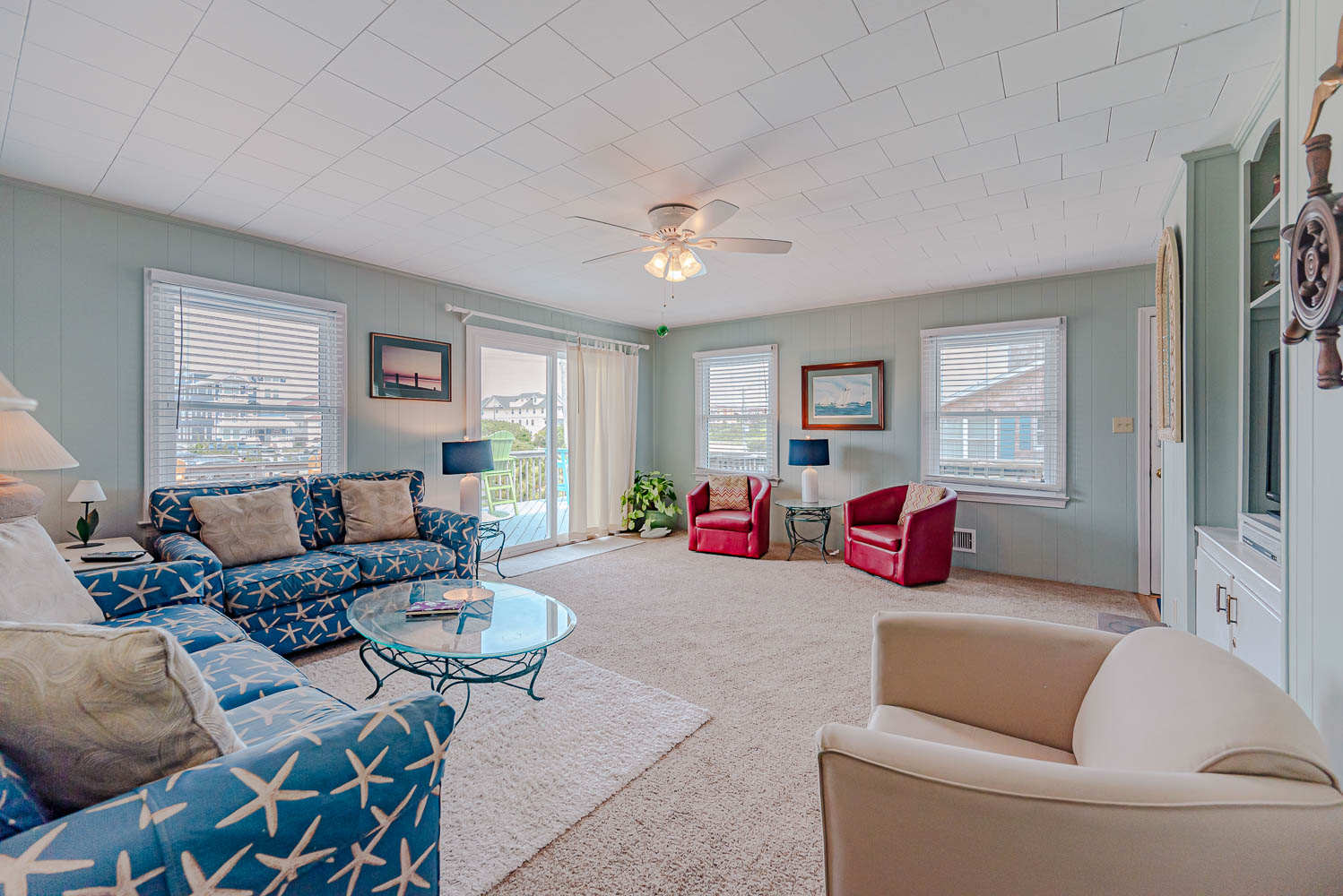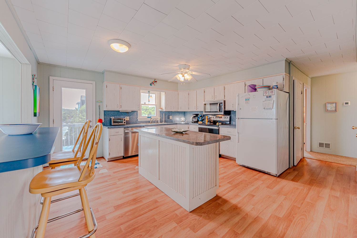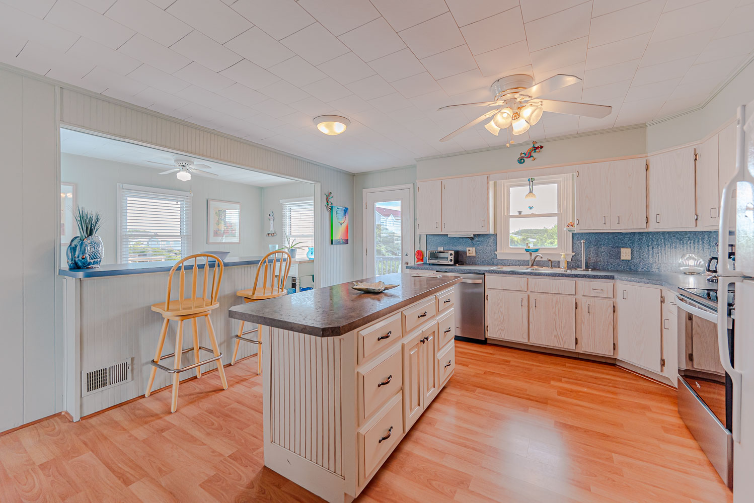Main Level: Living Area, HDTV, Ocean Views; Spacious Kitchen w/Breakfast Bar, Dining Area, Ocean Views, 2 Bedrooms (1 w/King; 1 w/Queen), Full Hall Bath w/Tub/Shower, Access to Wrap-Around Deck (1,200 Sq. Ft of Deck), and Steps to Crow's Nest w/Beautiful Views of the Ocean and Wright Brothers Memorial.