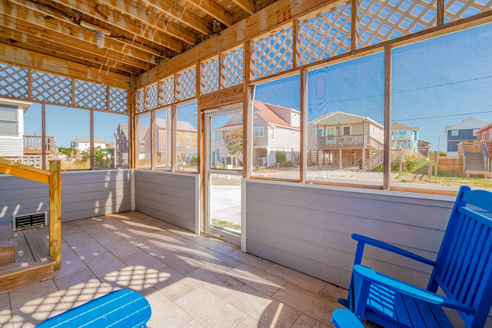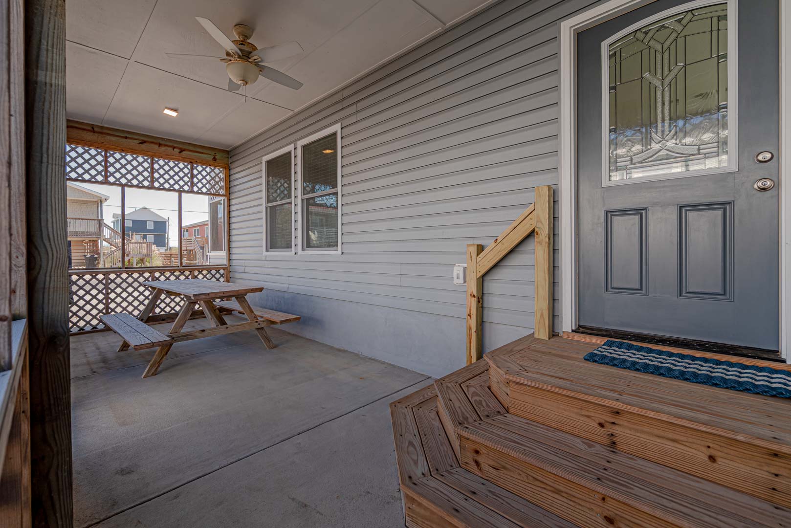 Ground Level: Parking for 3 Vehicles, Covered Entry, 2 Screen Porches (1 w/Picnic Table); Living Area, TV, Fully Equipped Kitchen, and Full Bath.