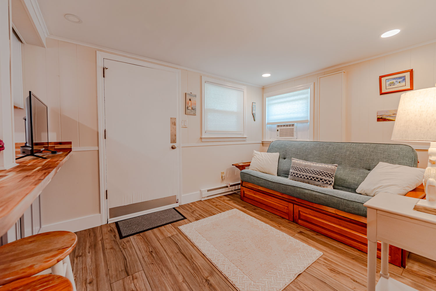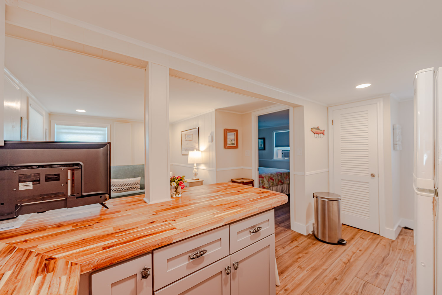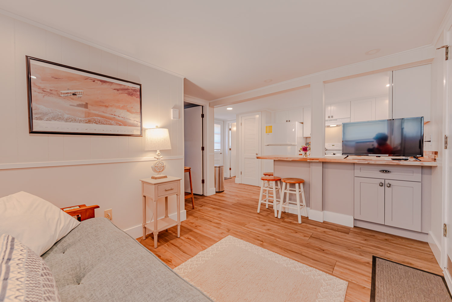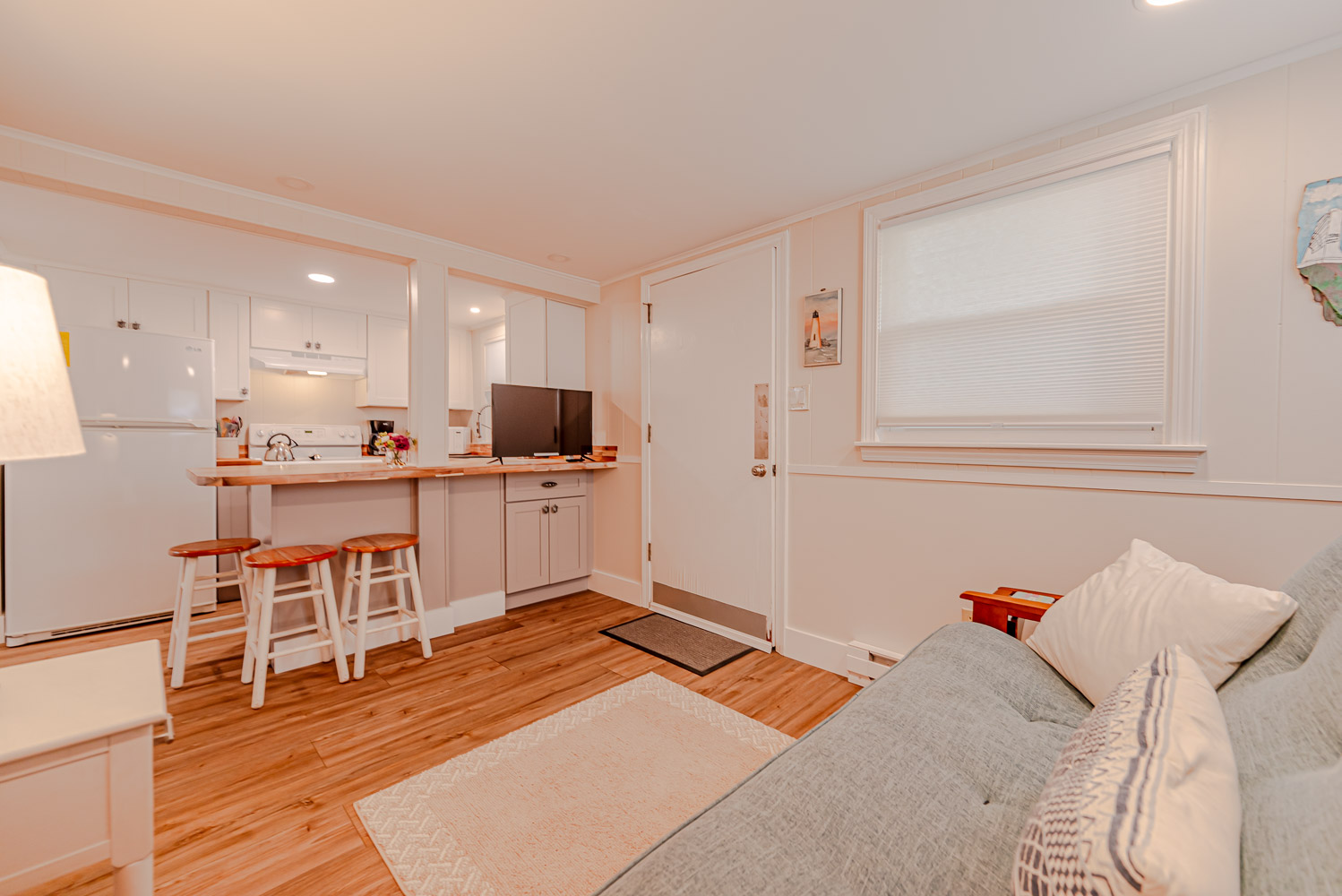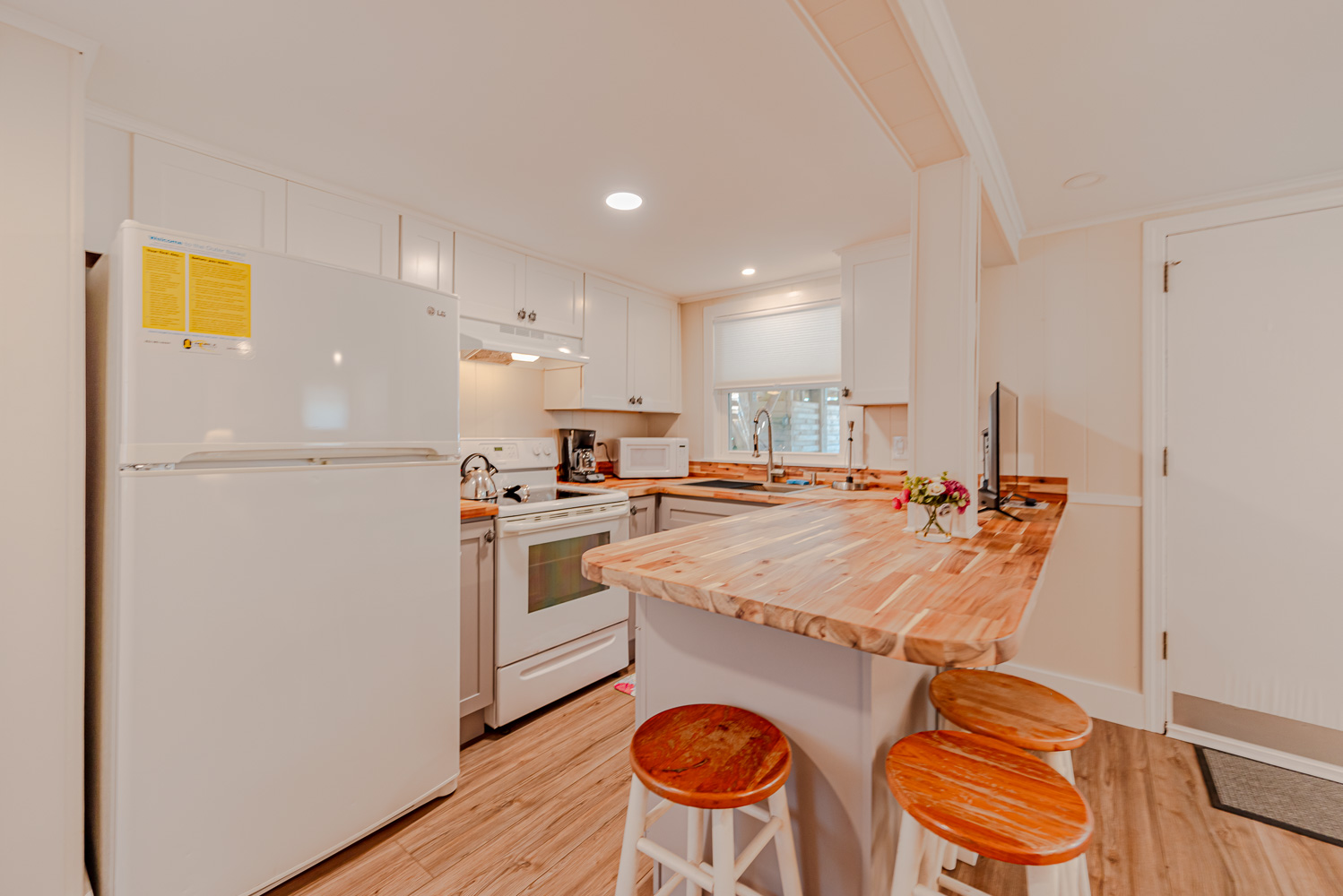 Ground Level: Parking for 3 Cars, Steps to Main Level Entry, Separate Outside Entrance to Living Area w/TV, Fully Equipped Kitchen Area w/Seating for Four (4), Window A/C, Bedroom w/Queen w/TV, Window A/C, Full Bath w/Shower, Laundry Area, Enclosed Outside Shower, Picnic Table, Grilling Area w/Park Grill.