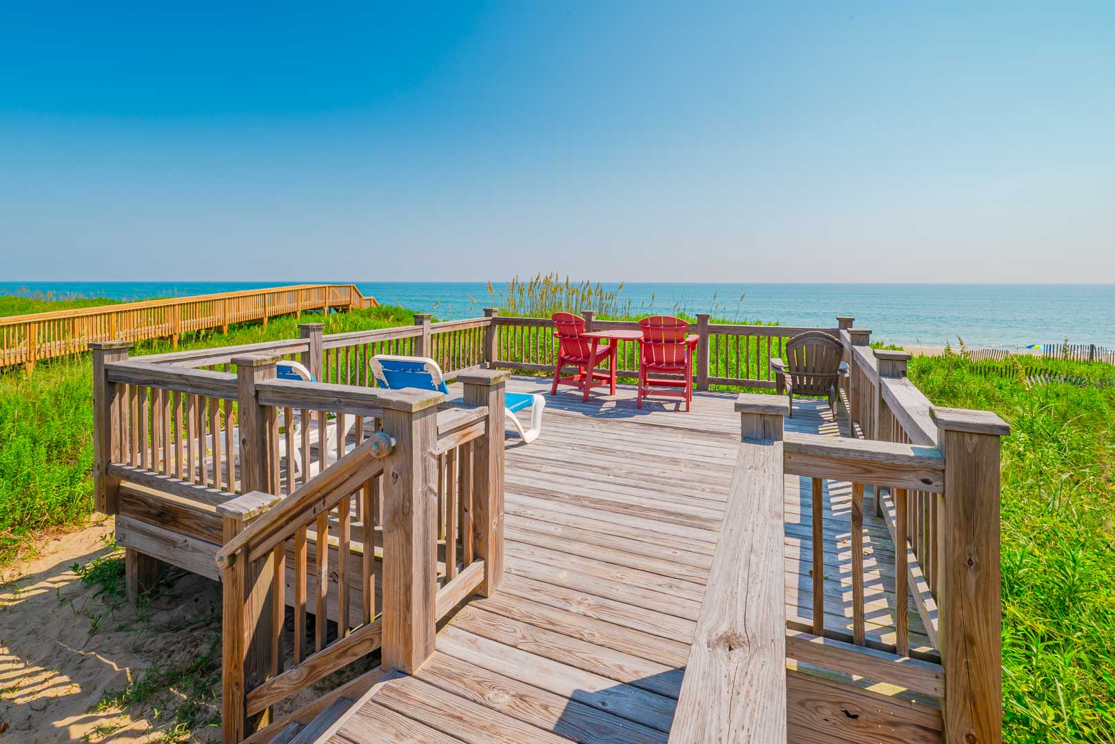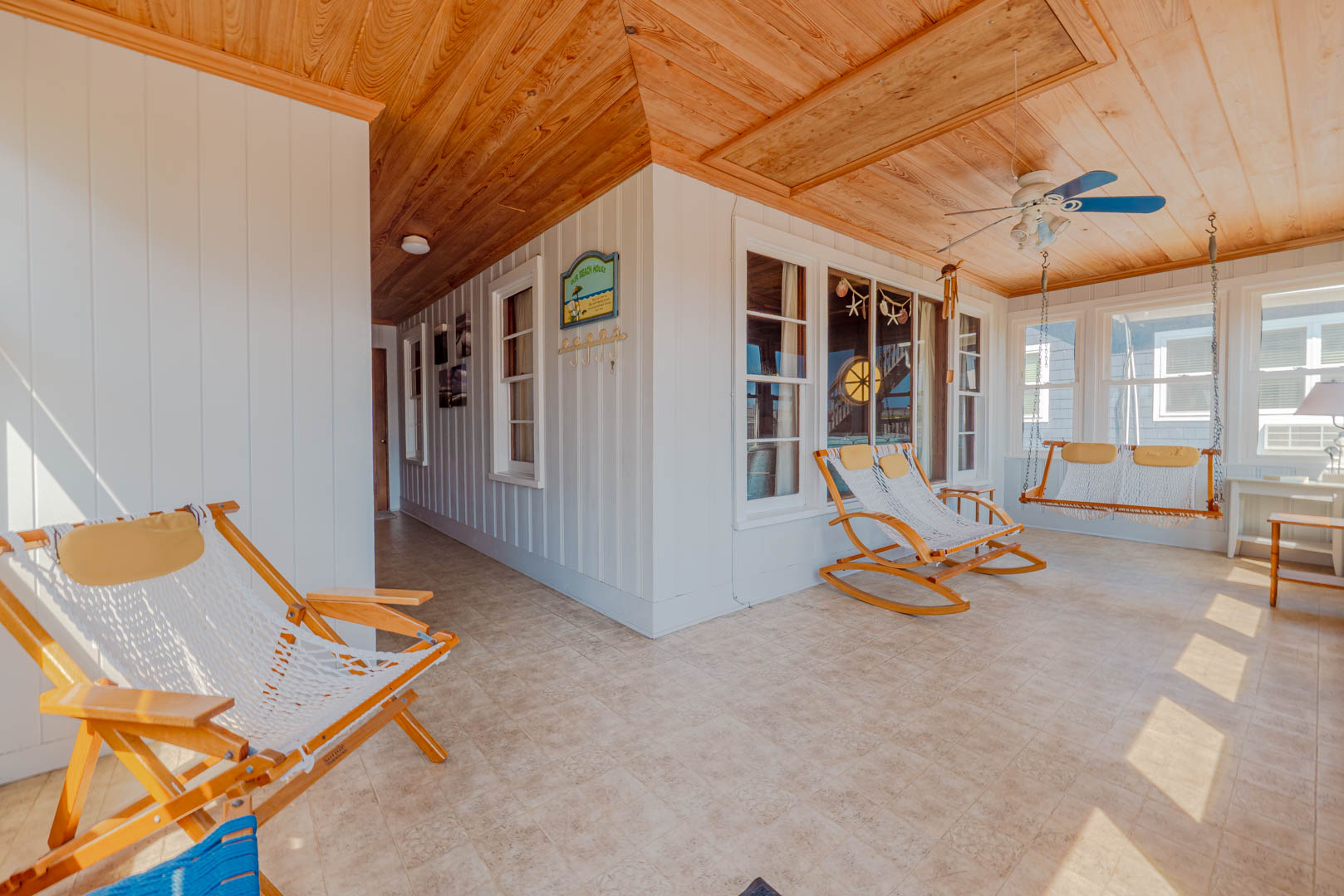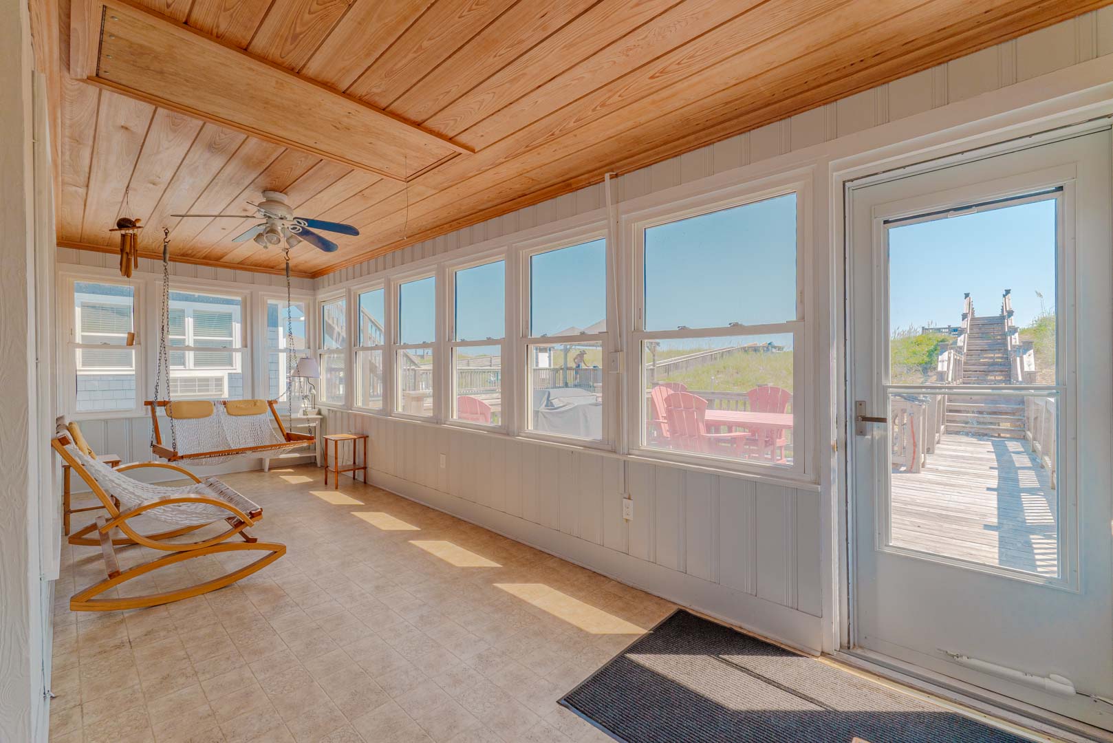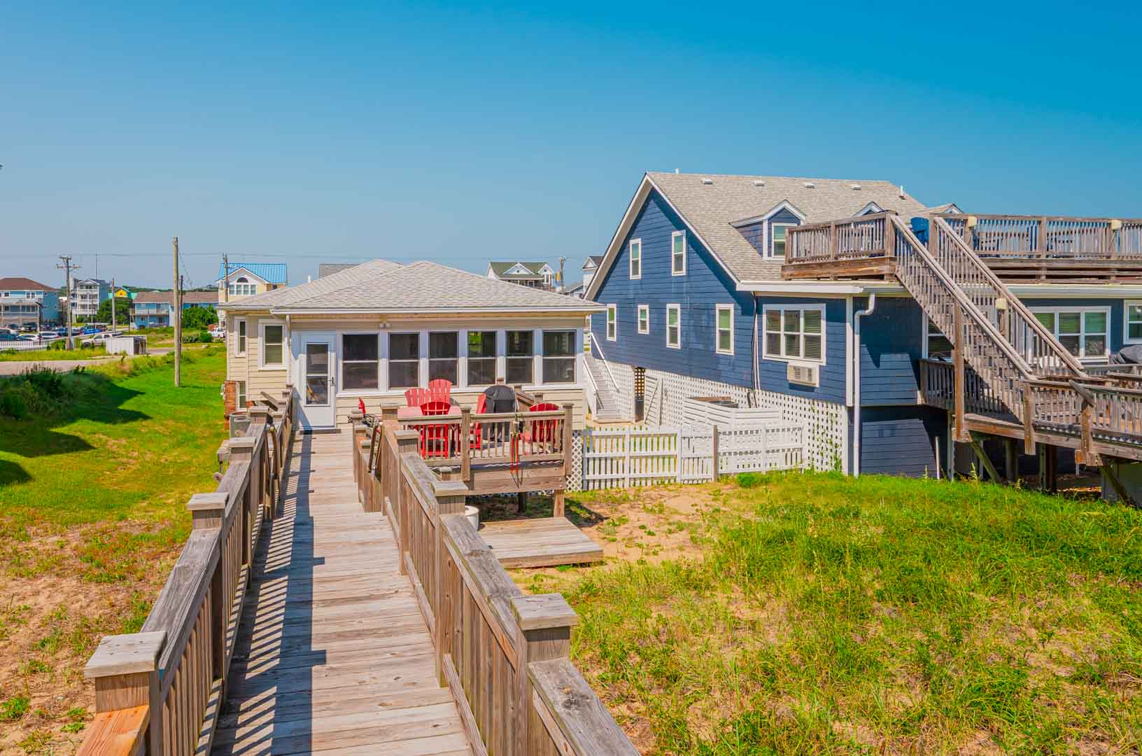 Main Level: Living/Kitchen Area, 3 Bedrooms (Private Suite w/King, Full Bath; 1 w/Queen; 1 w/Double), Full Hall Bath, Laundry Area, Sun Porch, & Access to Sun Deck w/Private Walkway to Dune Deck and Sand Path To Beach.