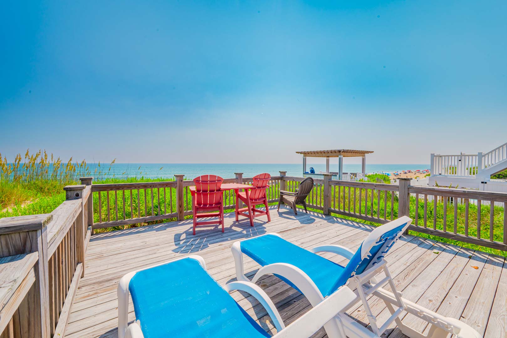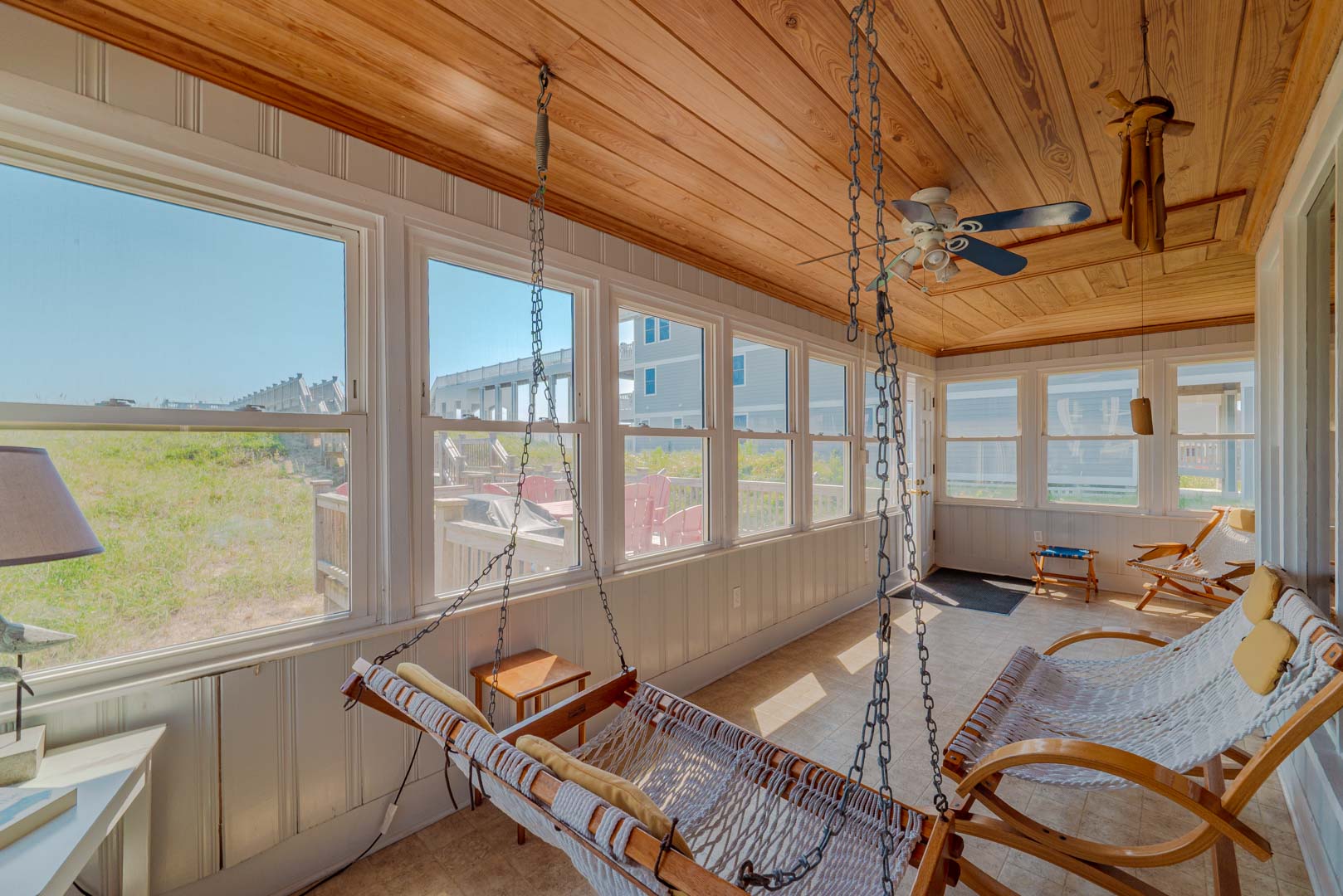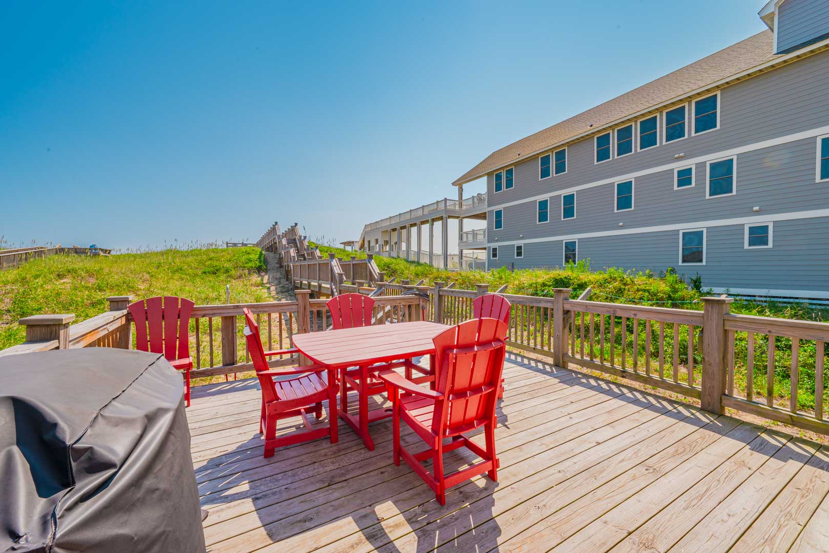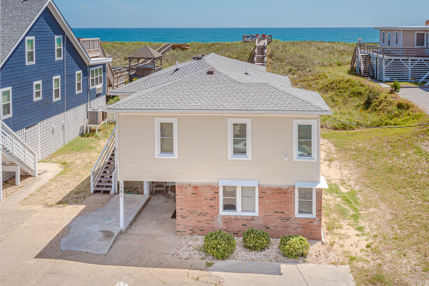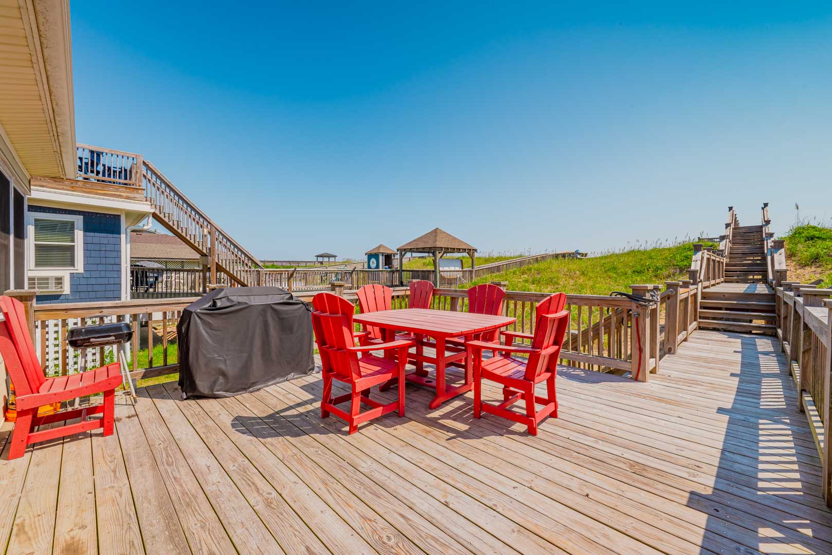 Main Level: Living/Kitchen Area, 3 Bedrooms (Private Suite w/King, Full Bath; 1 w/Queen; 1 w/Double), Full Hall Bath, Laundry Area, Sun Porch, & Access to Sun Deck w/Private Walkway to Dune Deck and Sand Path To Beach.