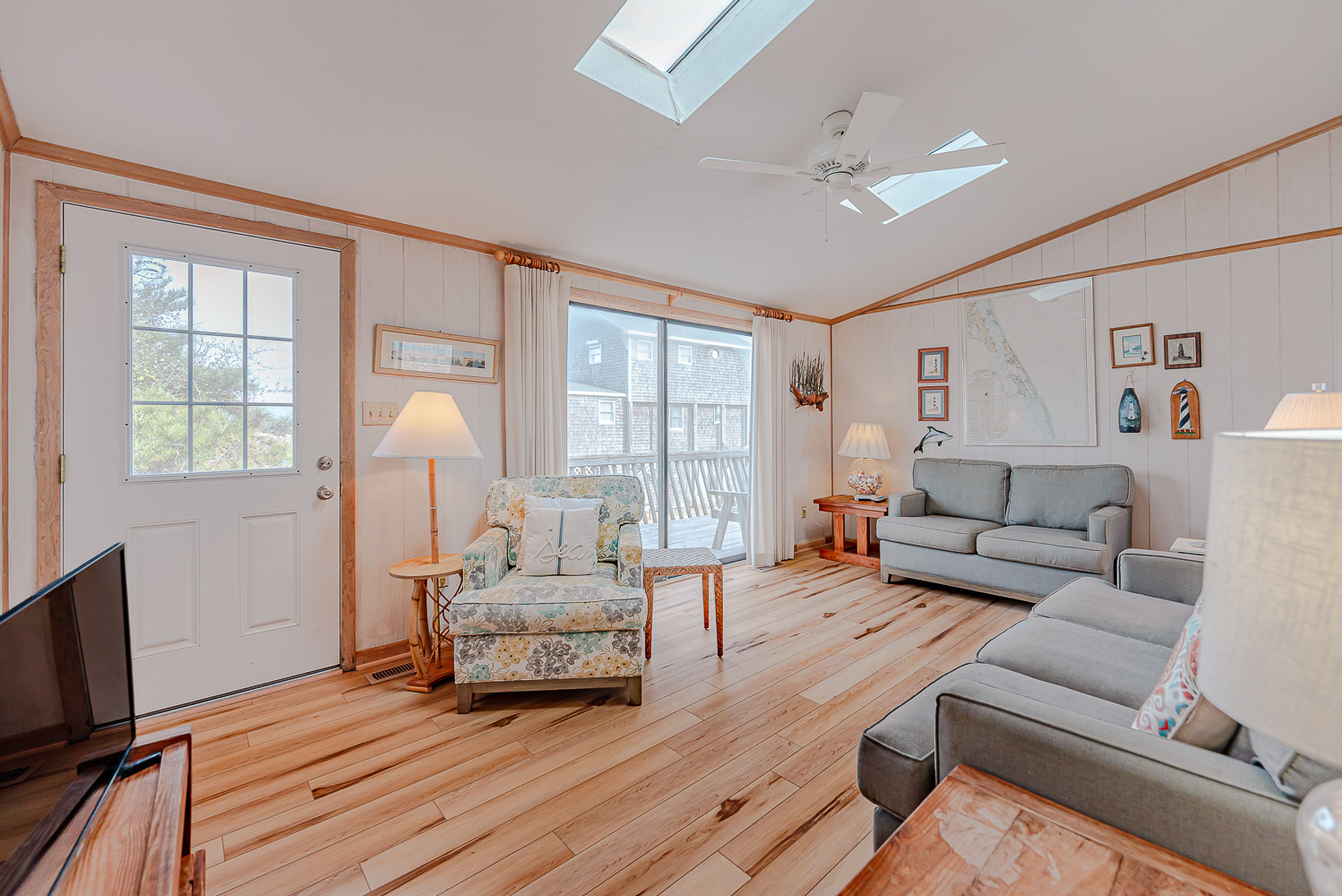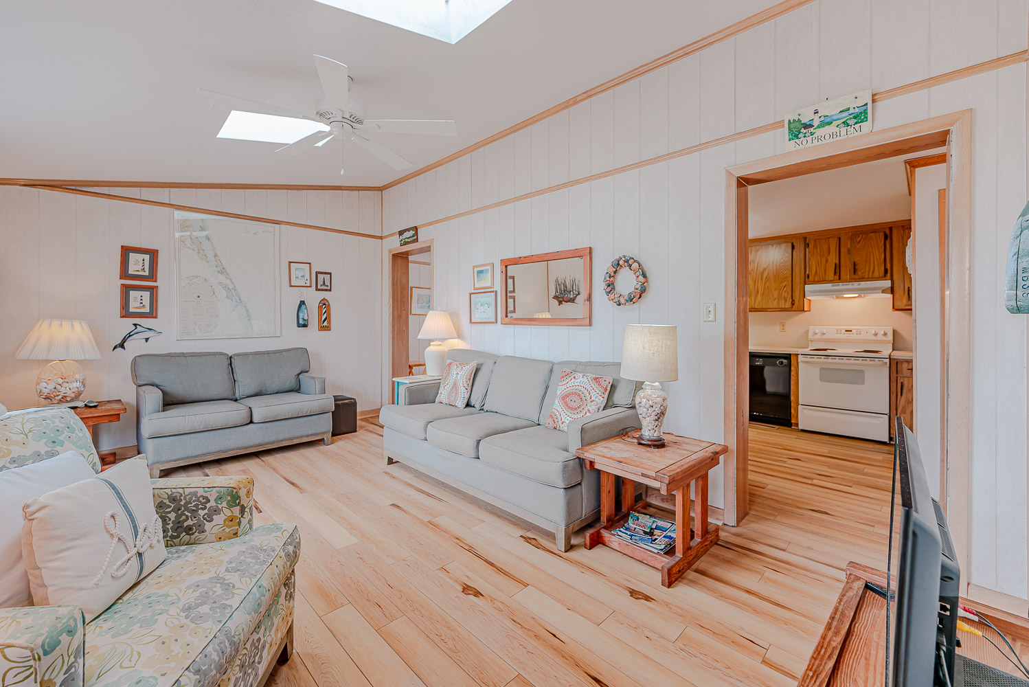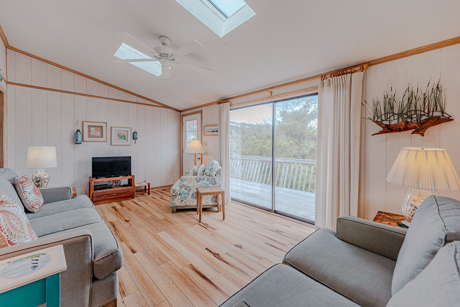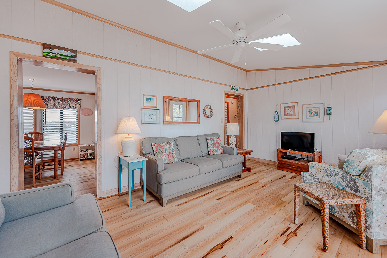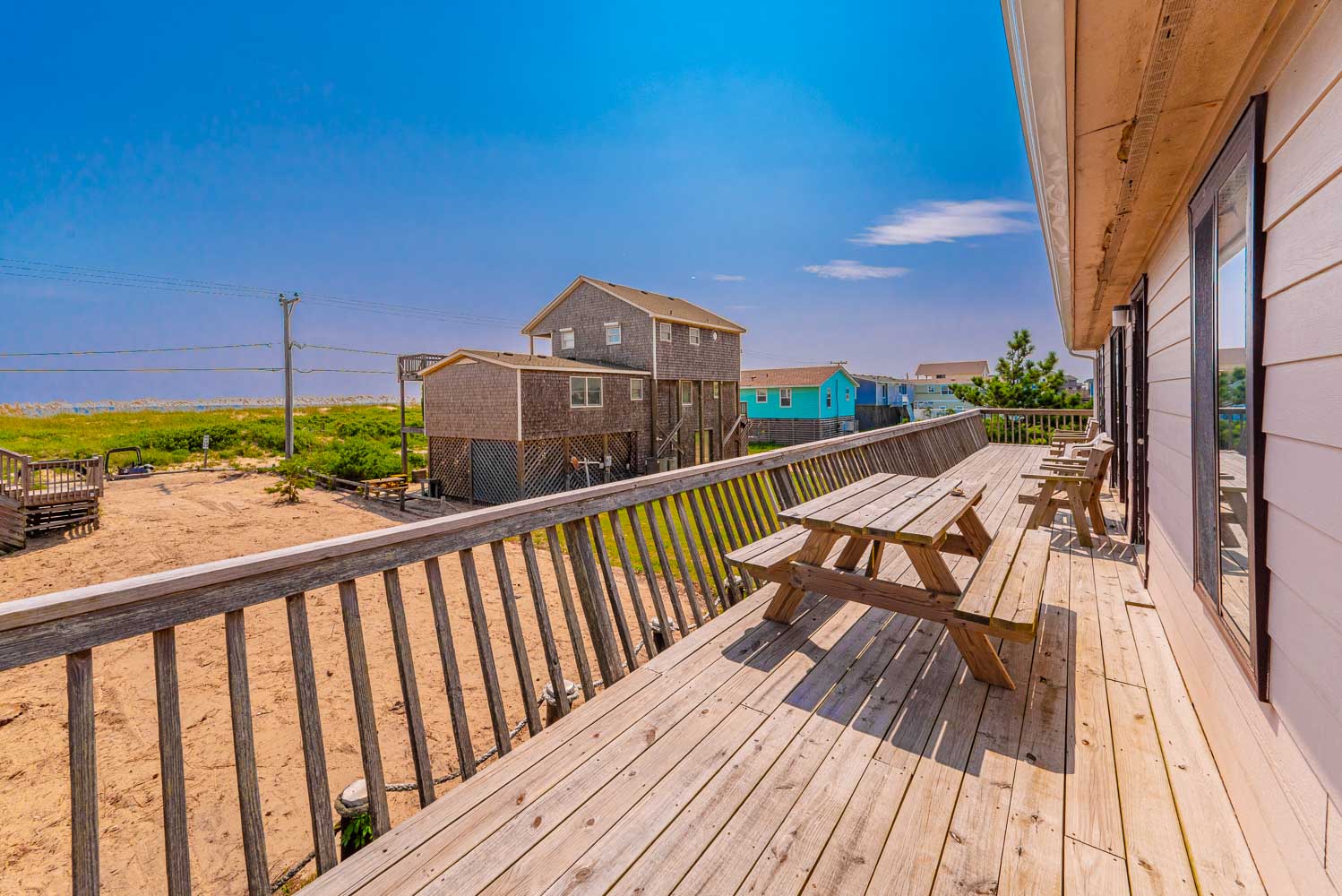 Top Level: Living/Dining/Kitchen Area, 3 Bedrooms (1 w/King, 1 w/Queen, 1 w/Bunk Beds), 2 Full Baths, Sun Deck w/Furniture & Great Ocean Views.