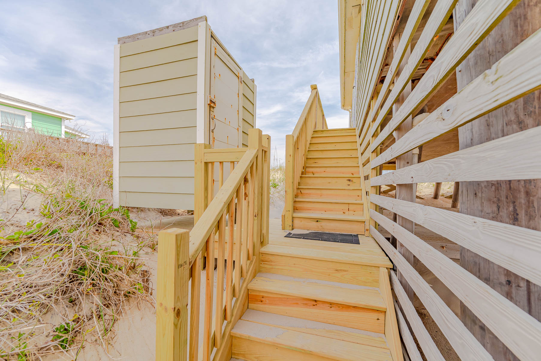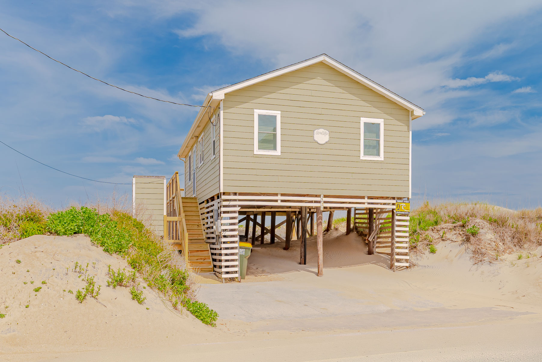 Ground Level: Parking for 2 Cars, Enclosed Outside Shower, and Sand Path to Beach.