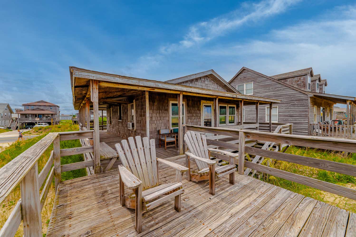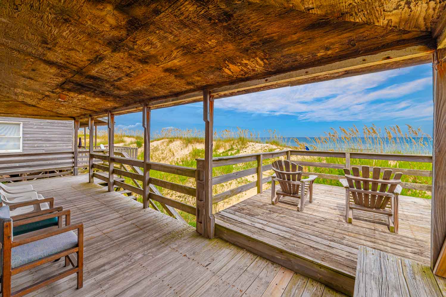 Main Level: Living/Dining/Kitchen, TV, 2 Bedrooms w/Queens, Full Bath, Ocean Views, 2 Covered Porches, and Sun Deck w/Deck Furniture.
