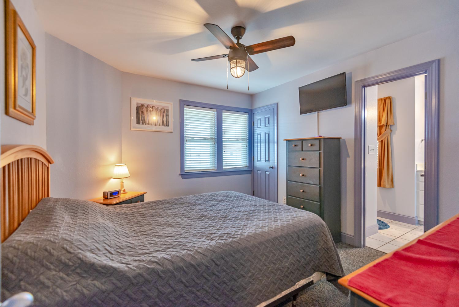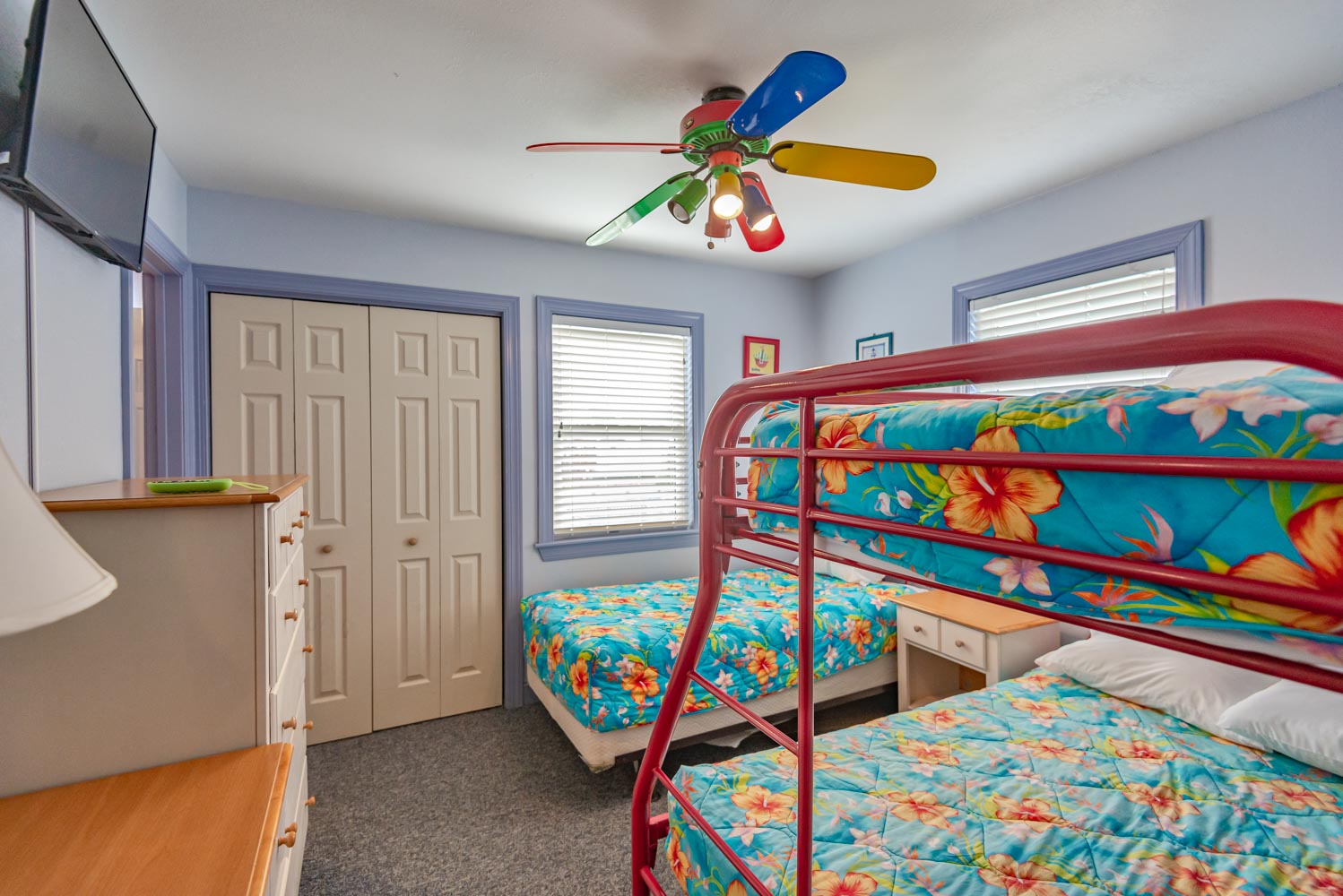 Mid Level: Foyer at Main Entry, Private Suite w/Queen, Full Bath; 1 w/Queen, 1 w/Single, Duo Bunk), Shared Full Bath w/Shower, and Laundry Area.