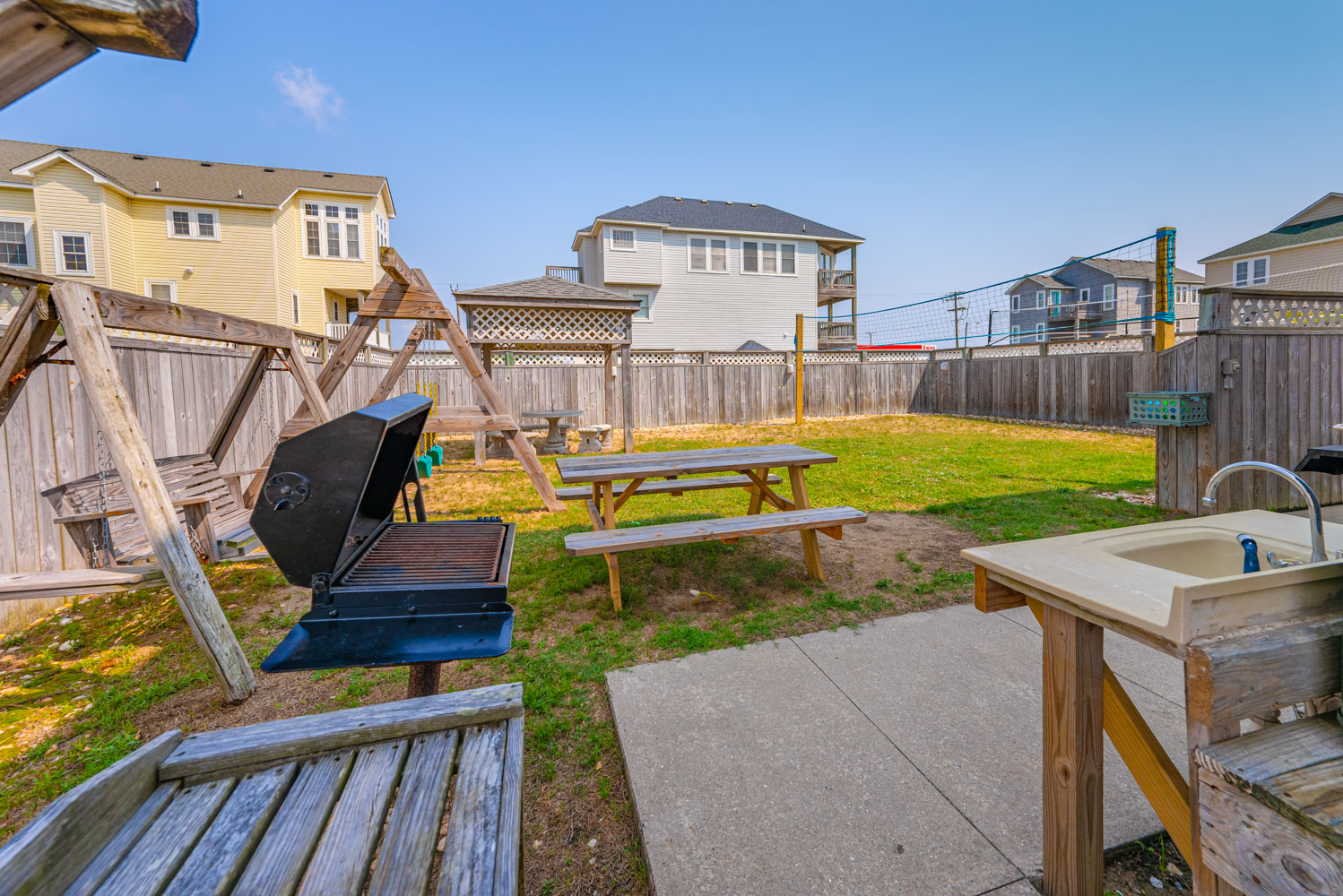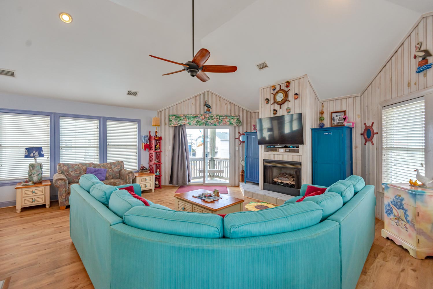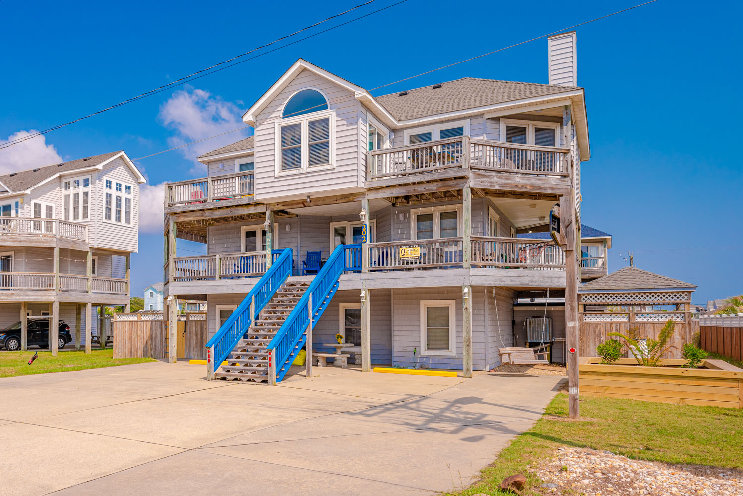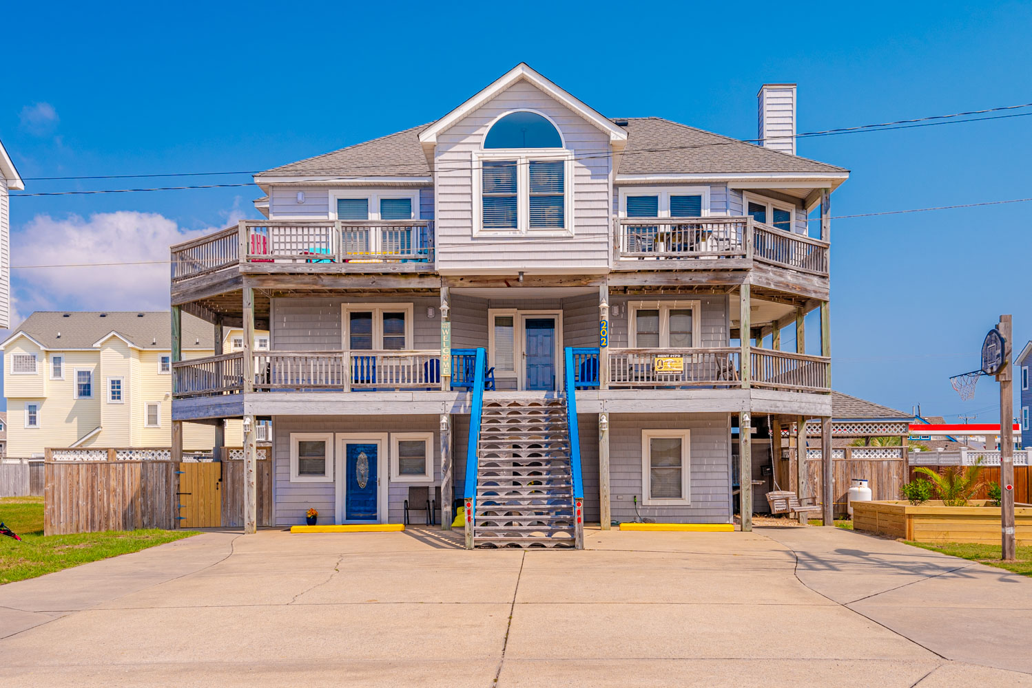 Features include: C/AC and Heat, Washer/Dryer, Dishwasher, 2 Refrigerator's 2 Microwave's, TVs, Wireless Internet, Ceiling Fans, Gas Fireplace w/Easy to Operate Switch, Deck Furniture, Enclosed Outside Shower w/Dressing Area, Gas Grill, Charcoal Grill, Basketball Goal. Located 1 Lot from Beach Road, Next to #449. Two Mature Dogs Allowed w/Fees. This is a Non-Smoking Unit.
