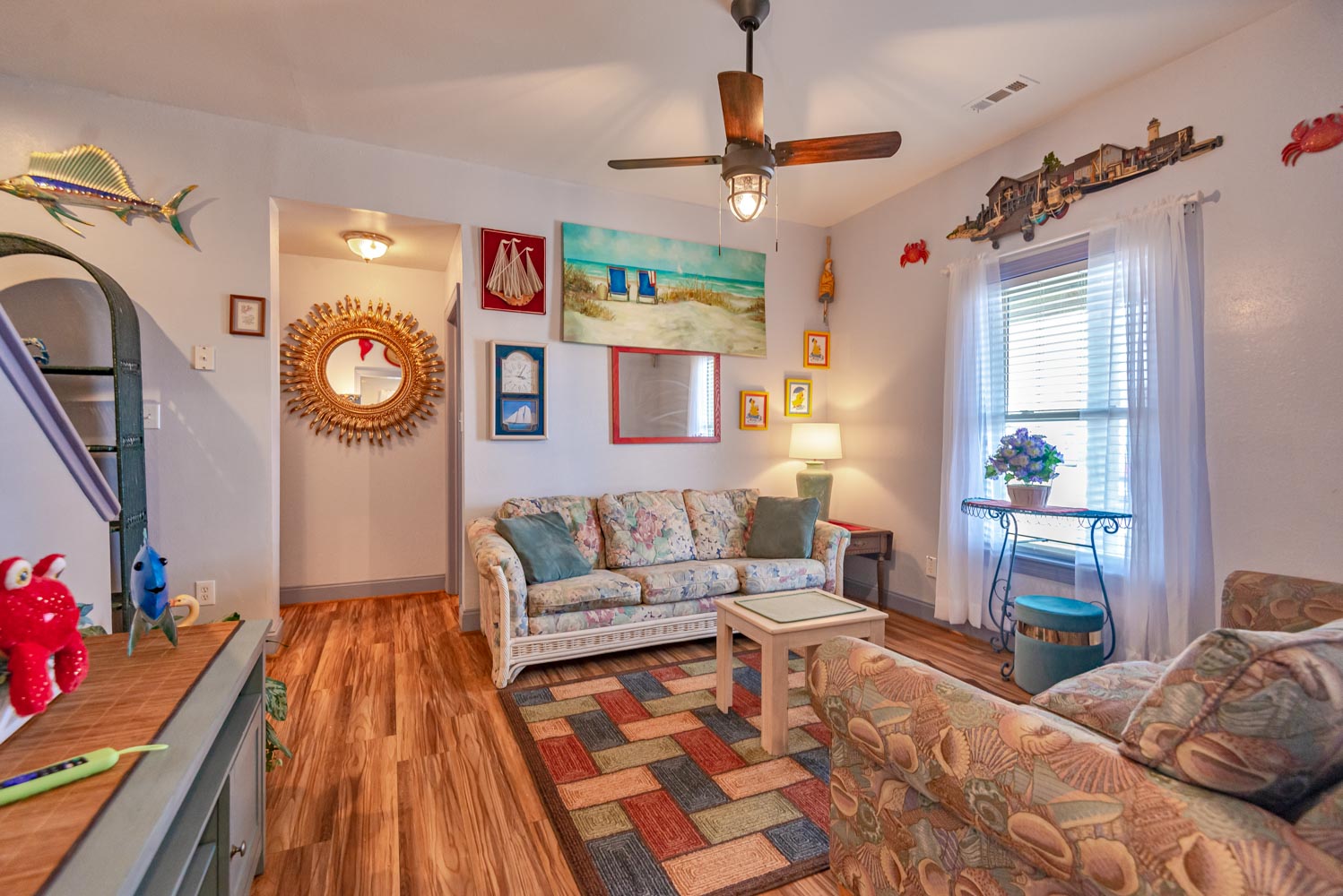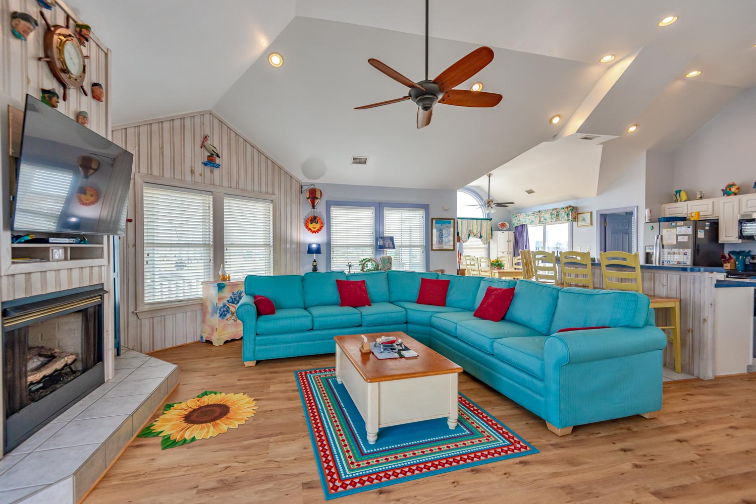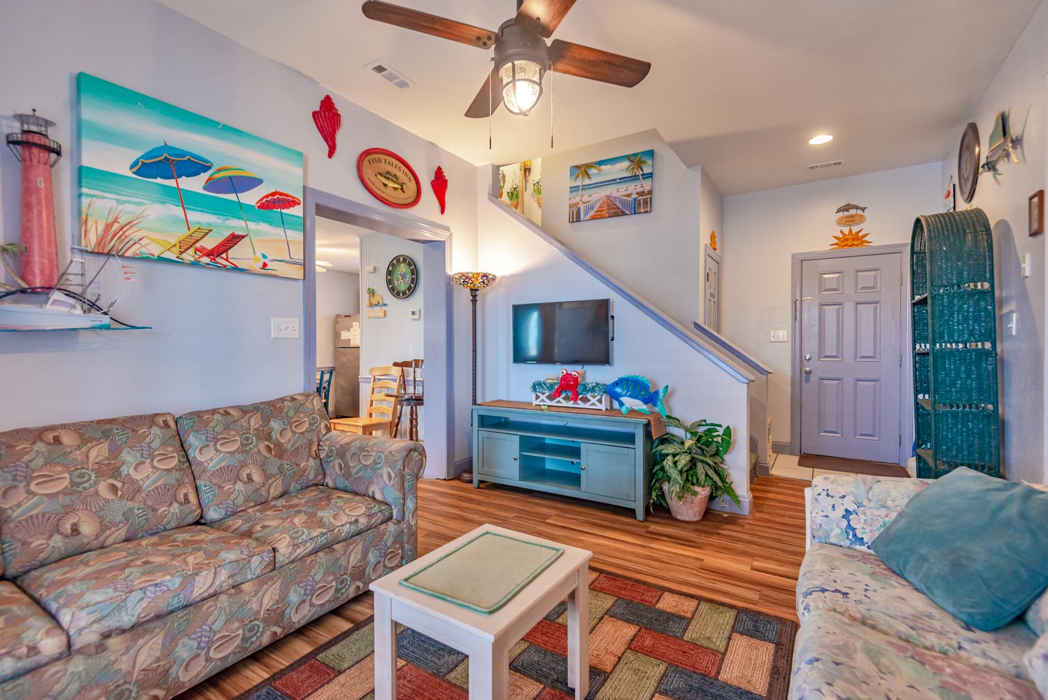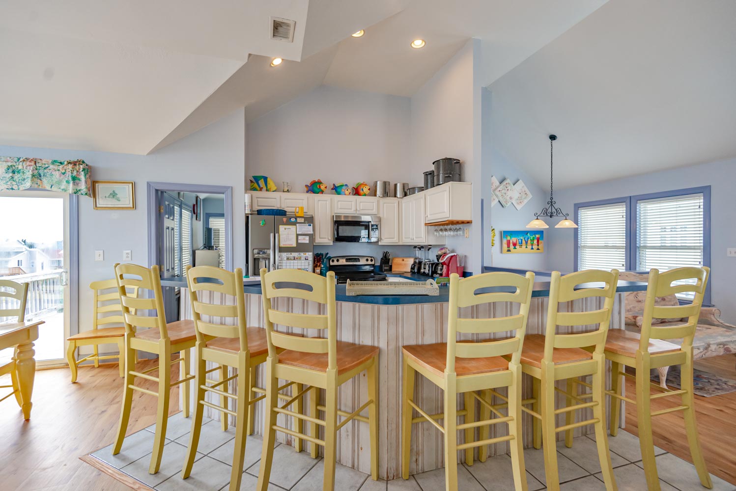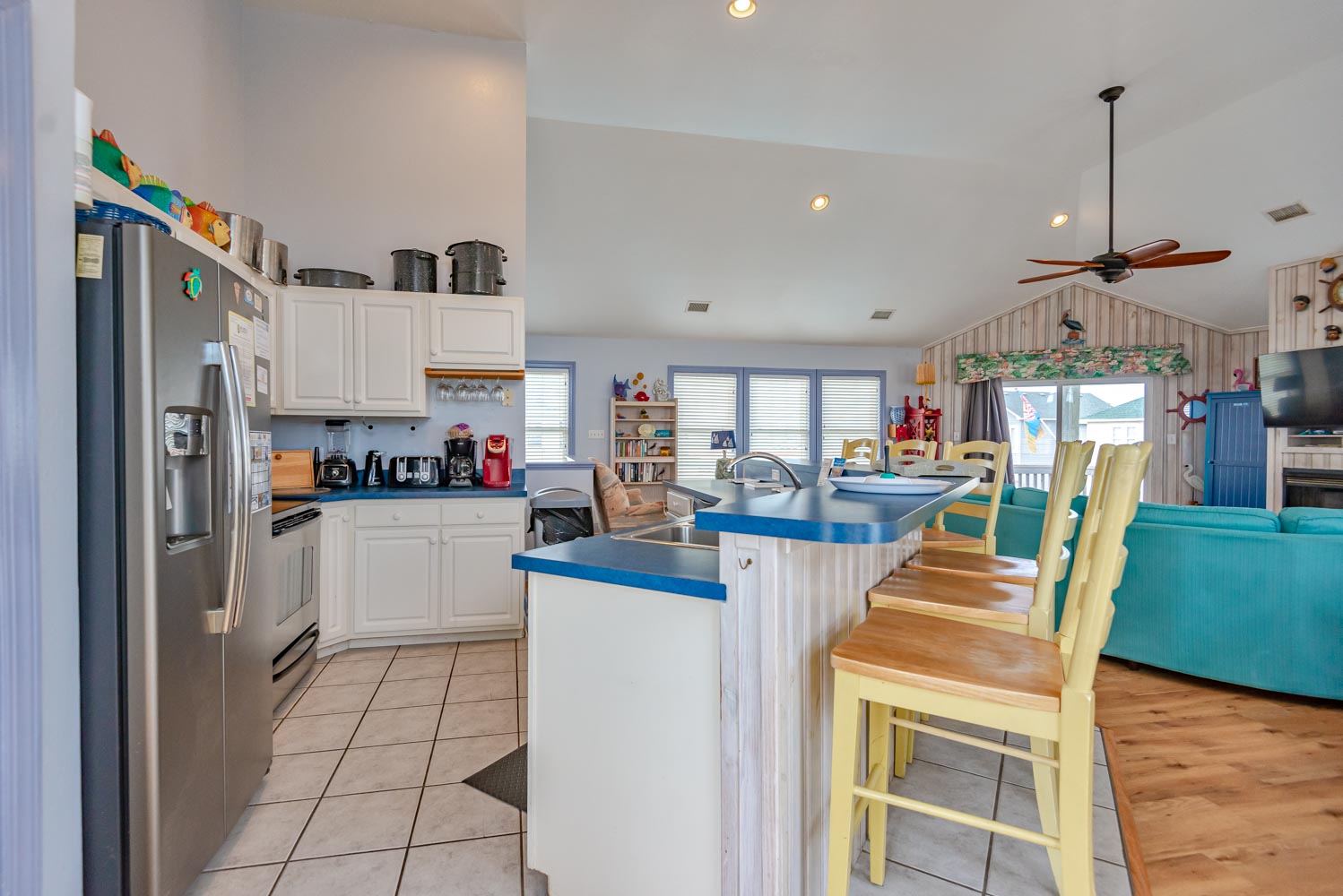 Features include: C/AC and Heat, Washer/Dryer, Dishwasher, 2 Refrigerator's 2 Microwave's, TVs, Wireless Internet, Ceiling Fans, Gas Fireplace w/Easy to Operate Switch, Deck Furniture, Enclosed Outside Shower w/Dressing Area, Gas Grill, Charcoal Grill, Basketball Goal. Located 1 Lot from Beach Road, Next to #449. Two Mature Dogs Allowed w/Fees. This is a Non-Smoking Unit.