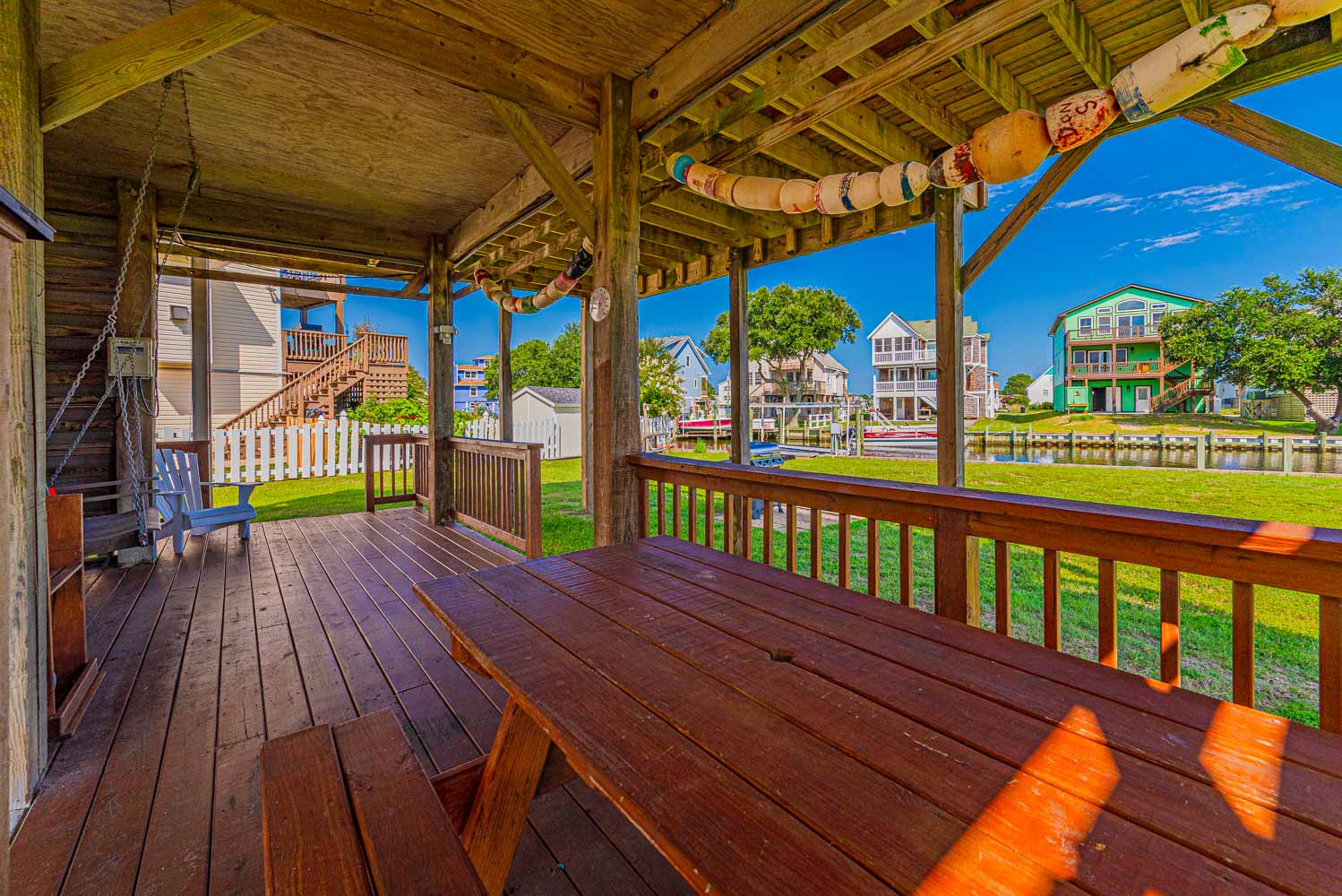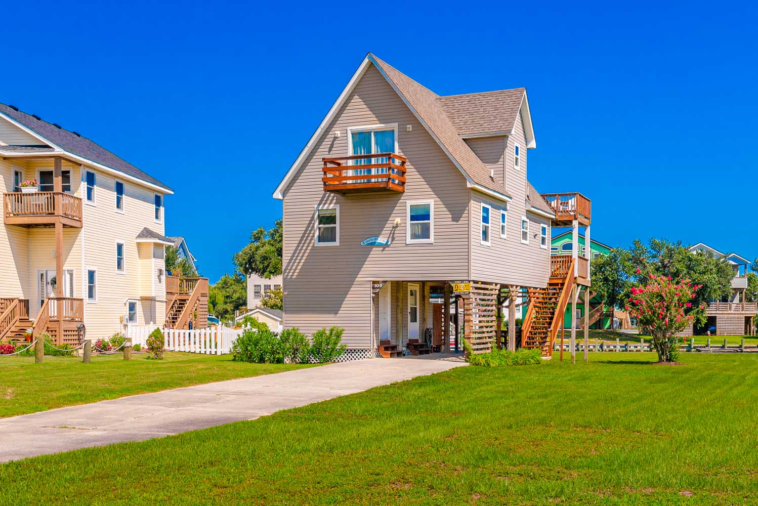 Ground Level: Parking for 4 Vehicles, Steps to Entry, Laundry Room, Covered Deck, Enclosed Outside Shower, Gas Grill, Fish Cleaning Station, & Boat Dock (boat lift is not available).