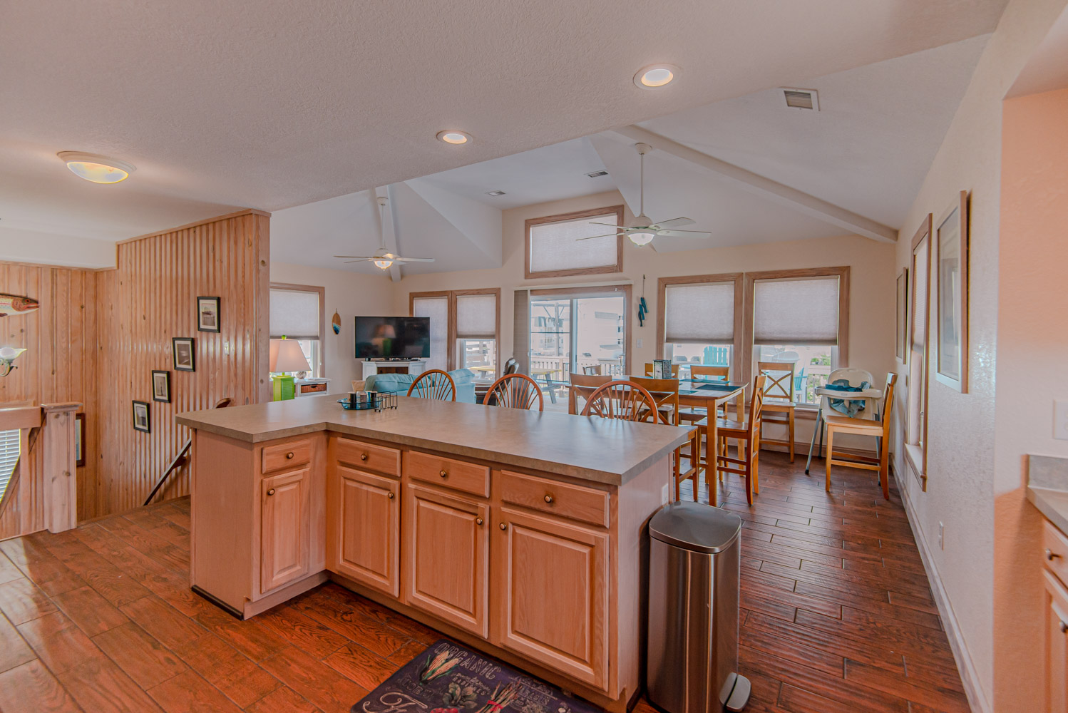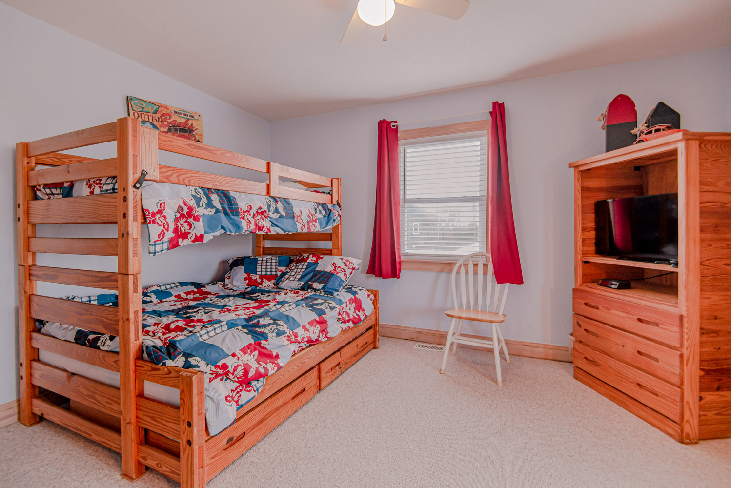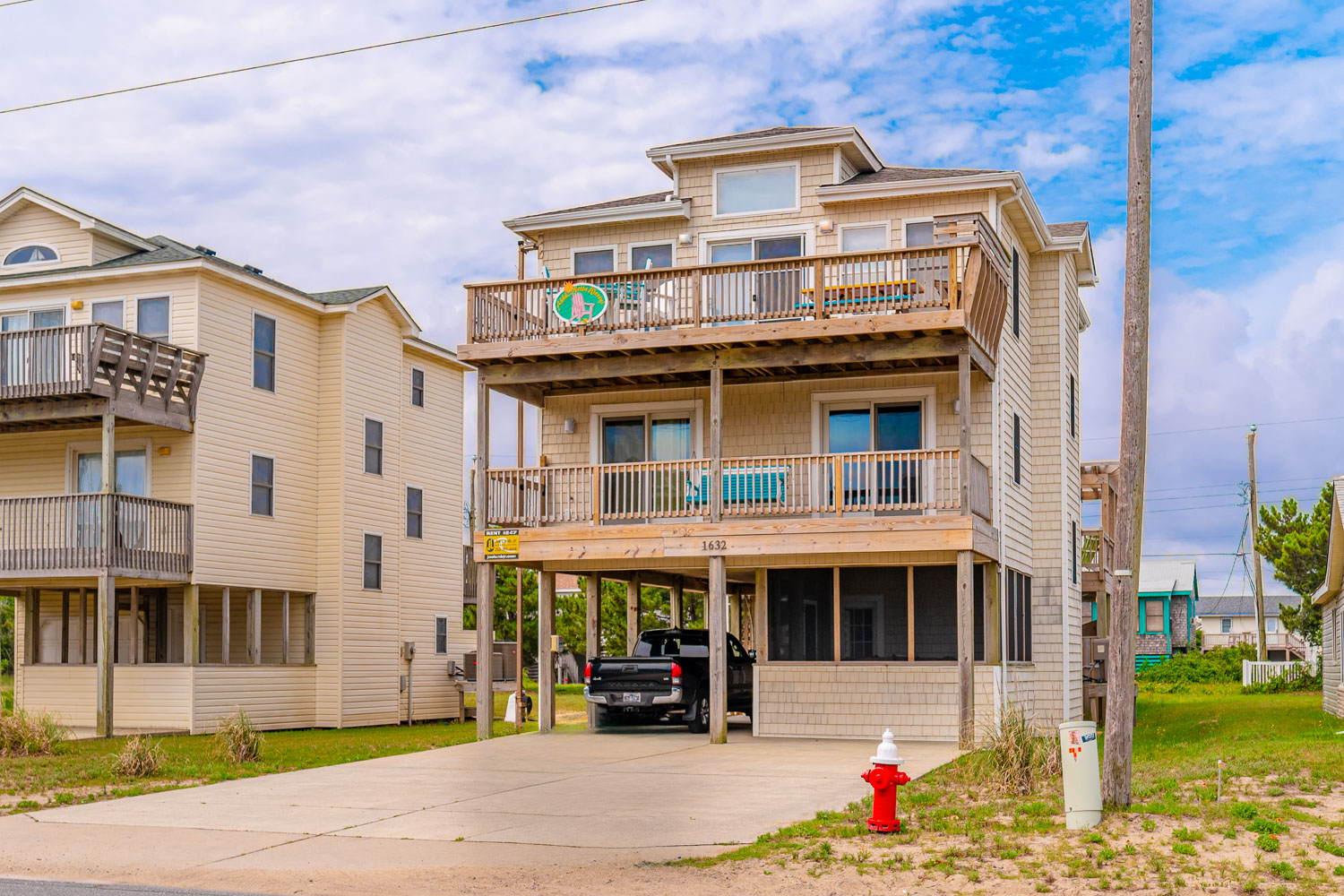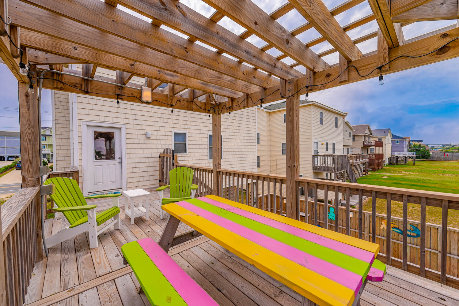 Mid Level: 3 Bedrooms (Private Suite w/Queen, TV, & Full Bath w/Shower, 1 w/Duo Bunk & TV, 1 w/Queen & TV), Full Hall Bath w/Tub/Shower, Oceanside Covered Deck w/Deck Furniture, West Facing Deck w/Pergola & Deck Furniture overlooking pool area, Gate & Steps to Pool Area.