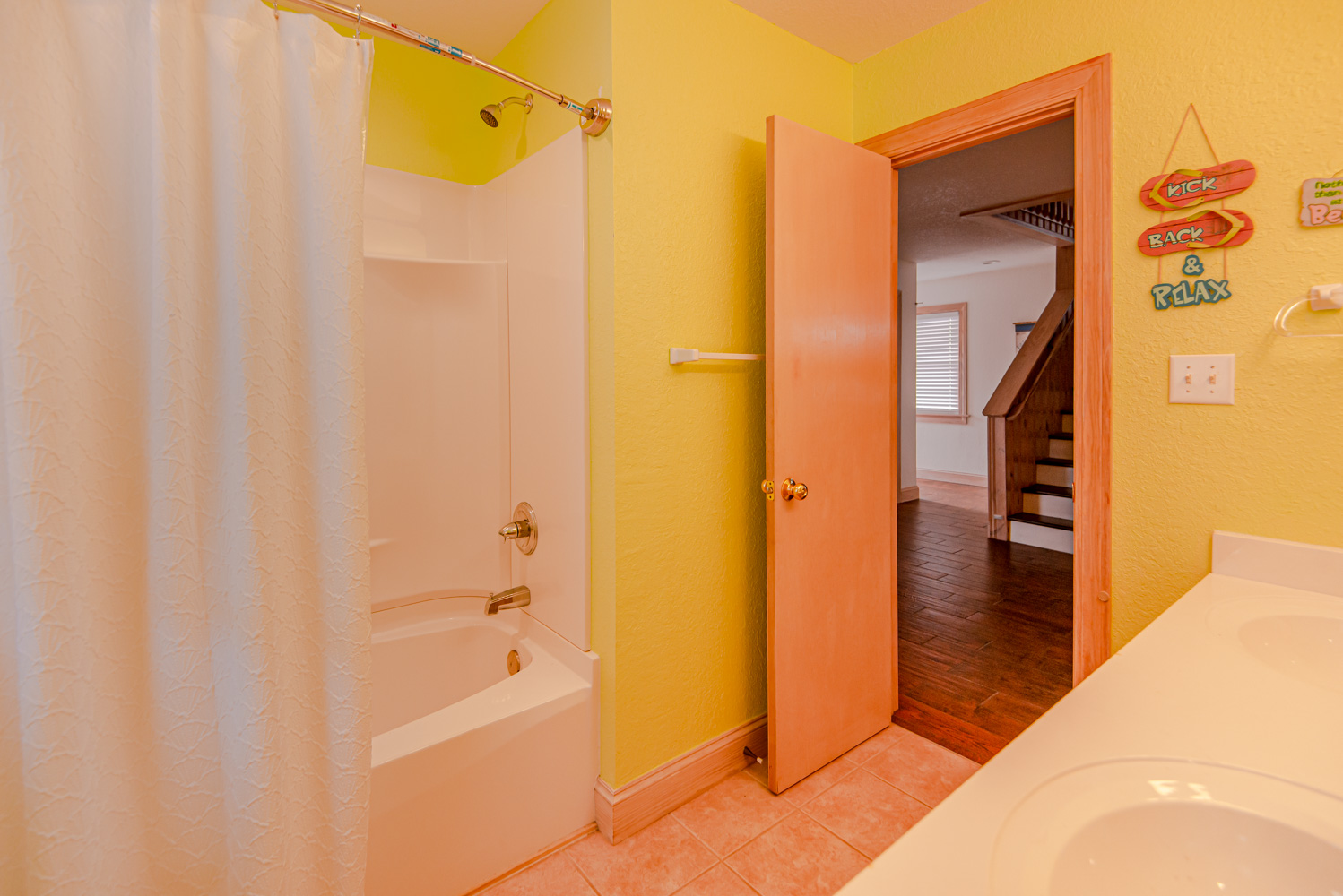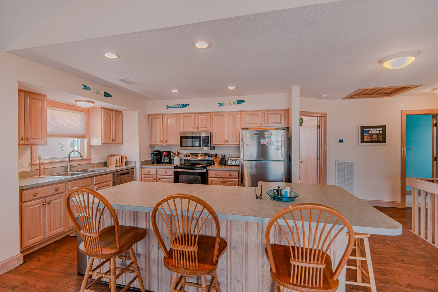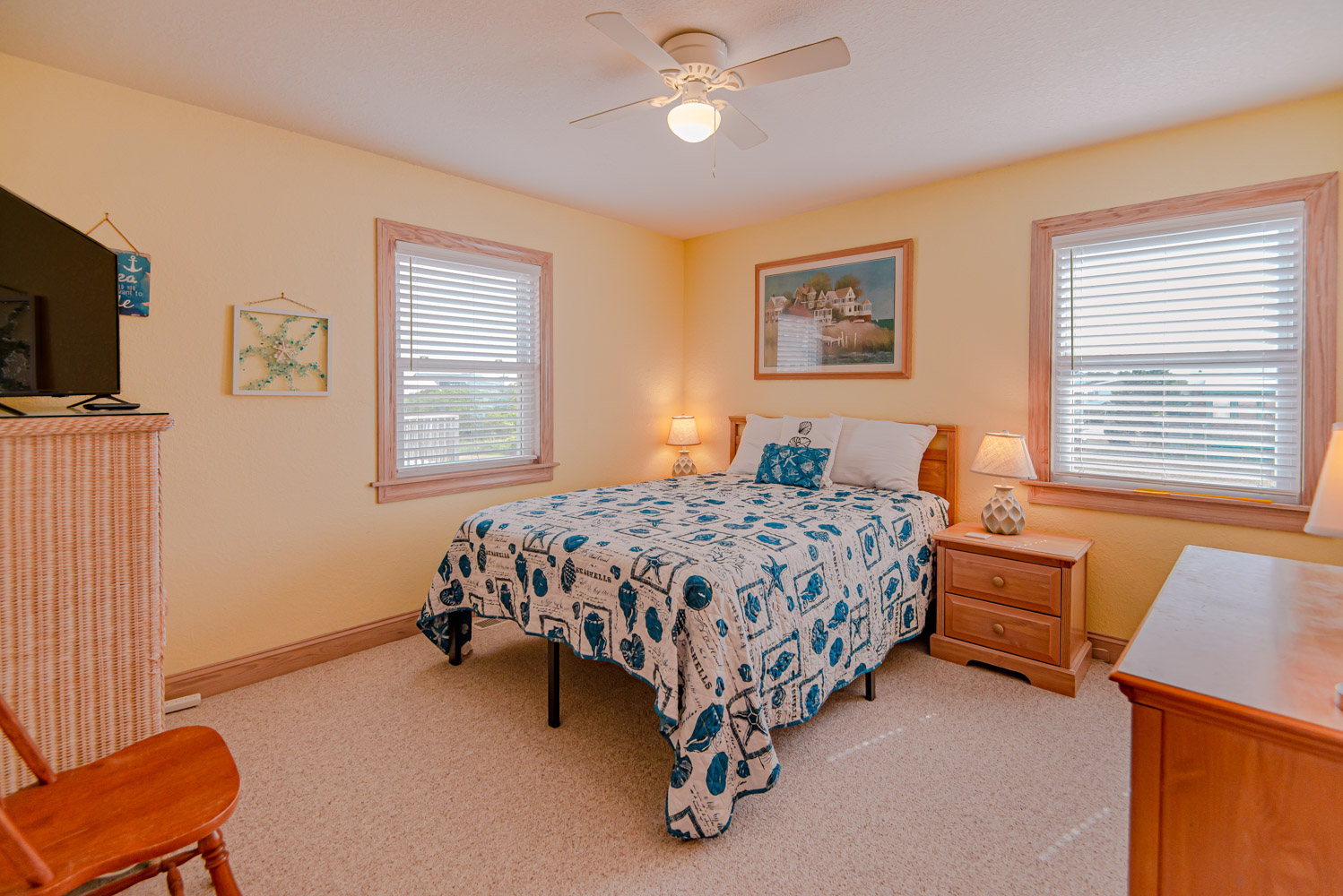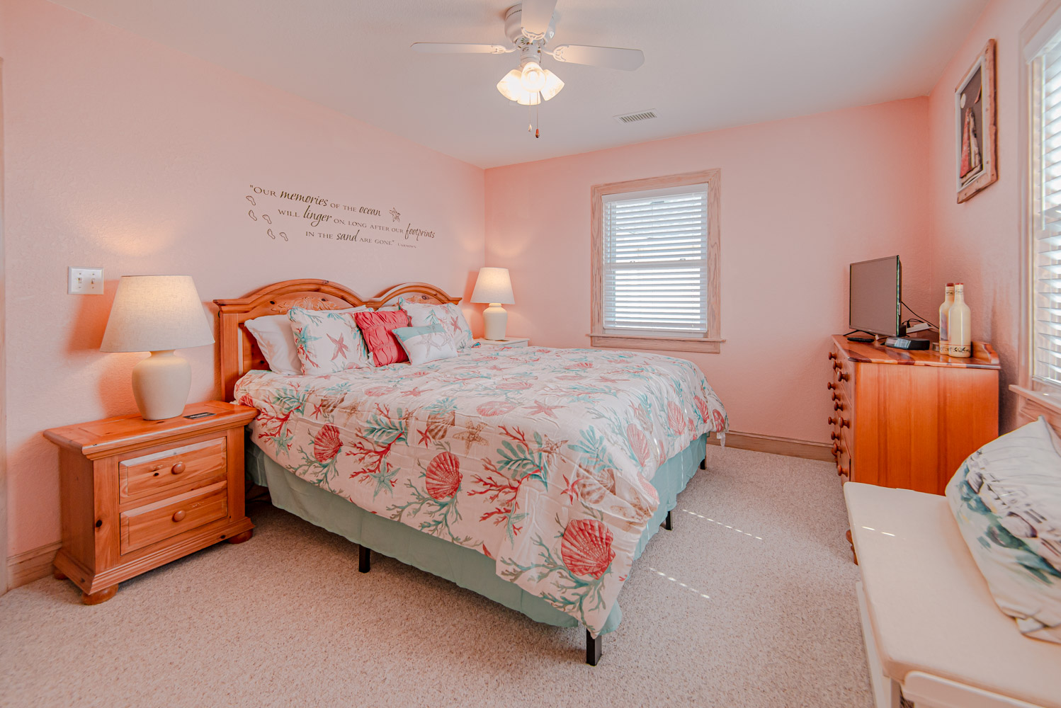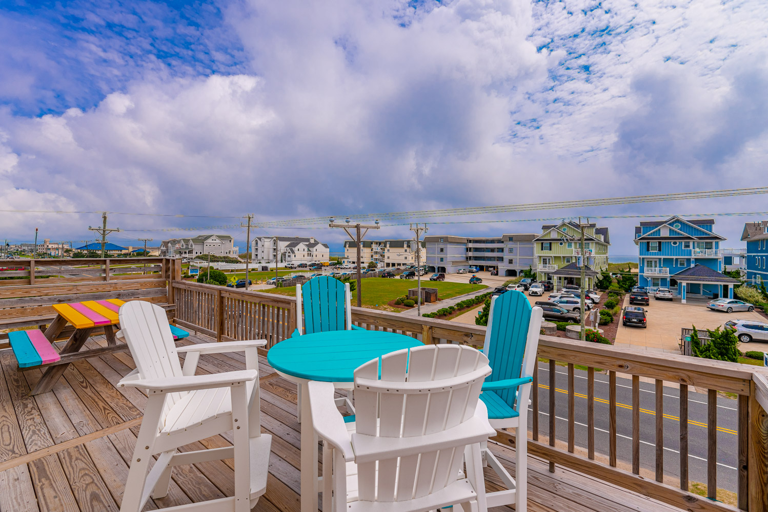 Mid Level: 3 Bedrooms (Private Suite w/Queen, TV, & Full Bath w/Shower, 1 w/Duo Bunk & TV, 1 w/Queen & TV), Full Hall Bath w/Tub/Shower, Oceanside Covered Deck w/Deck Furniture, West Facing Deck w/Pergola & Deck Furniture overlooking pool area, Gate & Steps to Pool Area.