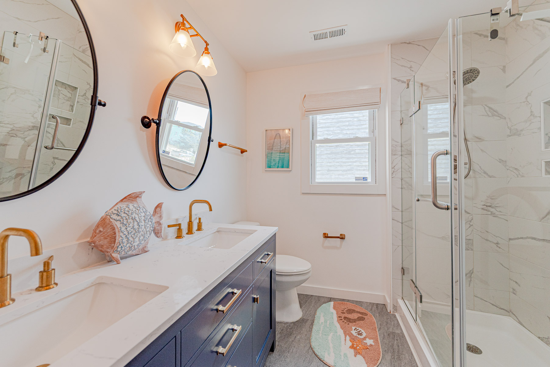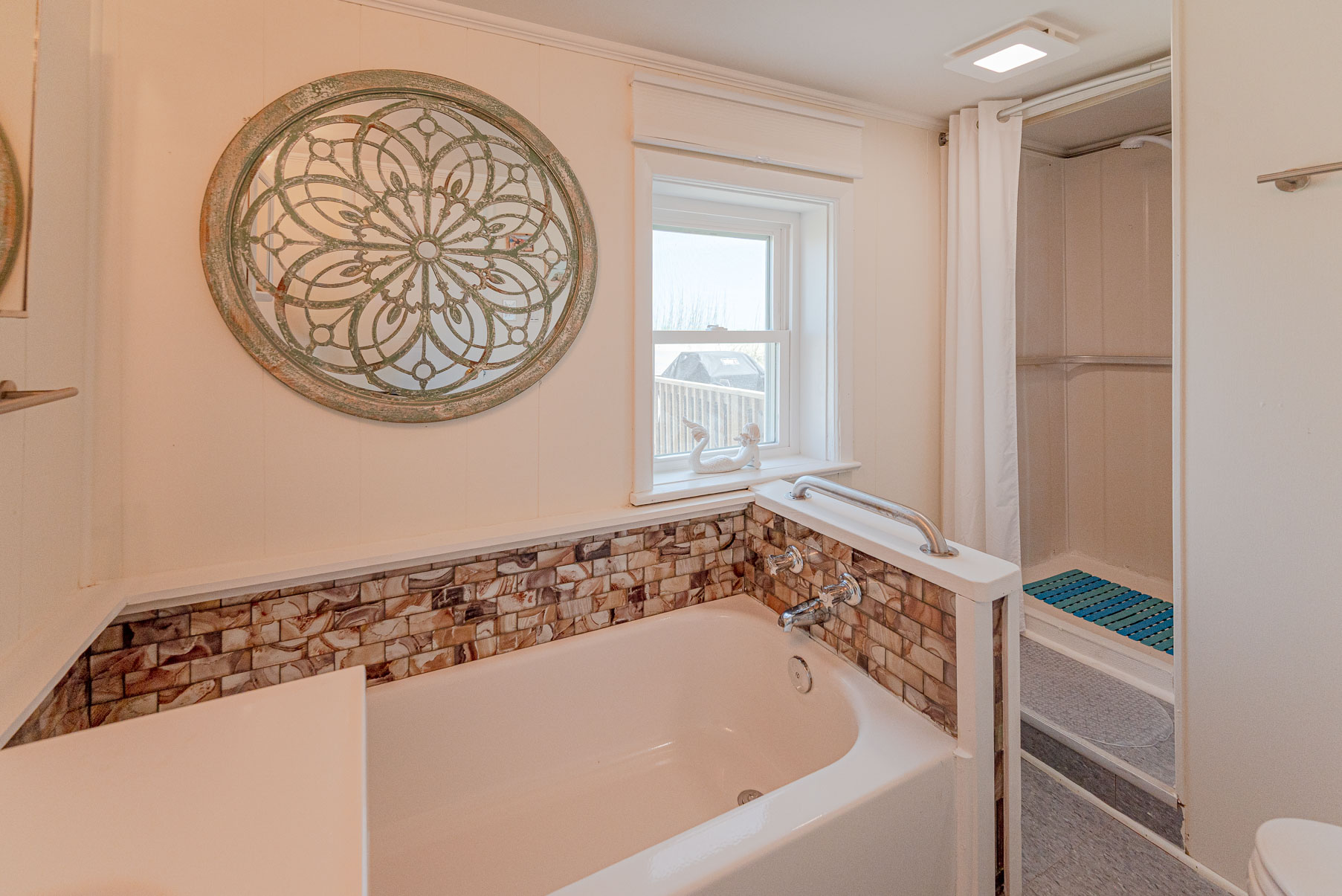 This cottage features a well-appointed kitchen for easy family meals, three comfortable bedrooms sleeping up to seven guests, an updated central bathroom, and a private primary bath with a tub. In-cottage laundry and an outdoor enclosed shower add everyday convenience after a day in the sun.