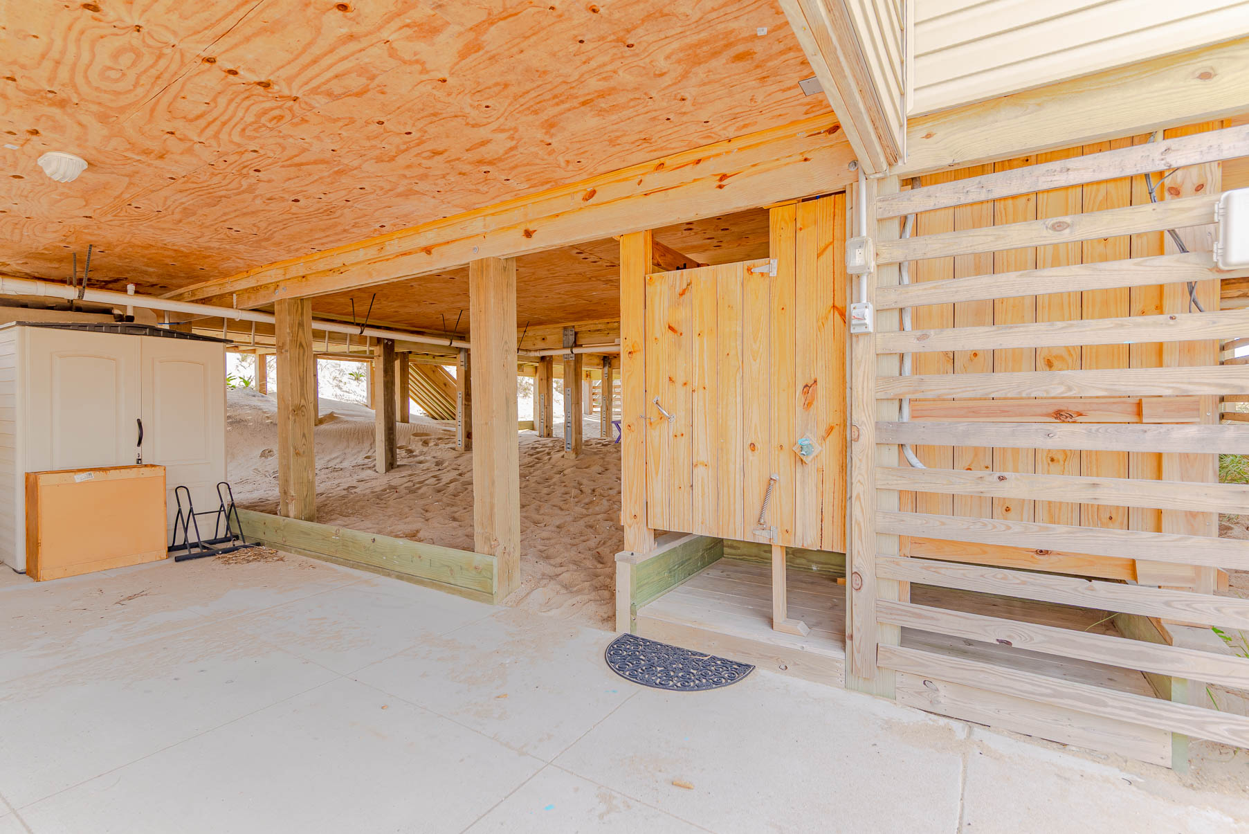 Ground Level: Parking for 3 Vehicles (staked parking required), new Gas Grill, Enclosed Outside Shower, and Sand Path Over Dune to Beach.
