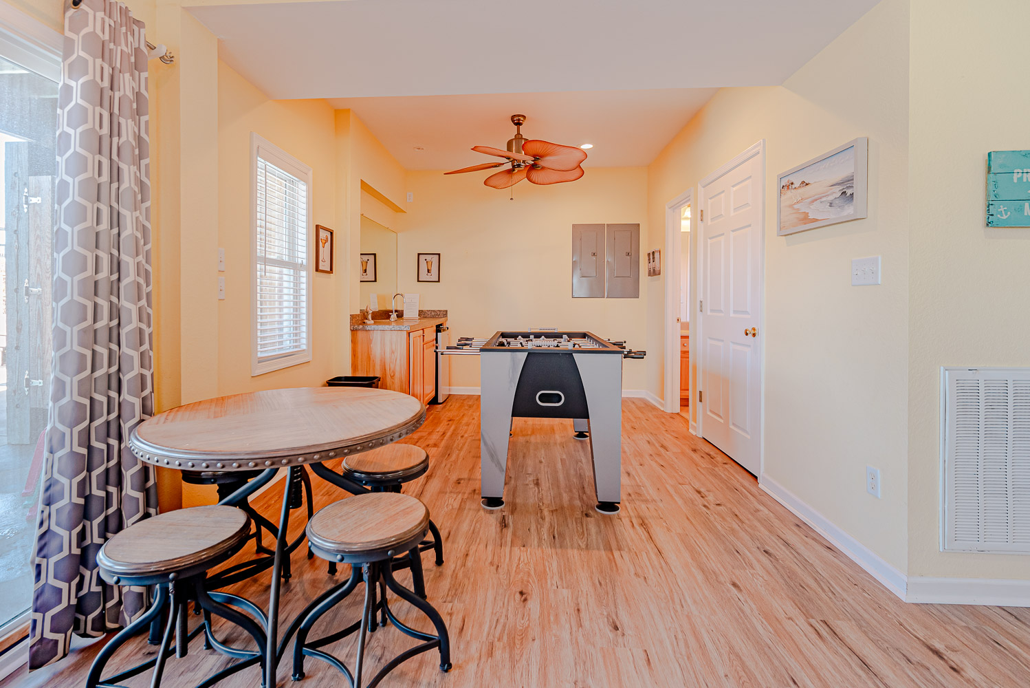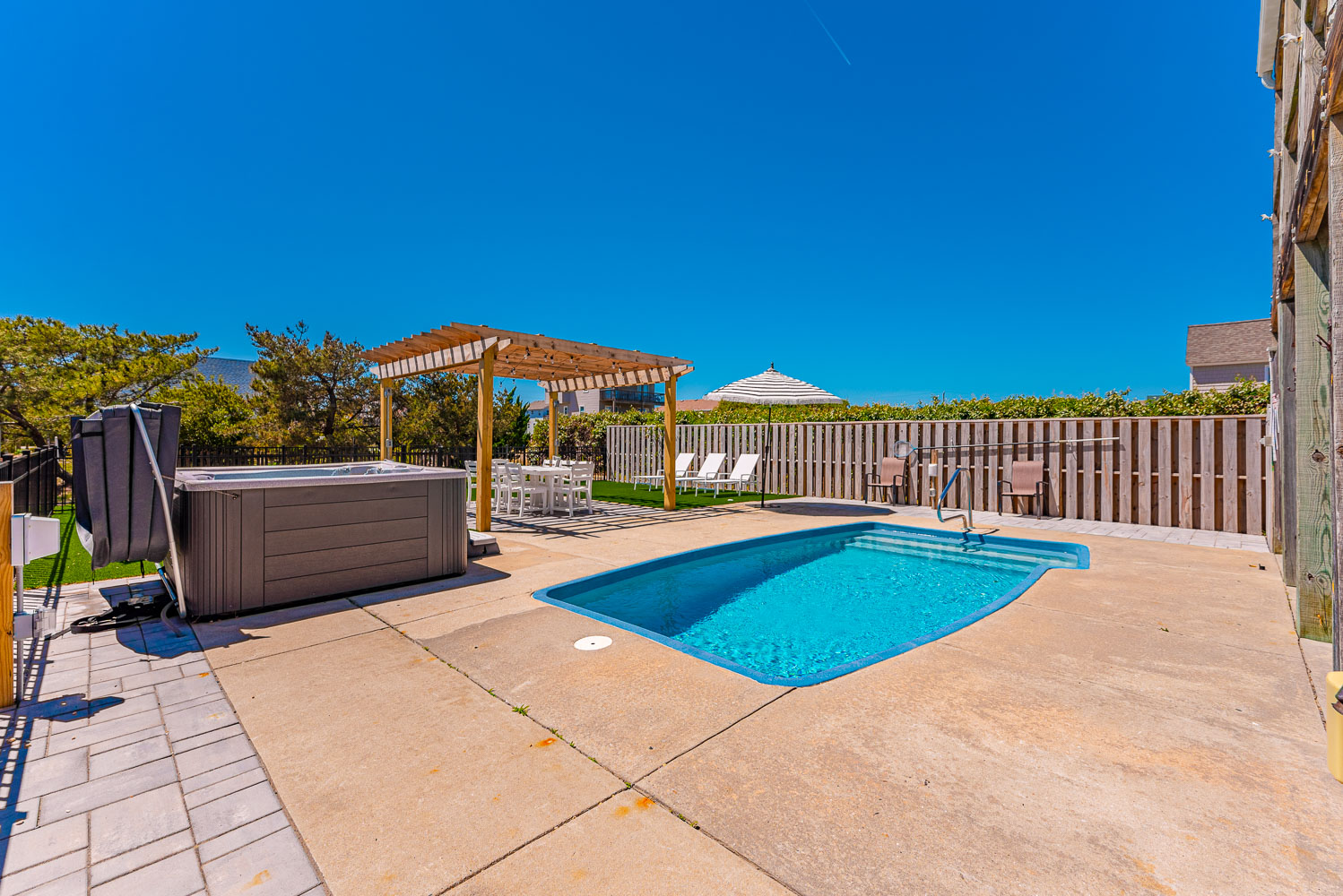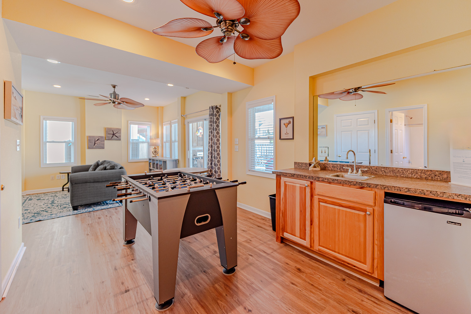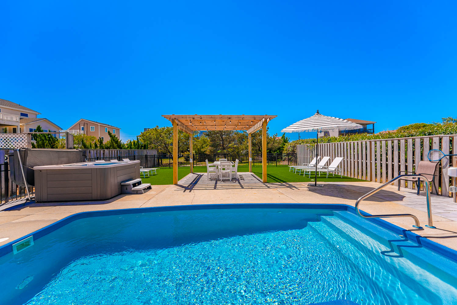 Ground Level: Parking 4 Cars, Lift for Luggage and Groceries, EV Charging Station, Den, Smart TV, Foosball Table, Wet Bar, Mini-Fridge, Queen Sleep Sofa; Full Bath w/Tub/Shower; Access to Patio Area, Gas Grill, Pergola, Private Swimming Pool, Hot Tub, Enclosed Outdoor Shower.