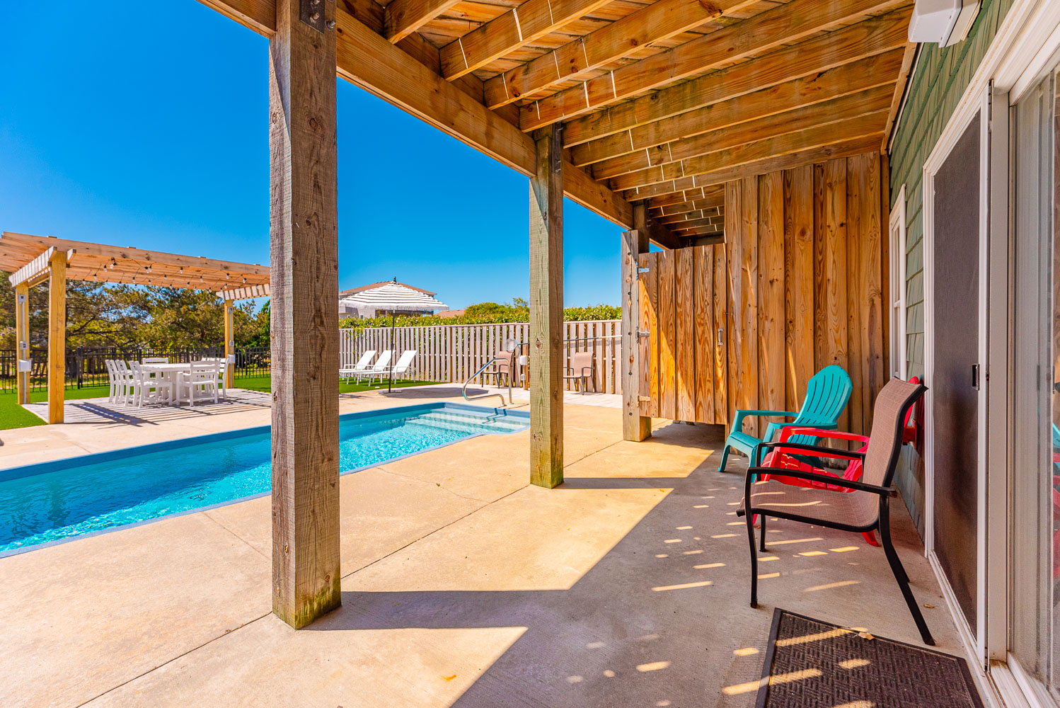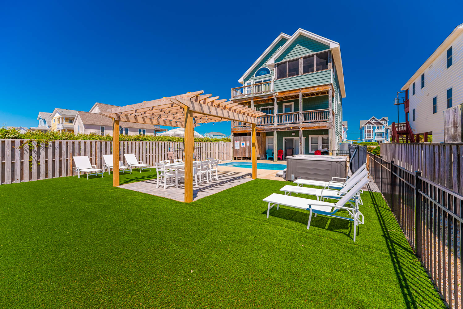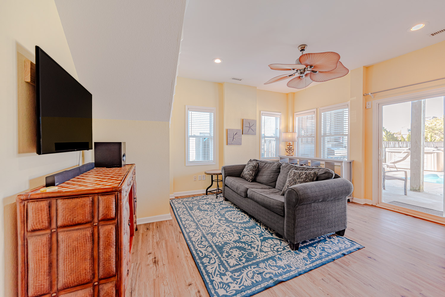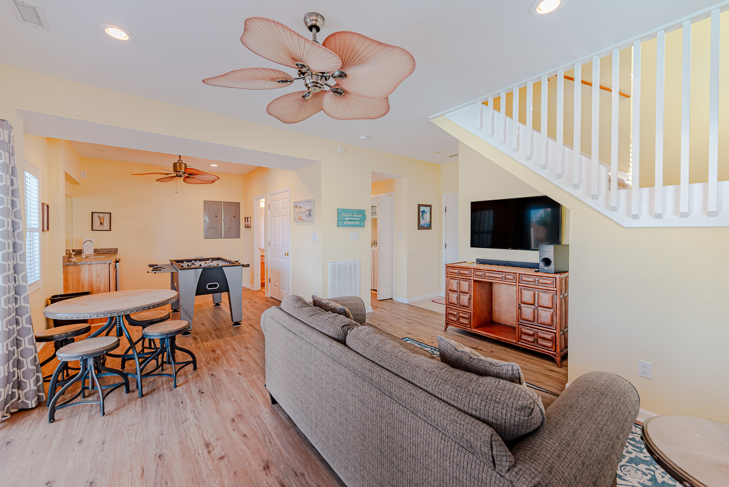 Ground Level: Parking 4 Cars, Lift for Luggage and Groceries, EV Charging Station, Den, Smart TV, Foosball Table, Wet Bar, Mini-Fridge, Queen Sleep Sofa; Full Bath w/Tub/Shower; Access to Patio Area, Gas Grill, Pergola, Private Swimming Pool, Hot Tub, Enclosed Outdoor Shower.
