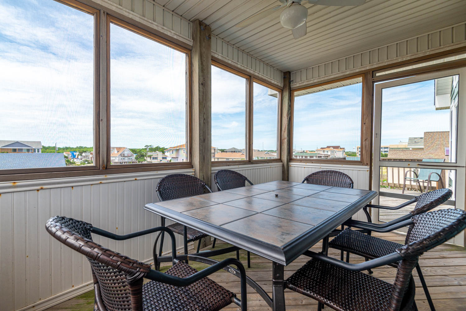 Top Level: Open Floor Living Area, Smart TV, Gas Fireplace, Dining Area w/Seating for Eight (8), Kitchen, Stainless Steel Appliances, Breakfast Bar w/Seating for Two (2), Access to Screen Porch w/Table and Chairs, Half Bath; Private Suite w/King, Smart TV, Full Bath w/Tub/Shower; Small Sun Deck on Each Side of Screen Porch w/Chairs; Lift Access Area.