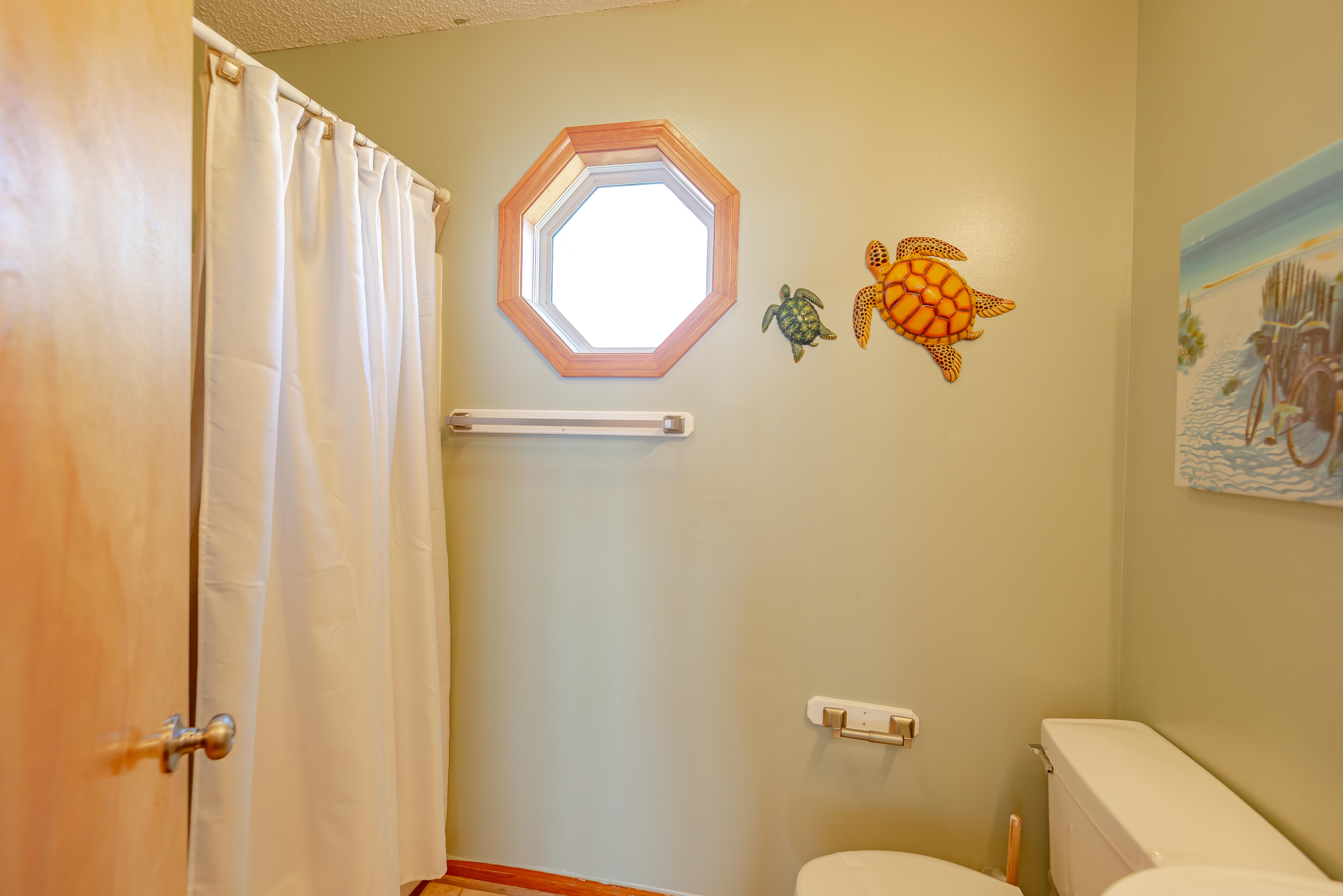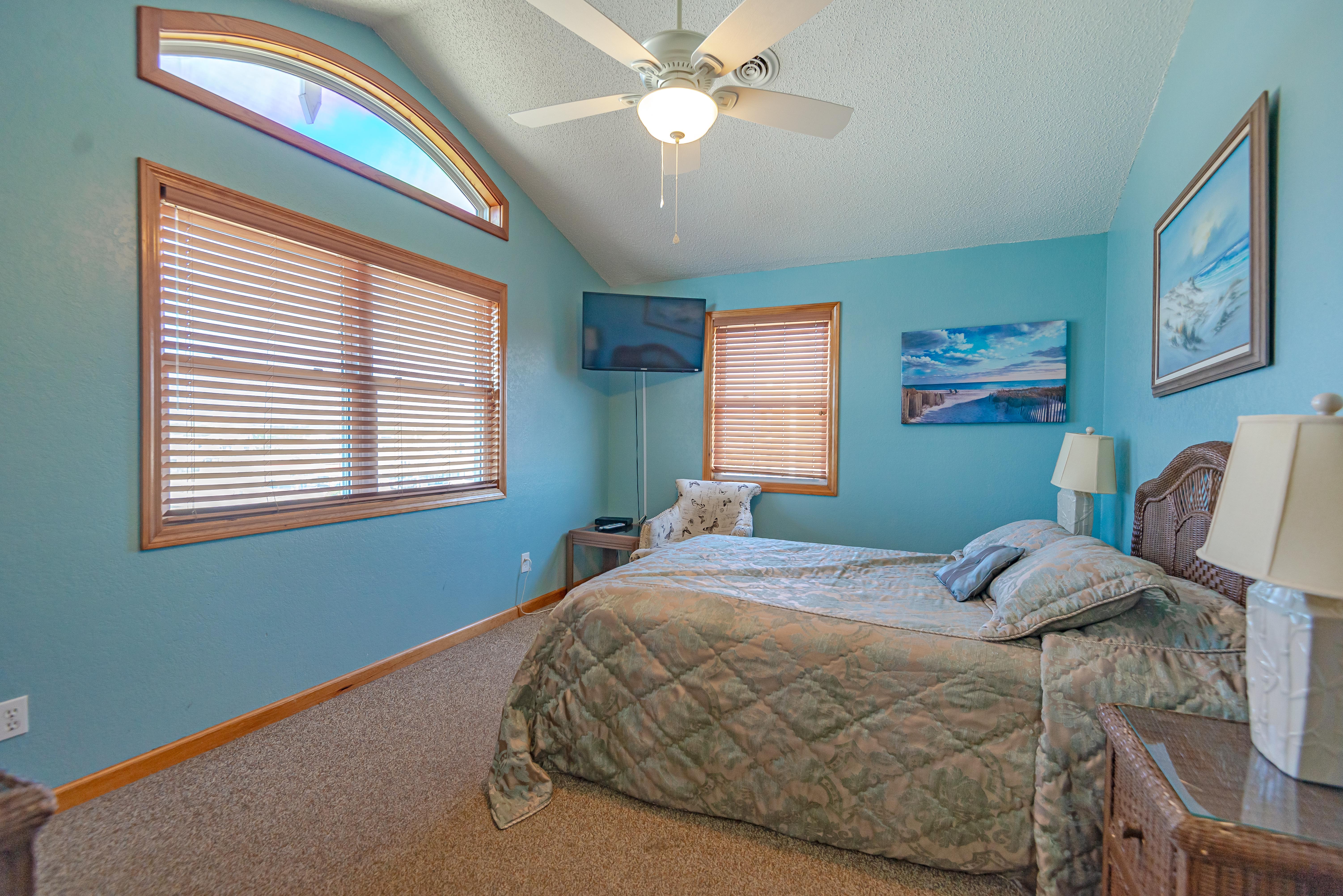 Top Level: Bright, Open Living Area, TV, DVD, Premium LVT Flooring, Lots of Windows, Fantastic Ocean Views, Kitchen Area, Granite Counters, Breakfast Bar, Dining Area, Bedroom w/Queen, TV, Shared Full Bath, and Sun Deck, Deck Furniture, and Ocean Views.