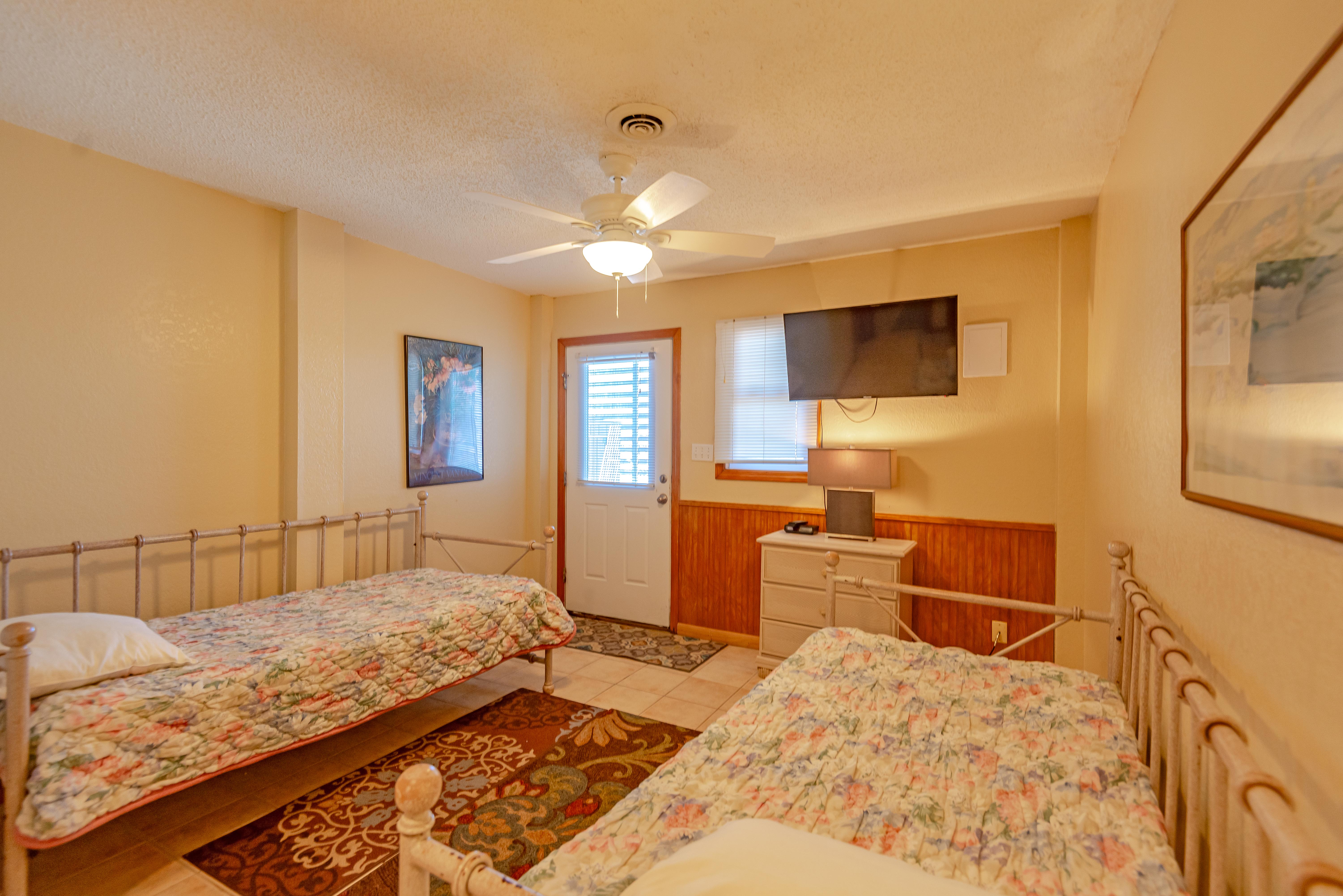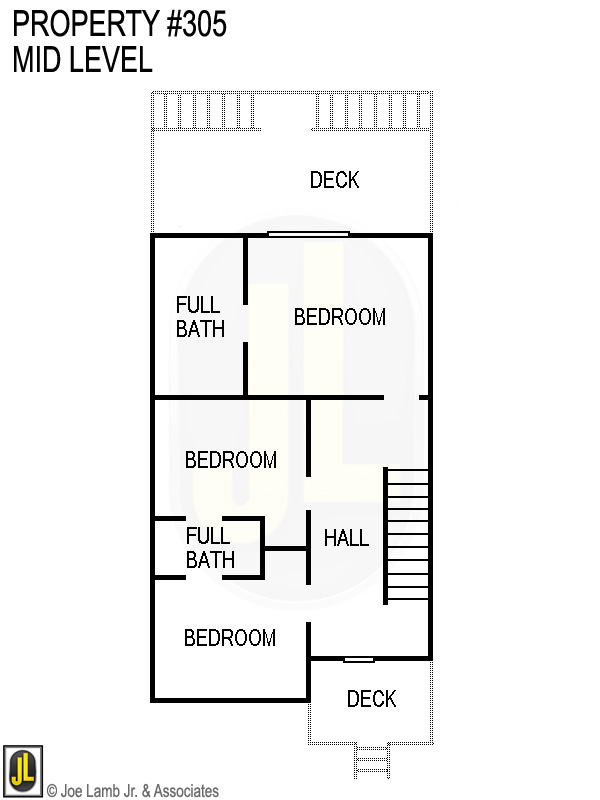 Mid Level: 3 Bedrooms (2 w/Queens, TVs, 1 w/2 Singles, TV, 1 Trundle), 2 Full Baths, and Covered Deck.