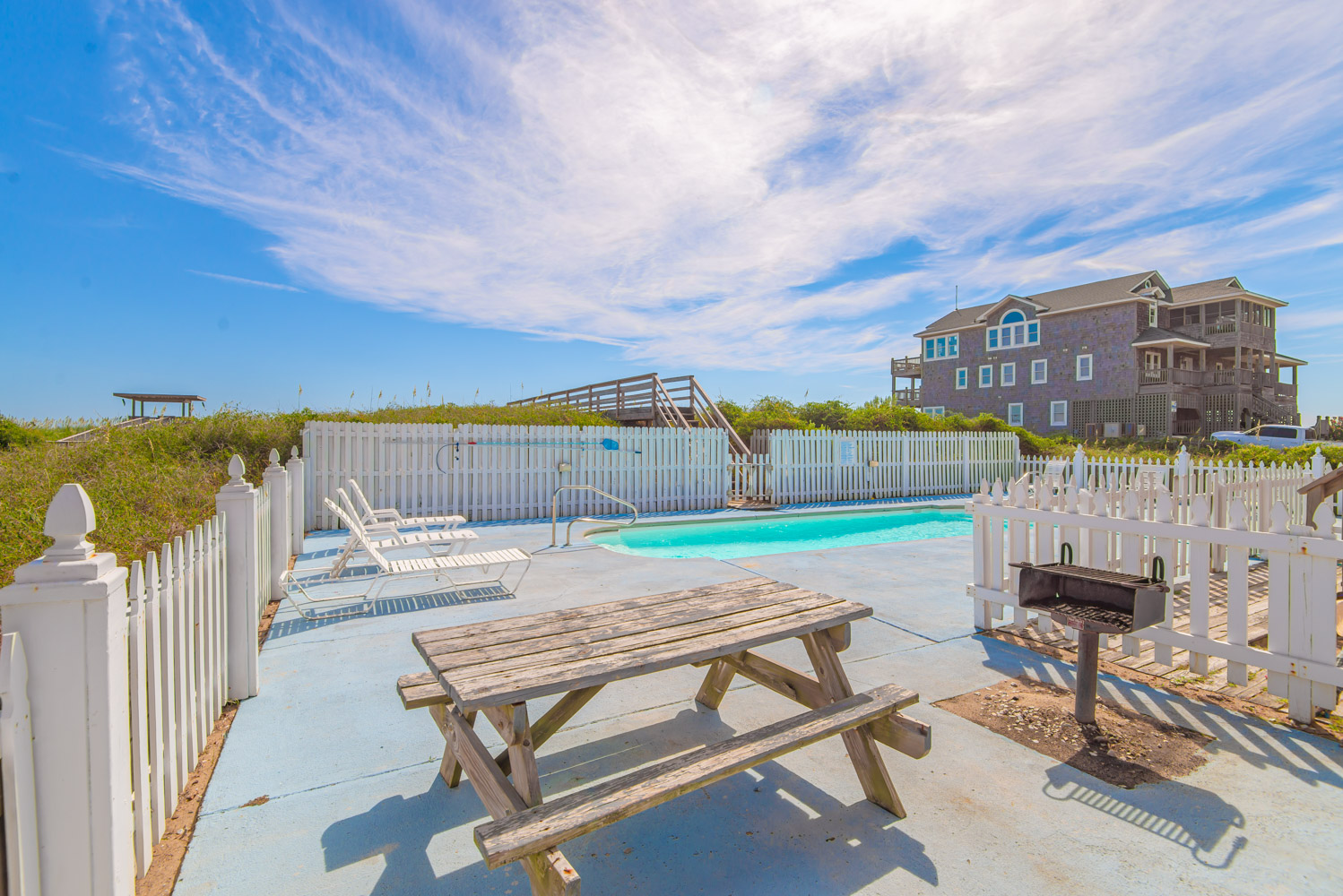 Ground Level: Parking for 4 Cars, Covered Entry, 1 Bedroom w/2 Daybeds, TV, 1 Roll-a-Way, Full Bath, Laundry Area, Basketball Hoop, Semi-Private Swimming Pool, Open Seasonally, Enclosed Outside Shower, and Picnic/Grill Area.